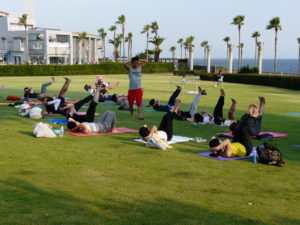 初心者の方、体力に自信のない方や身体が硬い方も無理なく楽しんでいただけるヨガ講習です。海を眺めながら芝生で行う、という絶好のロケーションも当公園ならではのおススメポイントです!!