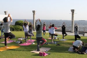 初心者の方、体力に自信のない方や身体が硬い方も無理なく楽しんでいただけるヨガ講習です。海を眺めながら芝生で行う、という絶好のロケーションも当公園ならではのおススメポイントです!!