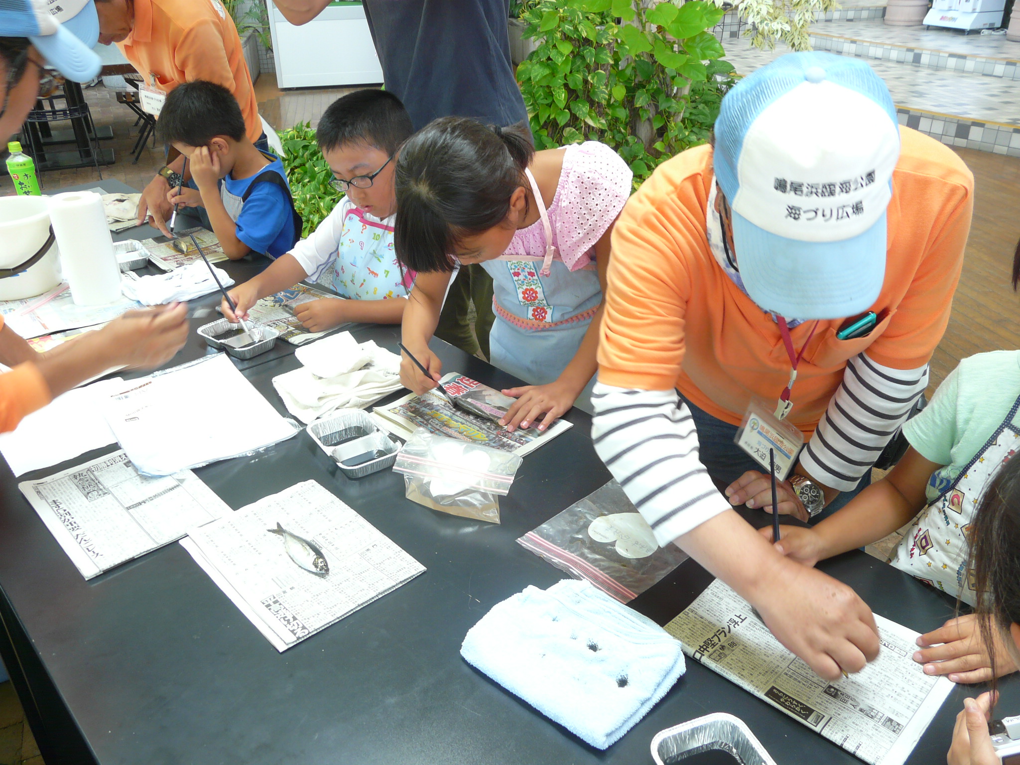 申込方法:当日海づり広場へ10時までに入場していただき、その際係員に「魚拓体験希望」とお申し出下さい。小学生の子供魚釣り入場者お一人様につき1枚、魚拓体験チケットをお渡し致します。受付は10時までといたします。