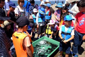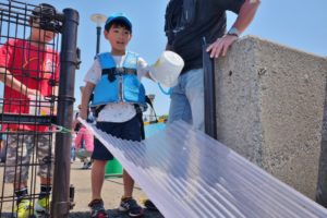 海づり広場利用の沢山の子供さんに手伝っていただき、