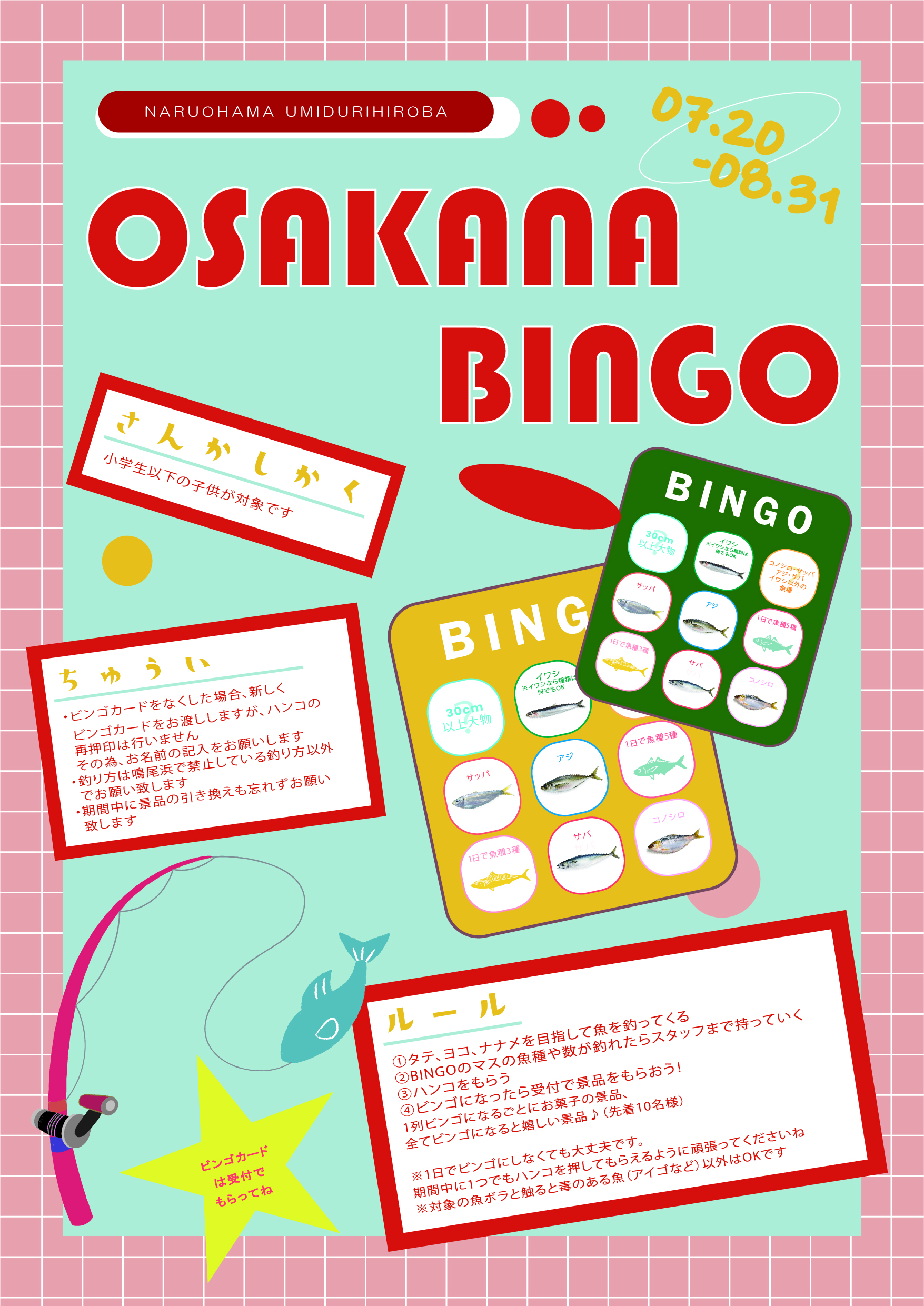 2025年7月20日(日)鳴尾浜お魚ビンゴ開催します~☆☆(7/20~8/31まで)