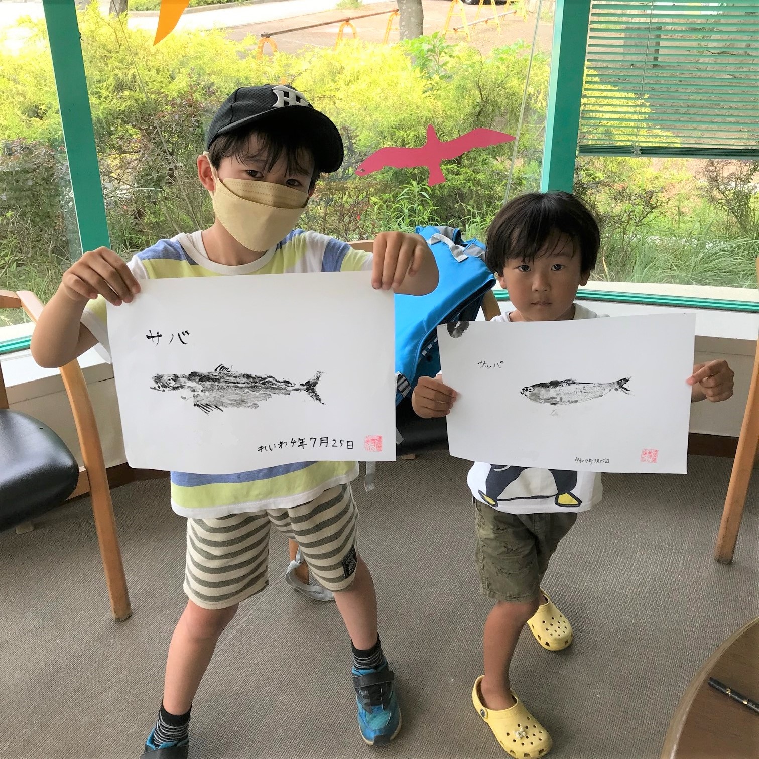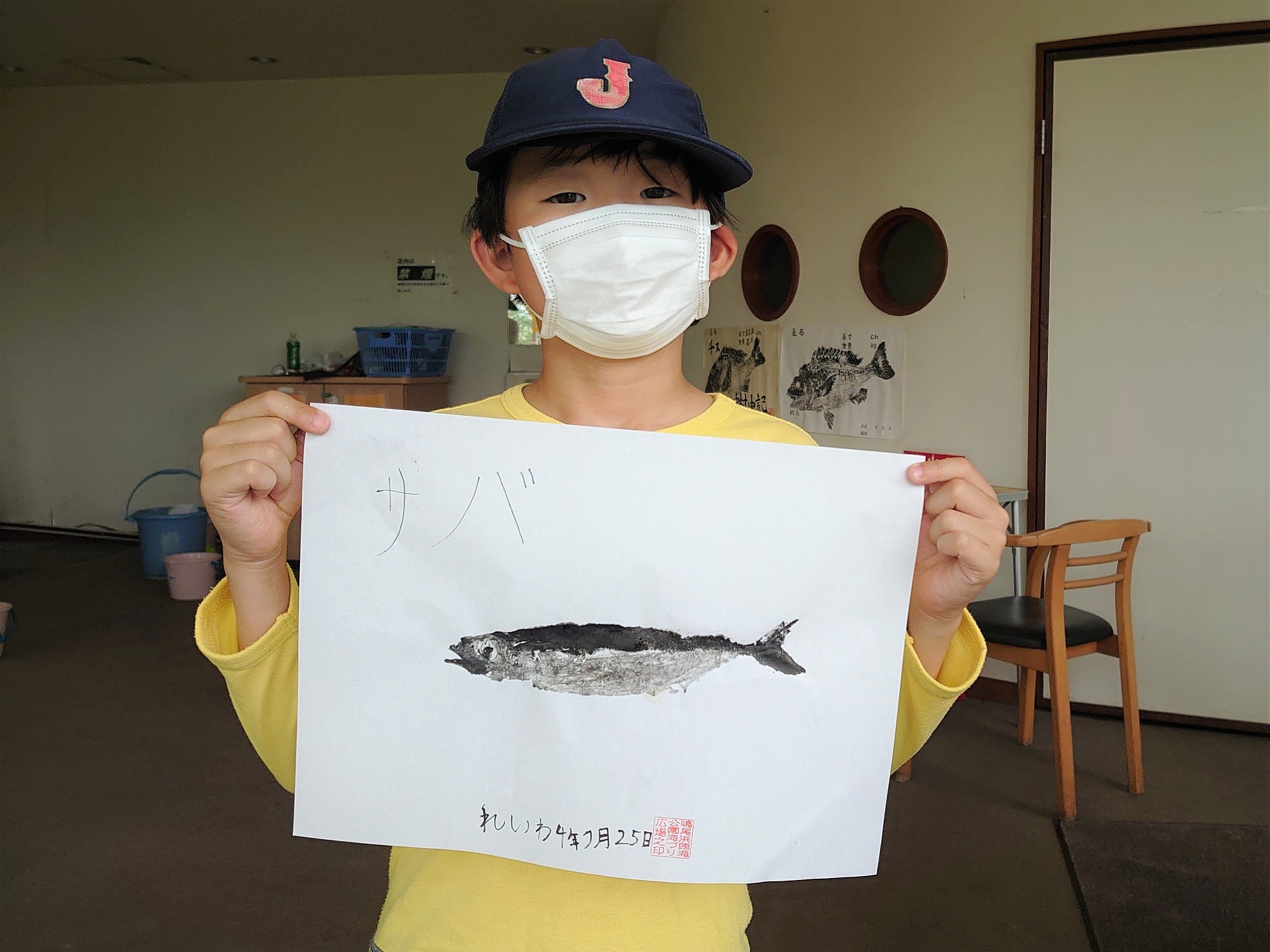 サバやサッパ、アジなど、中にはカンパチの子供シオを魚拓チャレンジした子供さんもいらっしゃいました。