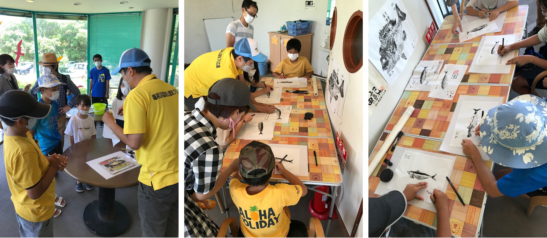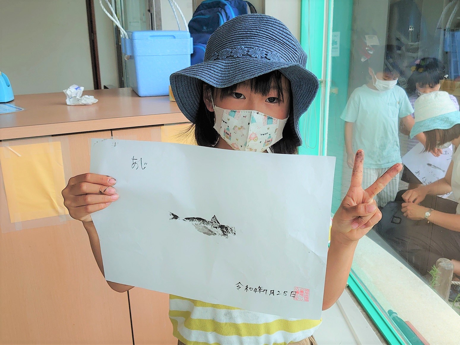 7月25日、鳴尾浜海づり広場で釣れた魚を使用して、魚拓体験のイベントを行いました。
