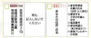 *返信の宛名面:申し込み代表者の住所と氏名を記入