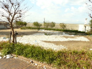 以下の写真は2018年の台風21号によって海から公園に漂着したゴミの様子