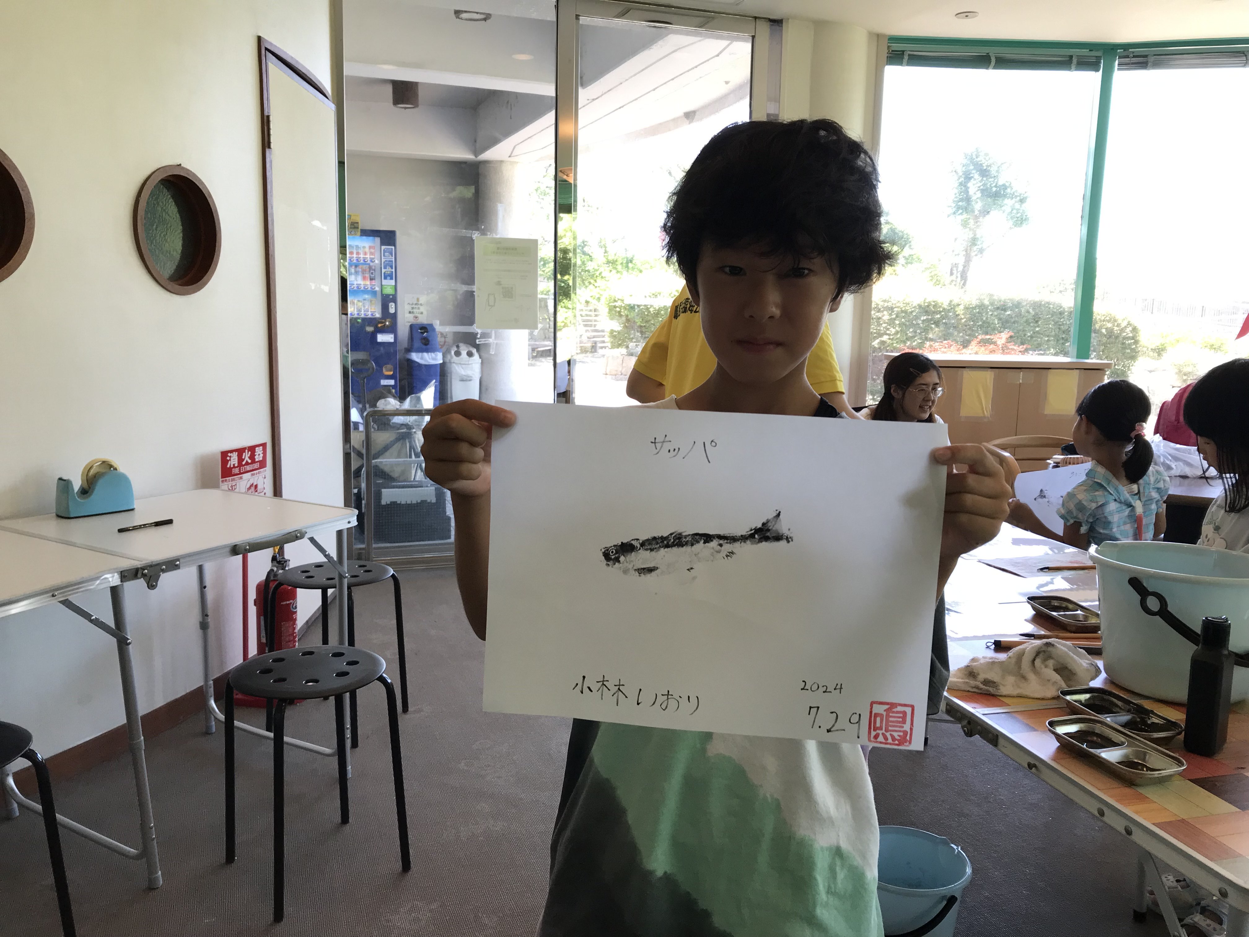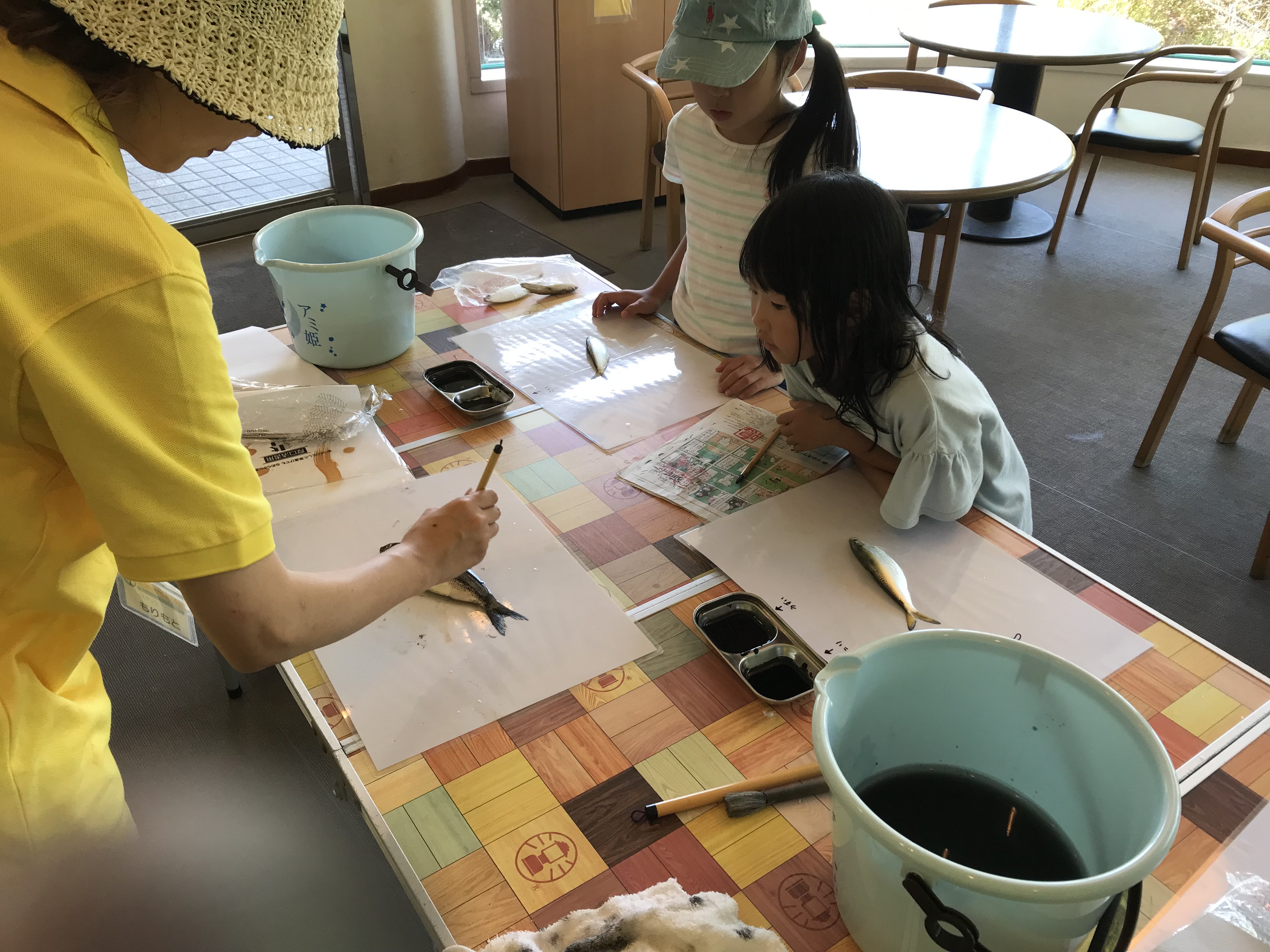 はじめての魚拓は墨の濃淡も難しく、うろこもとれてしまったりと、皆様試行錯誤されながら楽しんでくれていました☆