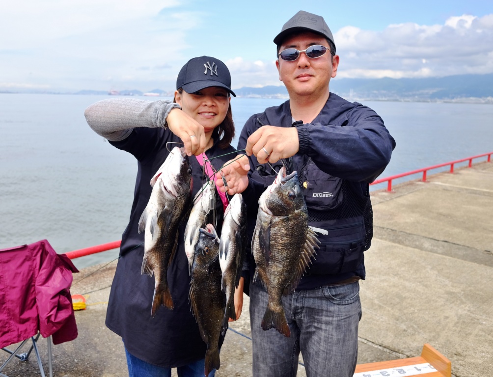 チヌ35~45㎝5匹は全て落とし込み、餌はイガイ(一枚or団子)での釣果でした。