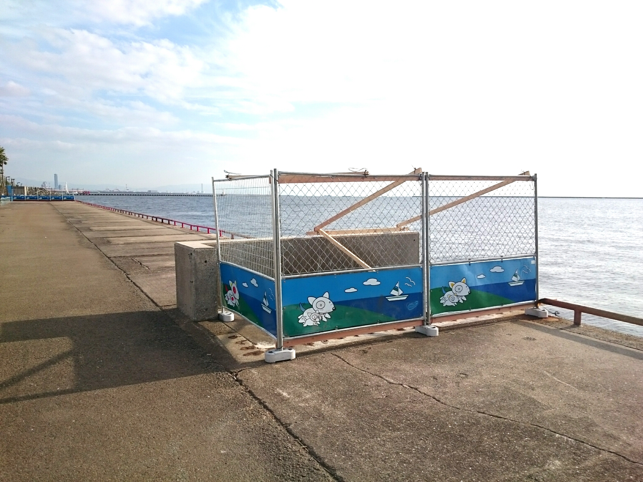 9月4日の台風21号による大きな被害が出ました鳴尾浜臨海公園海づり広場は、11月中に部分営業再開を予定する事となりました。