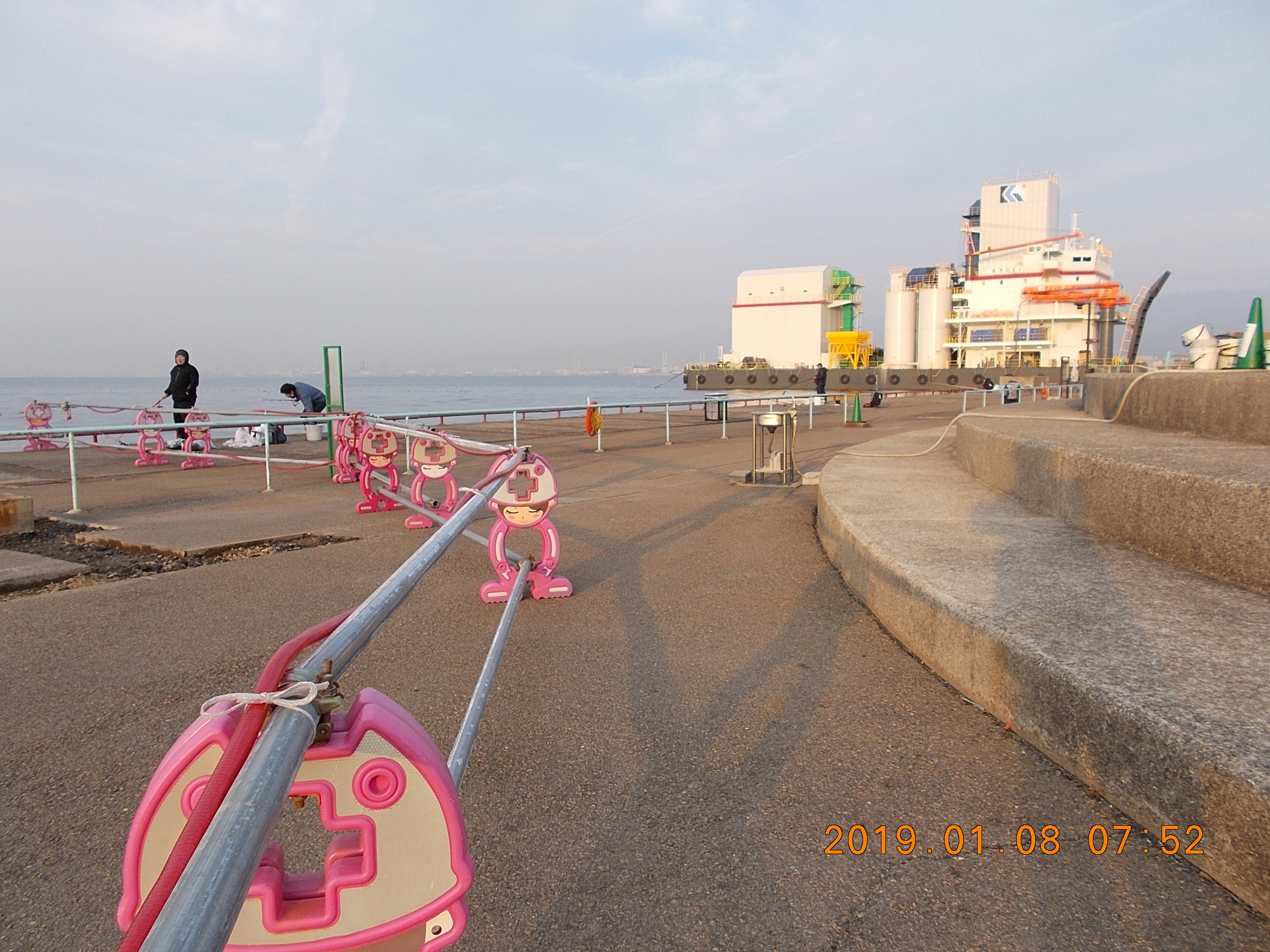 今日は西宮の戎神社で朝6時から福を授かるのに皆さん頑張って走っておられましたが、ここ鳴尾浜海づり広場で今年最初の福を授かるのは誰でしょうね。