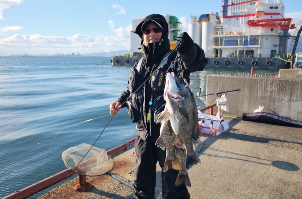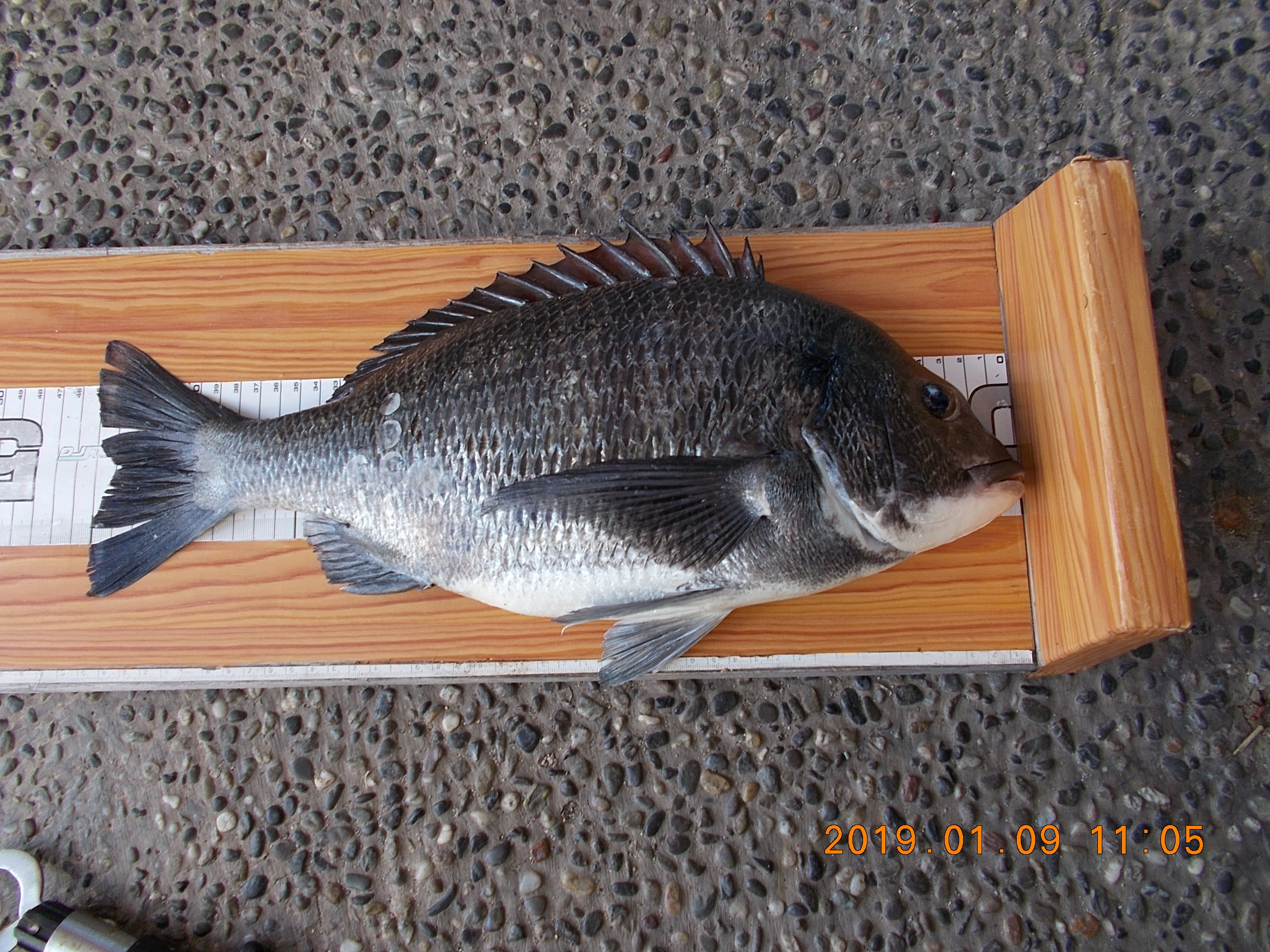 14時頃に月間大物賞チヌの部で43㎝を上回る47.5㎝をゲットされました。15時現在計4匹。15時半に1匹追加。