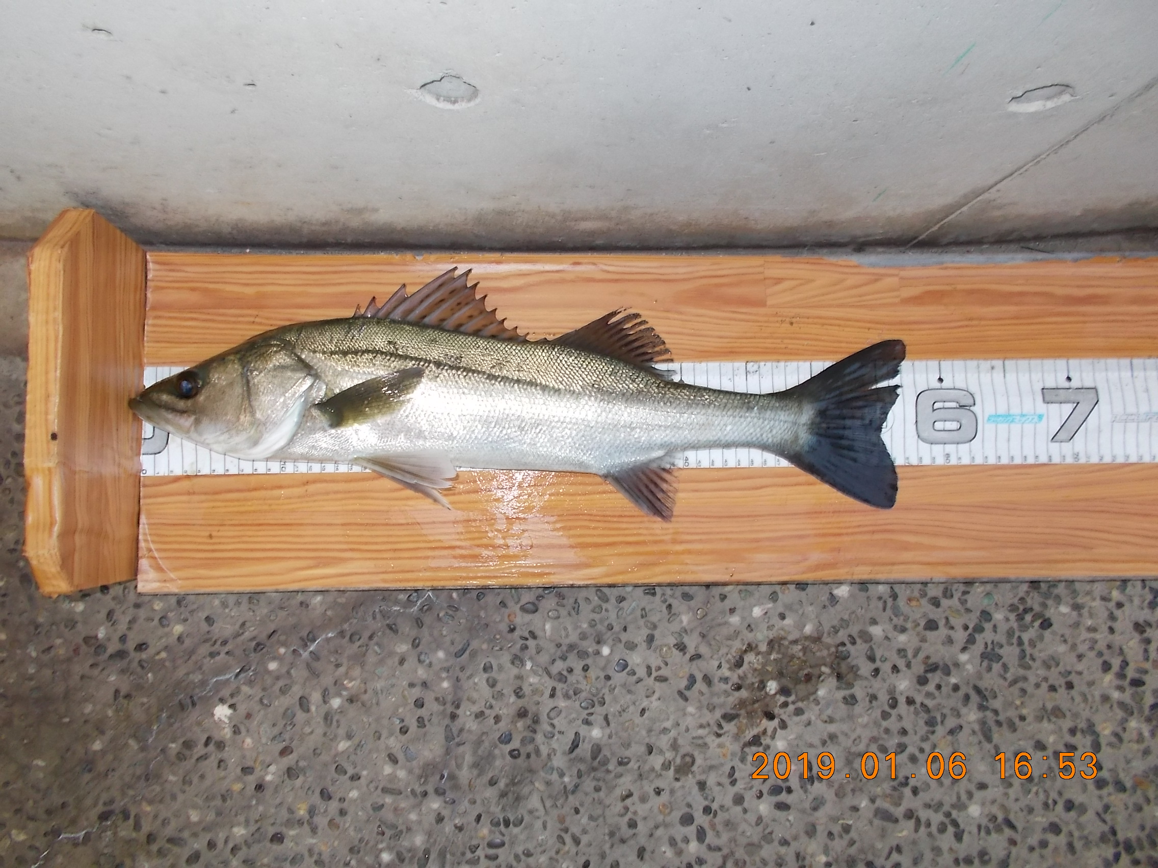 開園から8時半までの間に浮キ釣りでセイゴ2匹、ズボ釣りでハネ48㎝を1匹、計3匹の釣果。