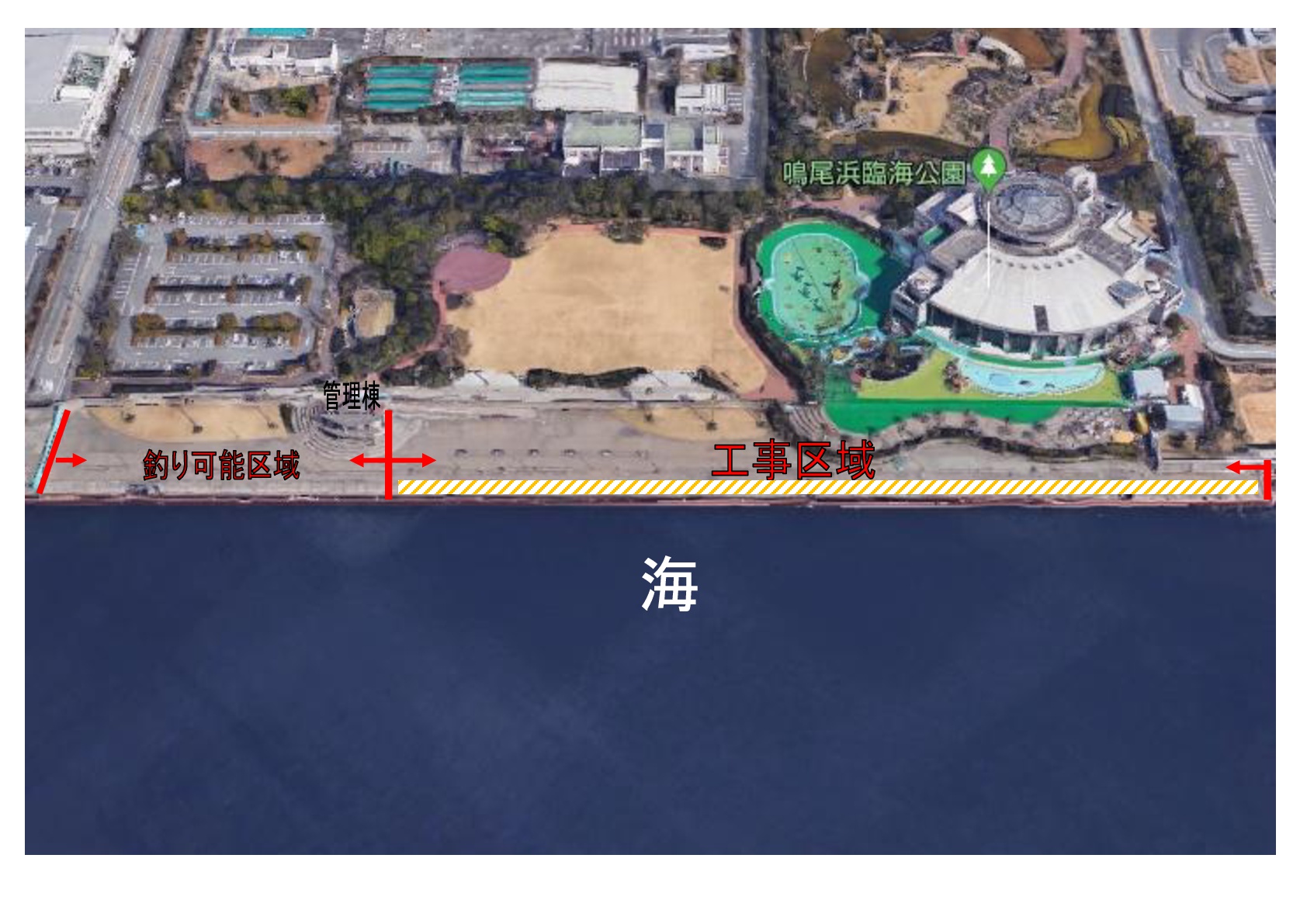 ※鳴尾浜海づり広場は現在区画を分け補修工事を行っております。