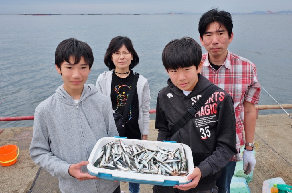 カタクチイワシの釣果は10時を過ぎる頃には止まってしまいましたが、それまで釣果は続き、多い方でお一人で50匹程の釣果がありました。ご満足された方も多く、まだ釣り場では釣れているけれど、途中で帰られる方もいらっしゃいました。