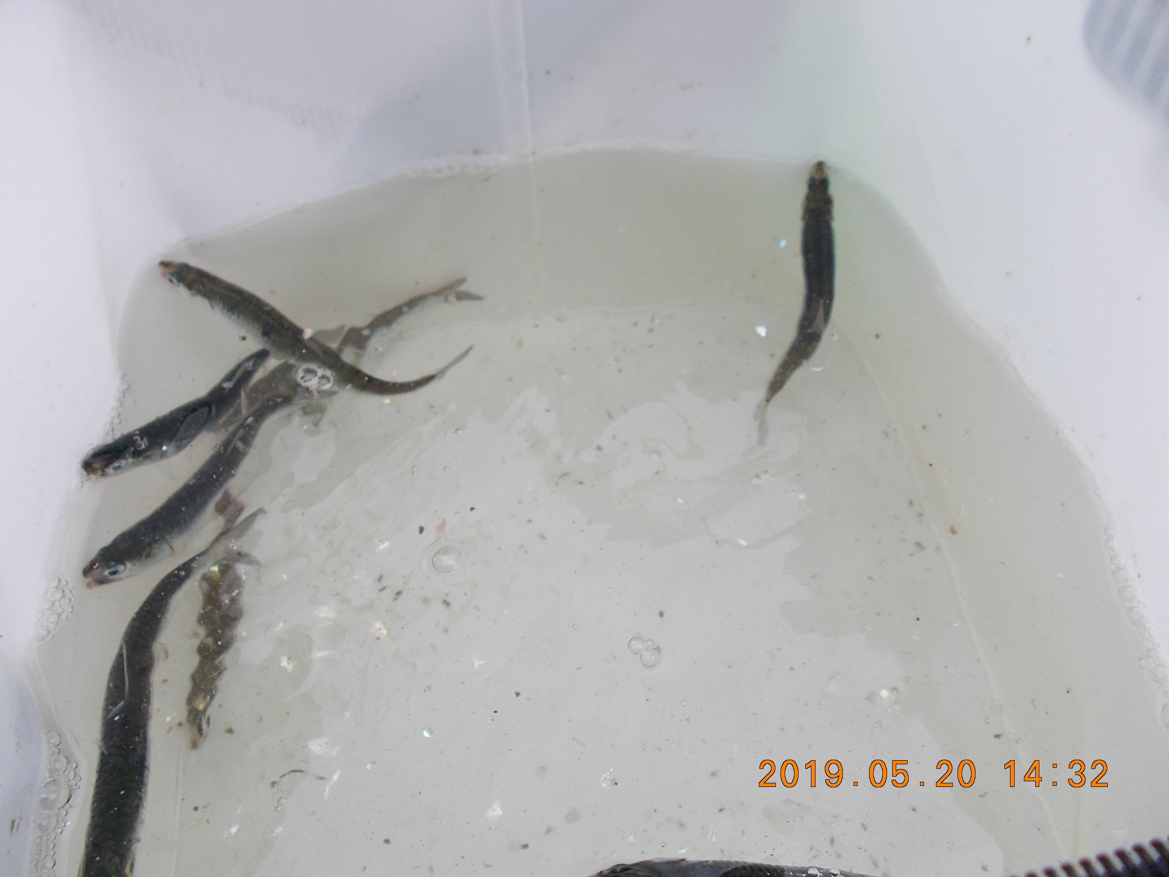 開場当時に、カタクチイワシの小さな群れが通り過ぎ、多い人で5匹位は釣れていた模様です。それ以後は、あまり釣れなくなってしまいました。