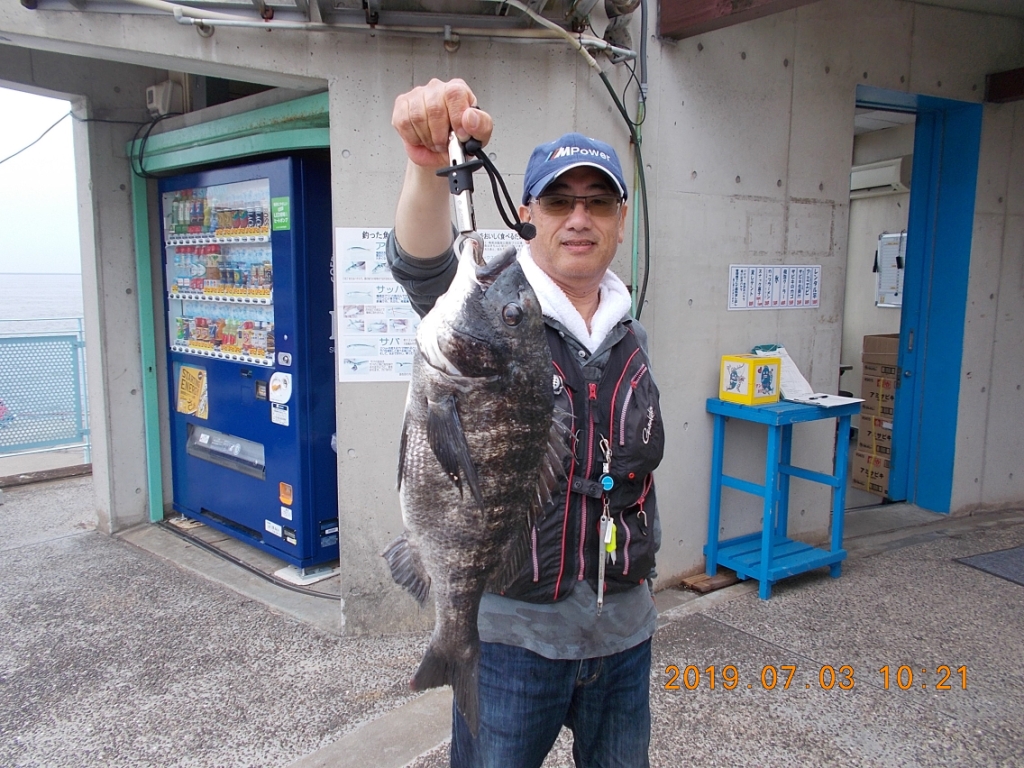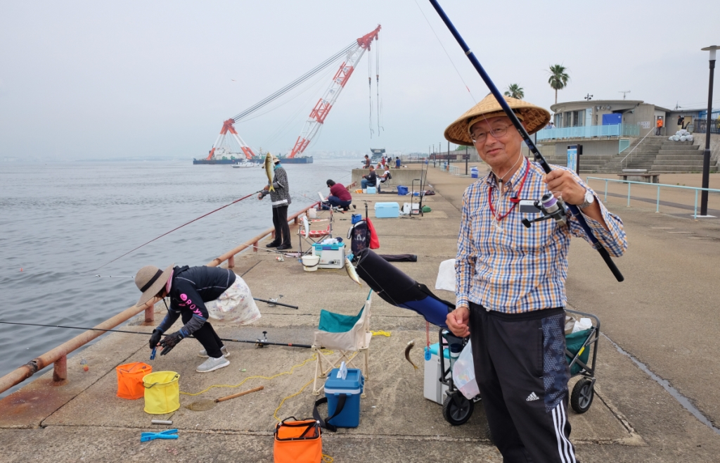 今日は、雨模様でご来場者様が少なく、釣りをするには快適な環境です。サビキにはアジ・サバ・ツバスが上がっていました。今朝は、マイワシ・サッパが釣れていません。9時現在、釣れているのはサビキ・ルアー共にツバスです。多い人で20匹以上釣られています。東側では、フカセ釣りで35~48cmのチヌ3匹・35cmのキビレ1匹が上がっています。