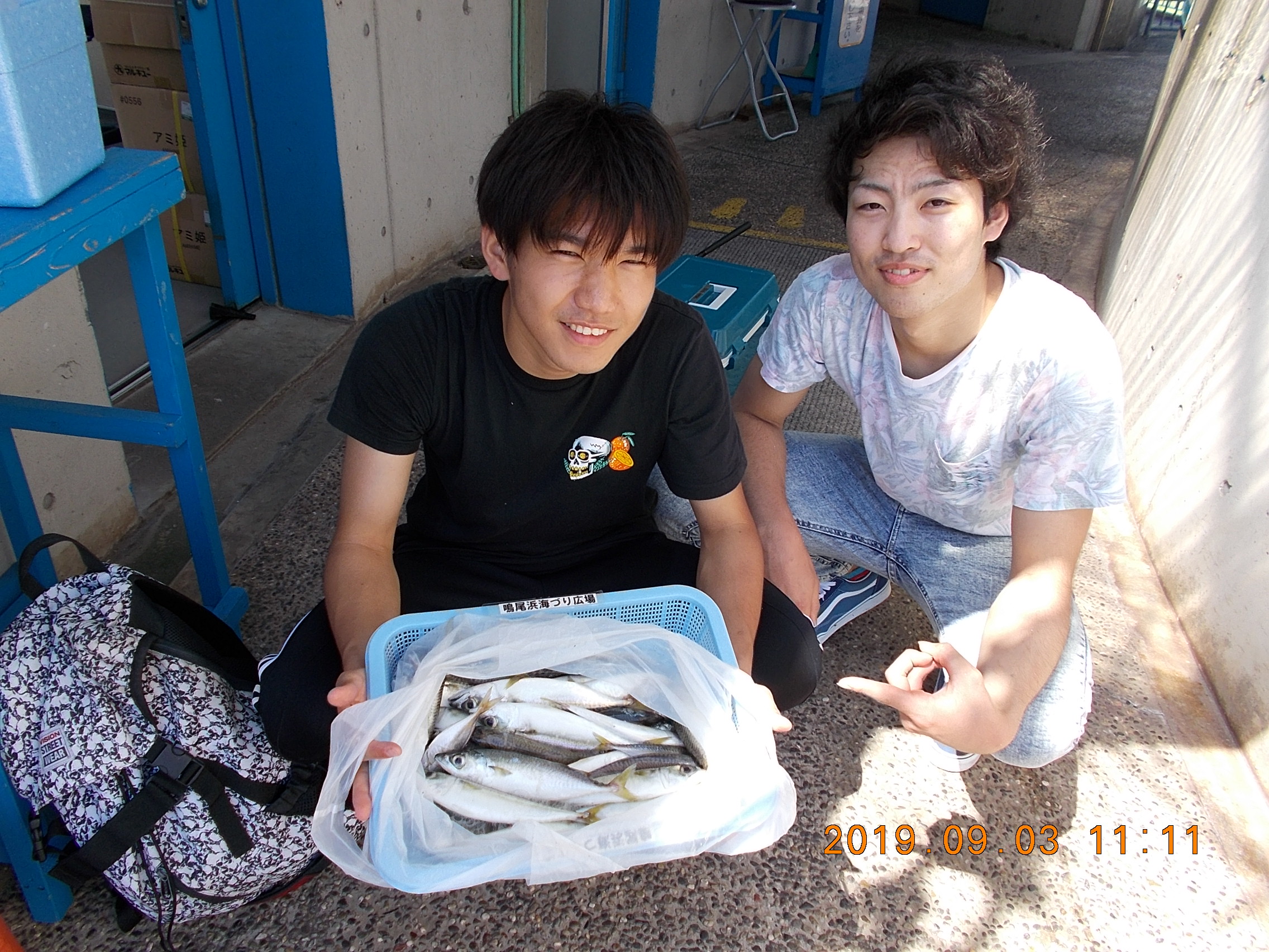 開場してサビキ釣りでは、サバとサッパのみ釣れています。場内清掃が終わってからはアジが釣れ出し、多い人で10匹は釣れていました。