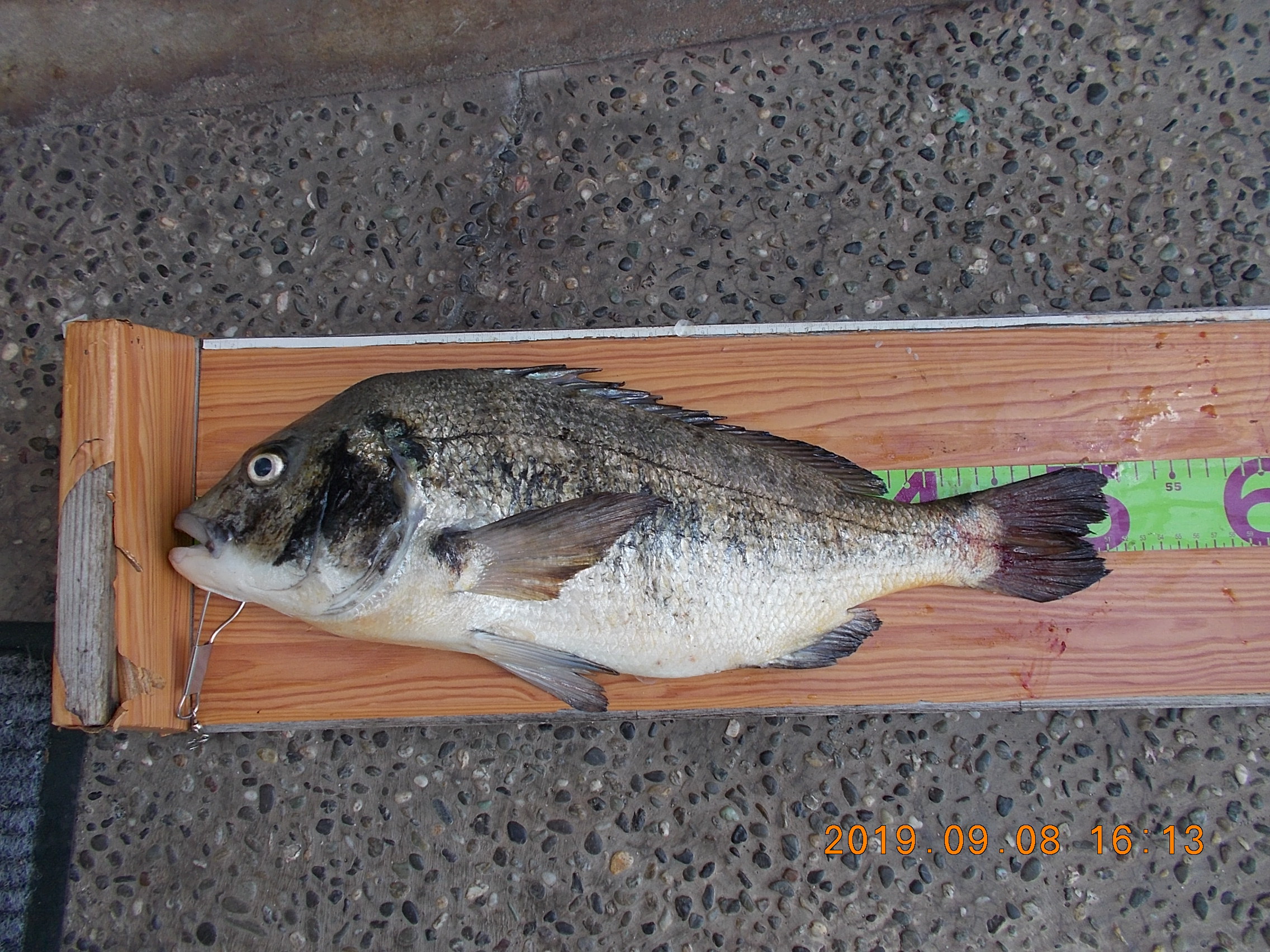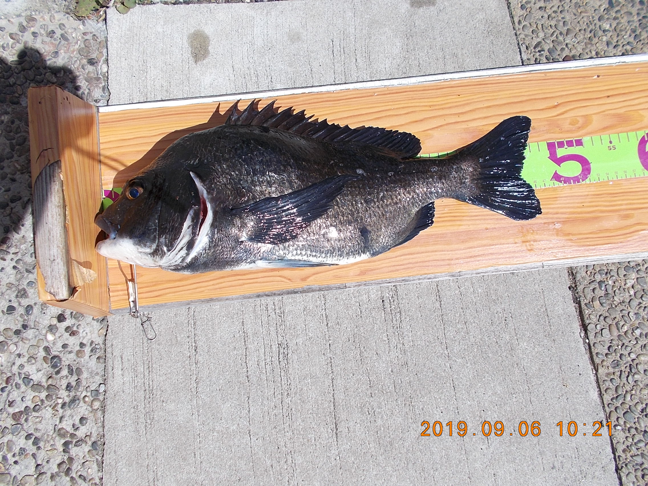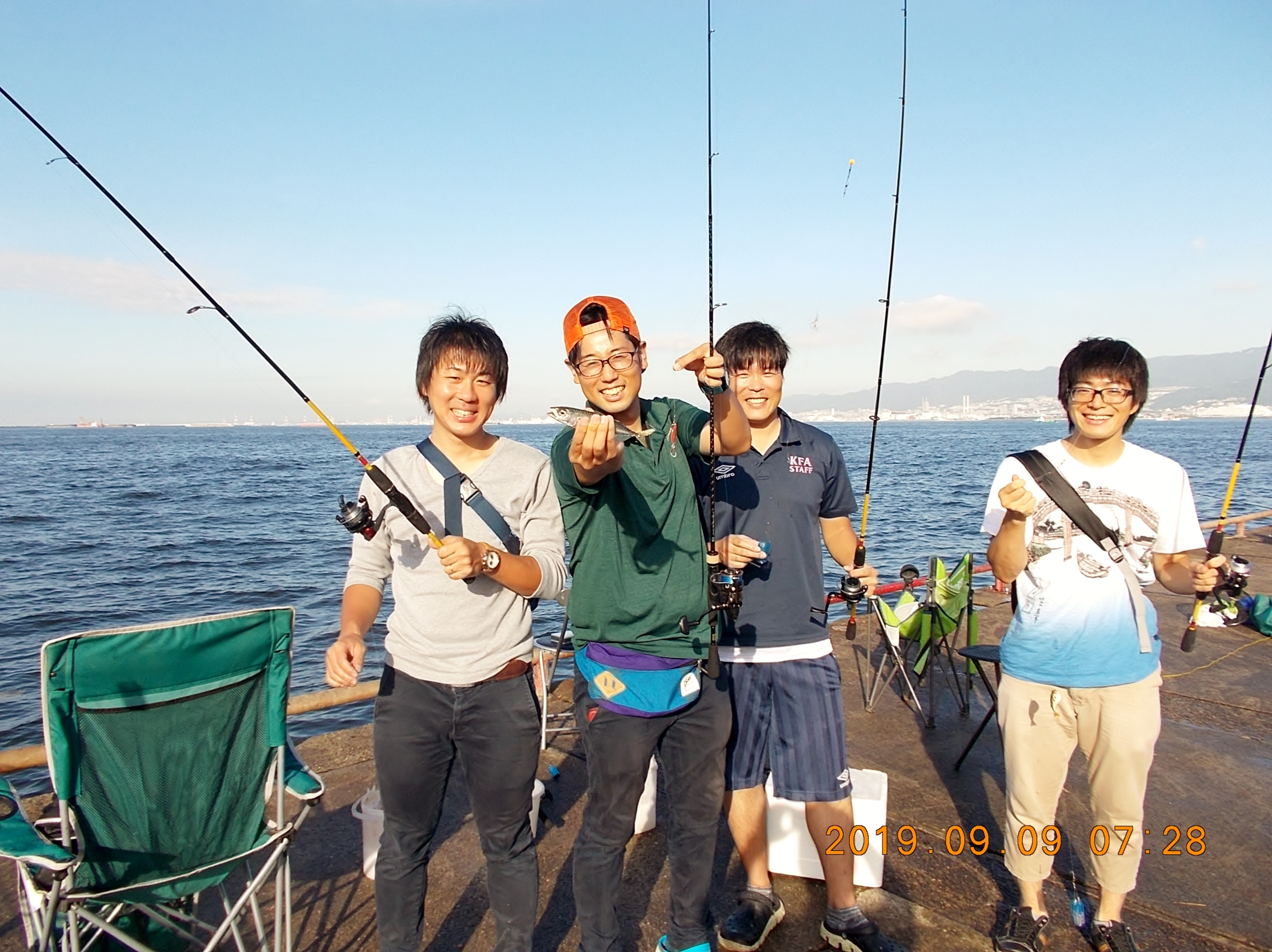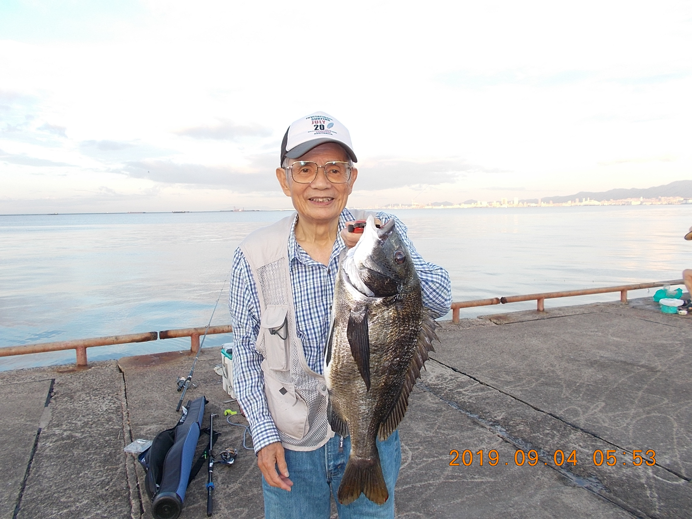 午後の釣果について、箕面市の谷川様チヌ8匹エサオキアミ・コーンであげられました。もっとも大きいもので51.5cmあり月間大物賞候補。サビキは午前と同じくサバがほとんどで、これにサッパが混じる程度。アジは少なかった。