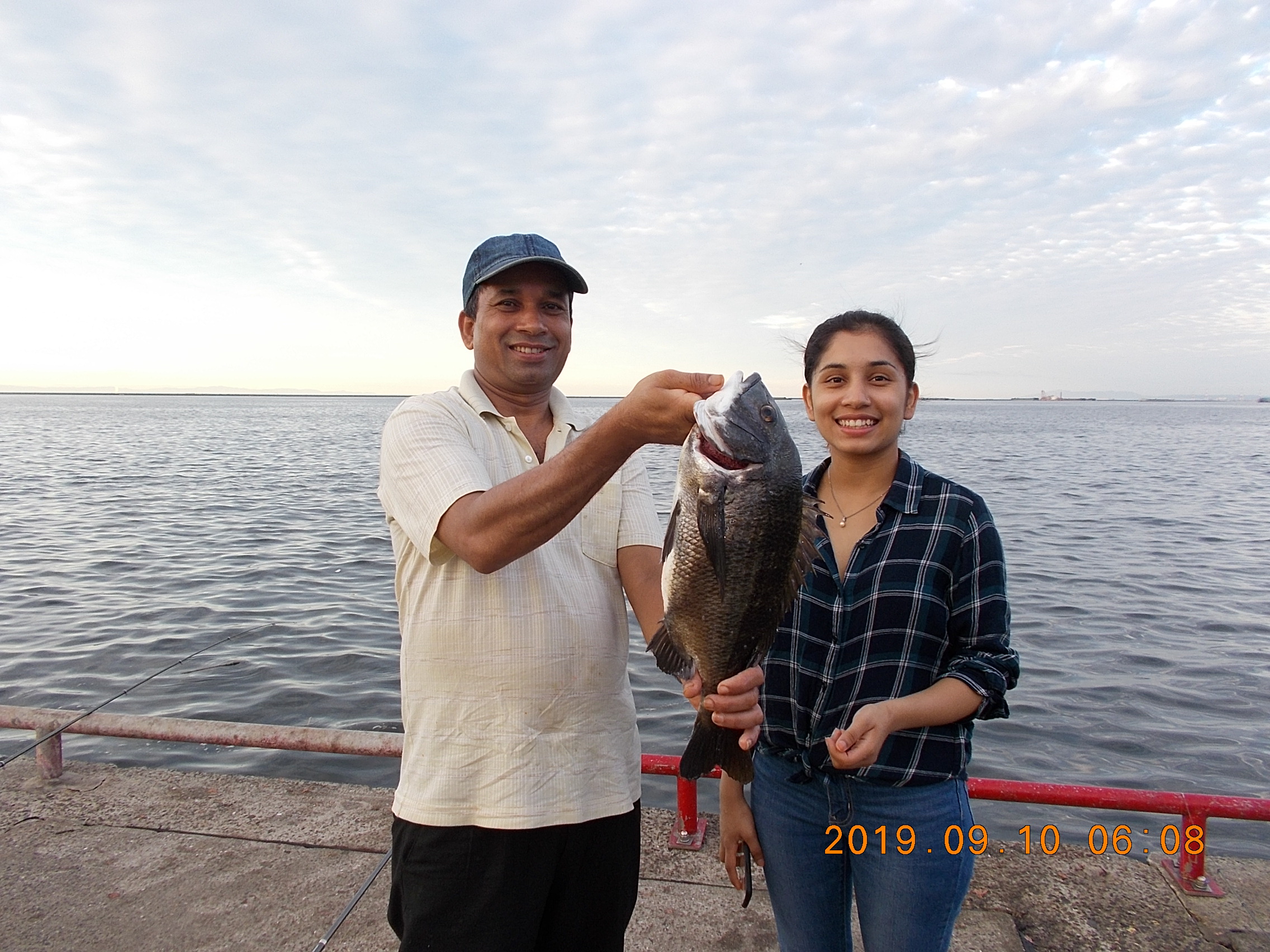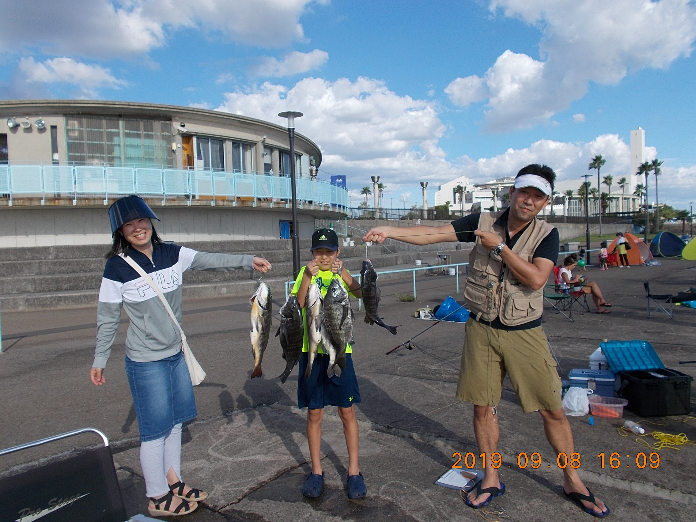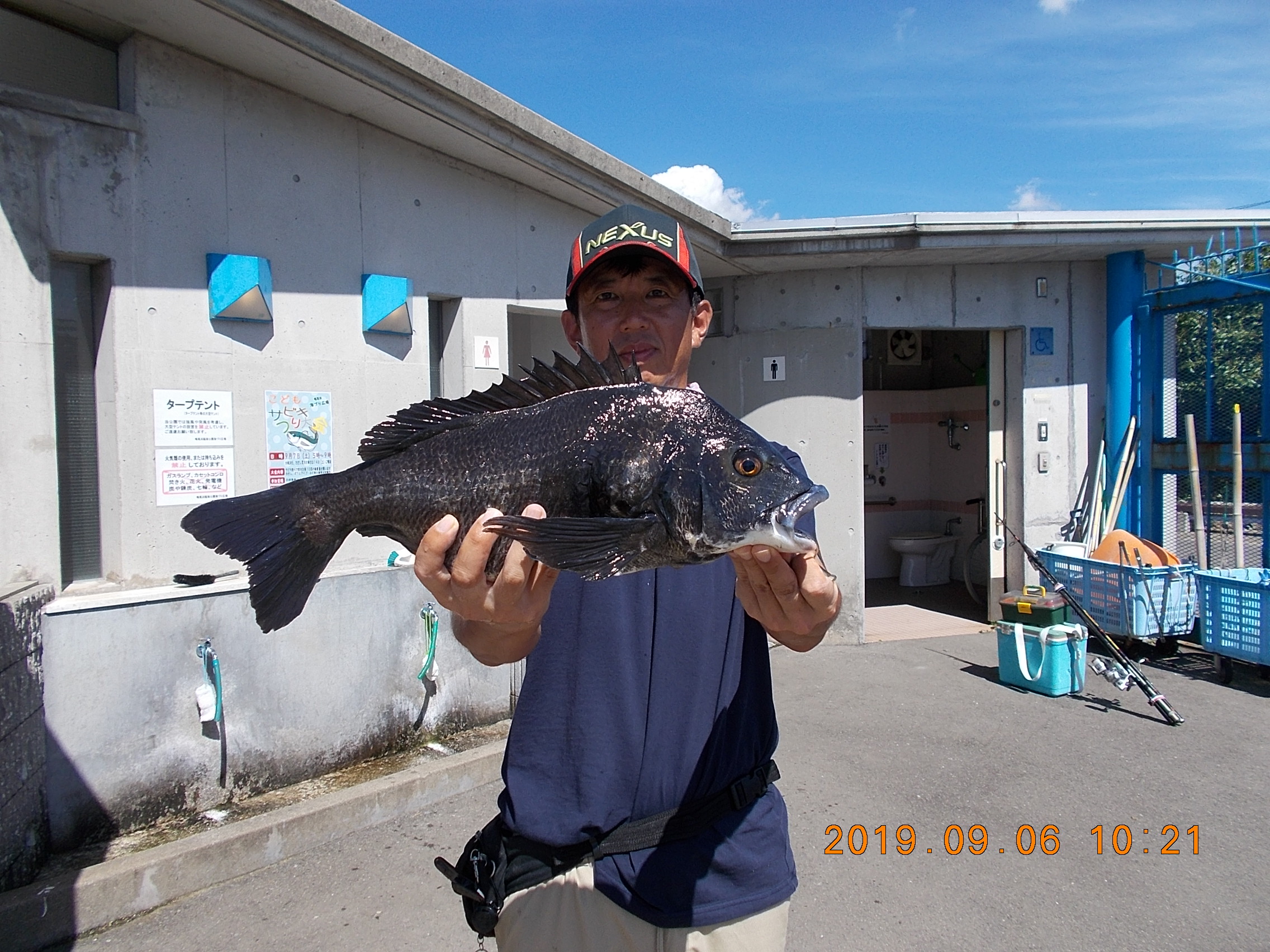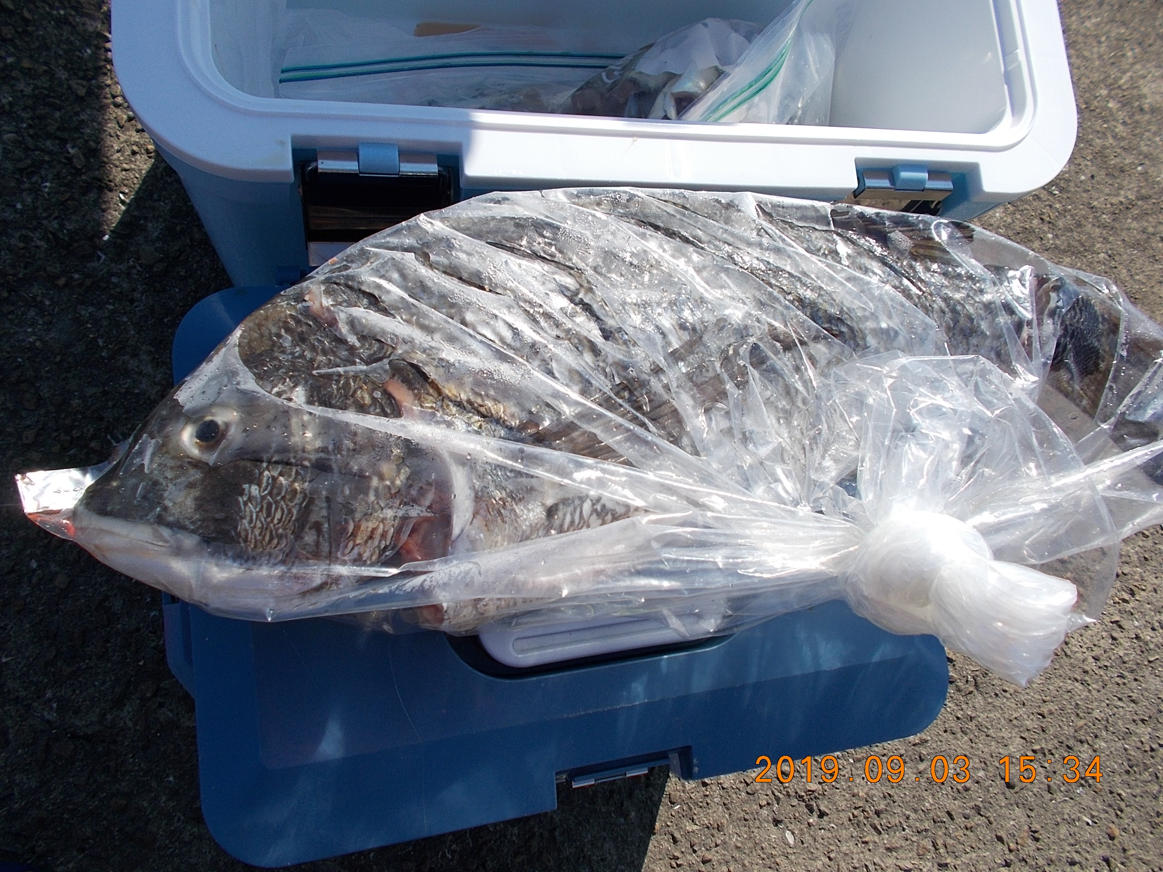 午後の釣果について、箕面市の谷川様チヌ8匹エサオキアミ・コーンであげられました。もっとも大きいもので51.5cmあり月間大物賞候補。サビキは午前と同じくサバがほとんどで、これにサッパが混じる程度。アジは少なかった。