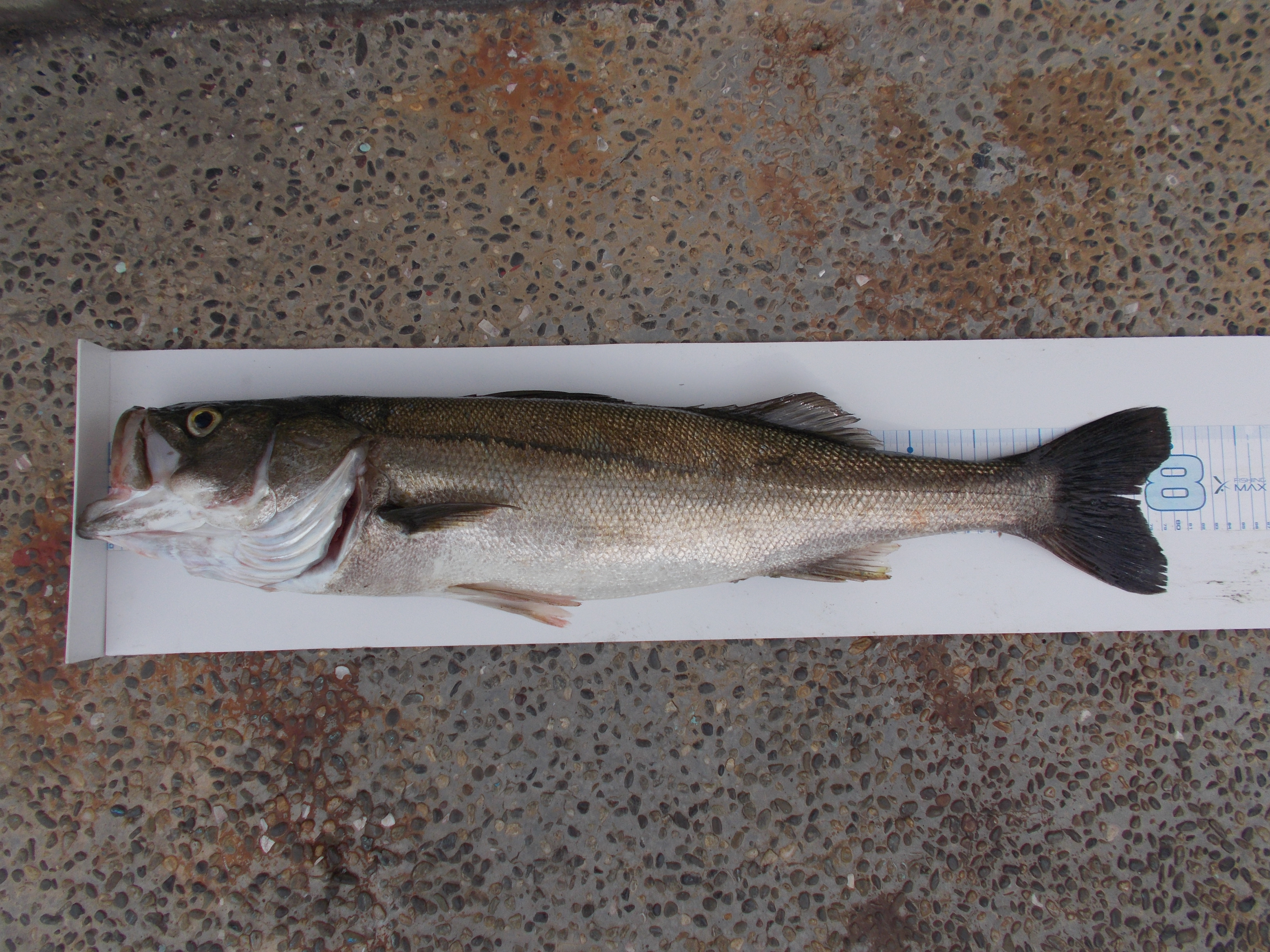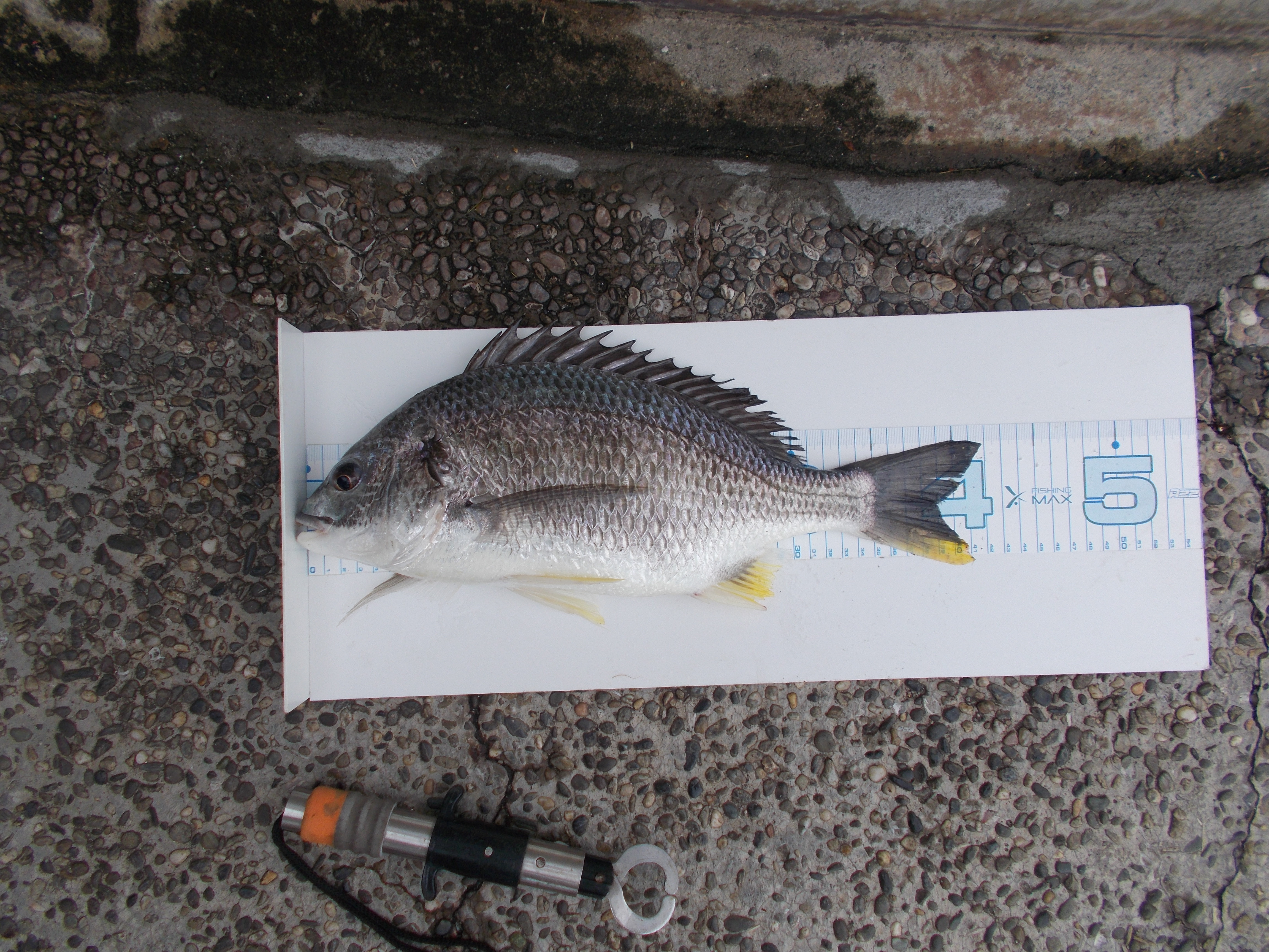 本日は、明け方から朝のうちは雨が降っていてお客様は少なかったです。釣果も本日は悪く、イワシ、サバもほとんど釣れていませんでした。お昼頃には42㎝のキビレ餌オキアミ【月間大物賞エントリー】が西端で上がりました。