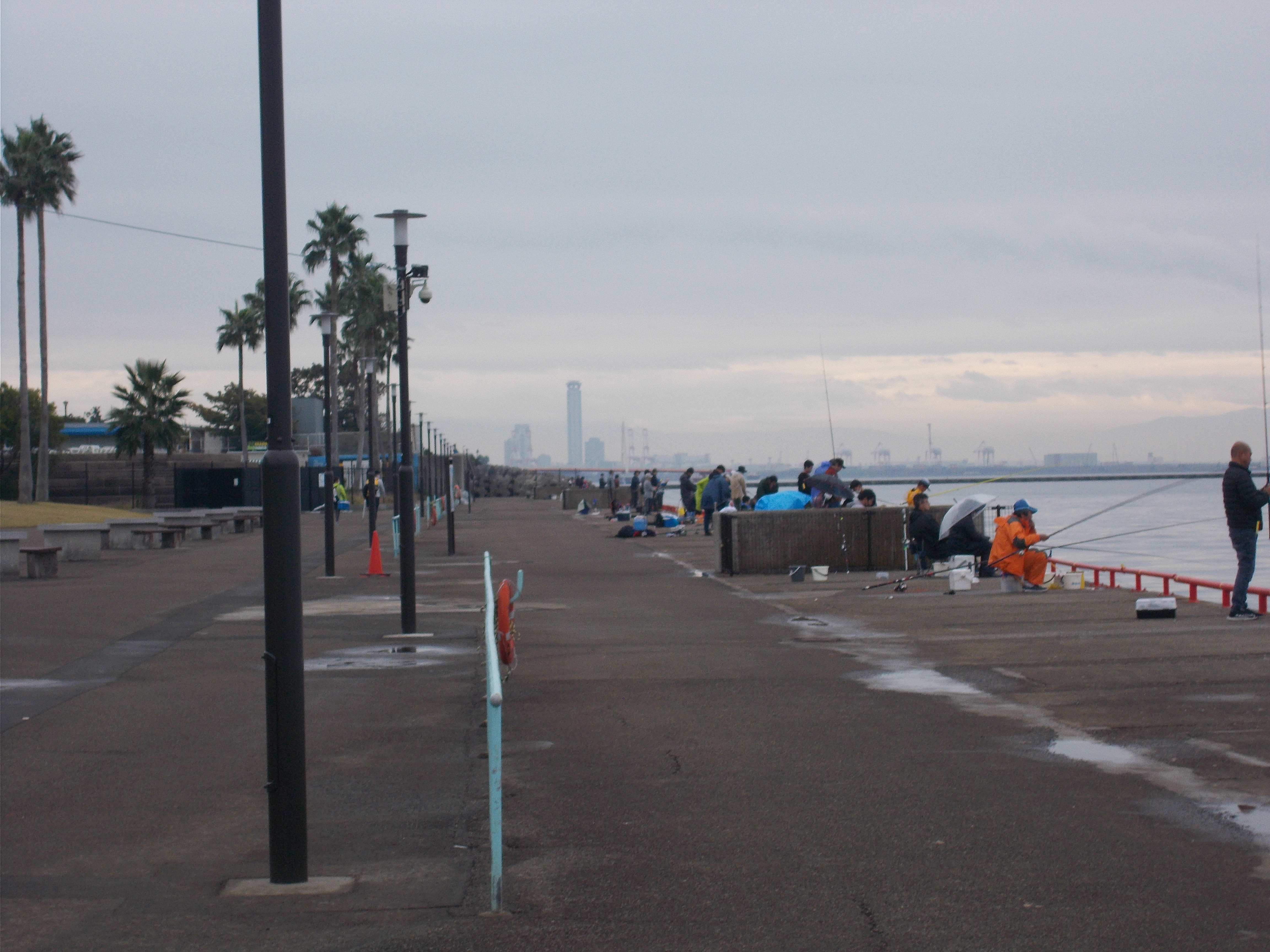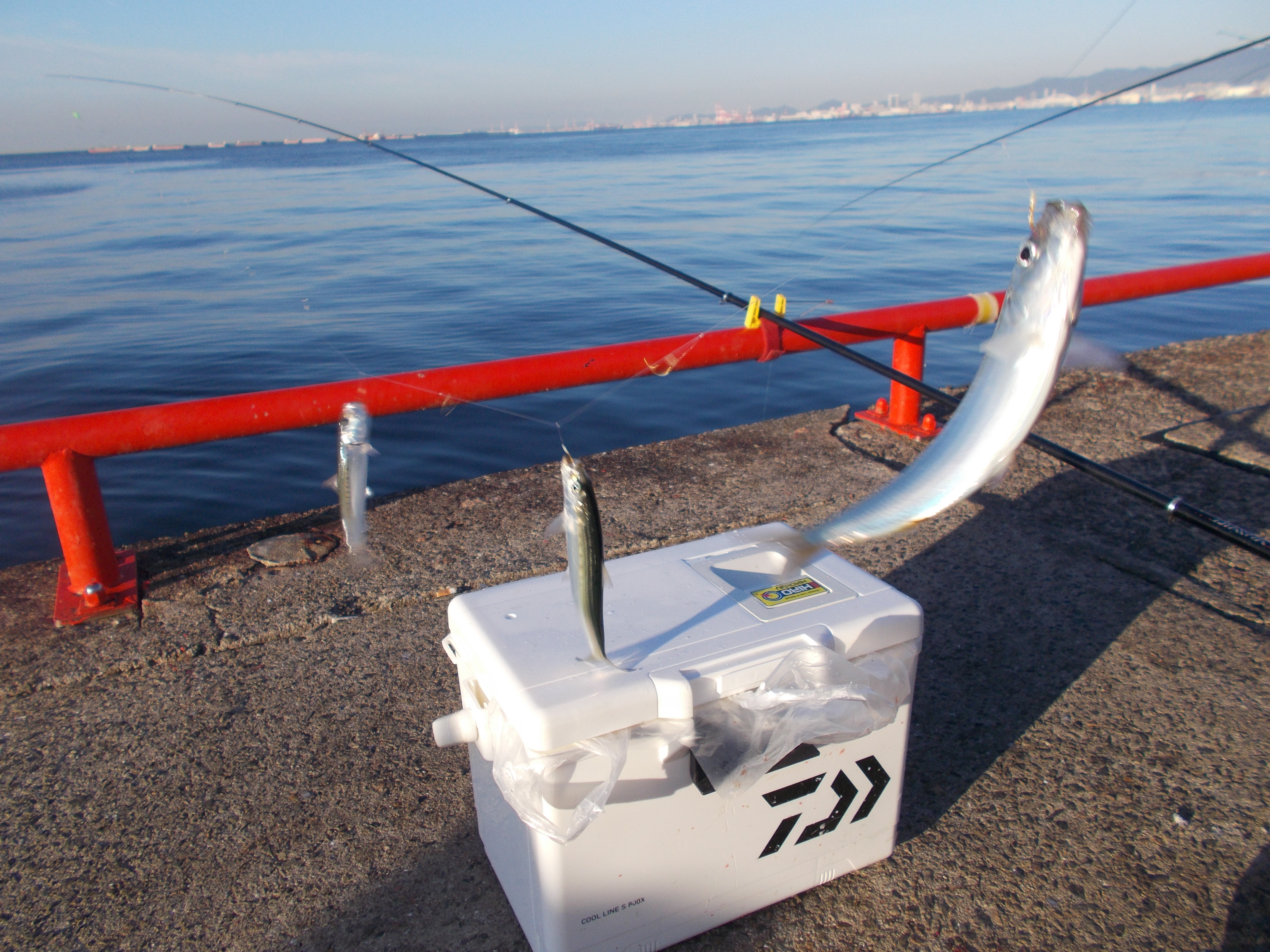 ひんやりとした肌寒い朝です。釣果は、どの釣り方でも悪いです。早朝の少しの時合にサバ、マイワシ、アジが少量釣れた程度で、良く釣れている時の鳴尾浜と比べればだいぶ静かです。