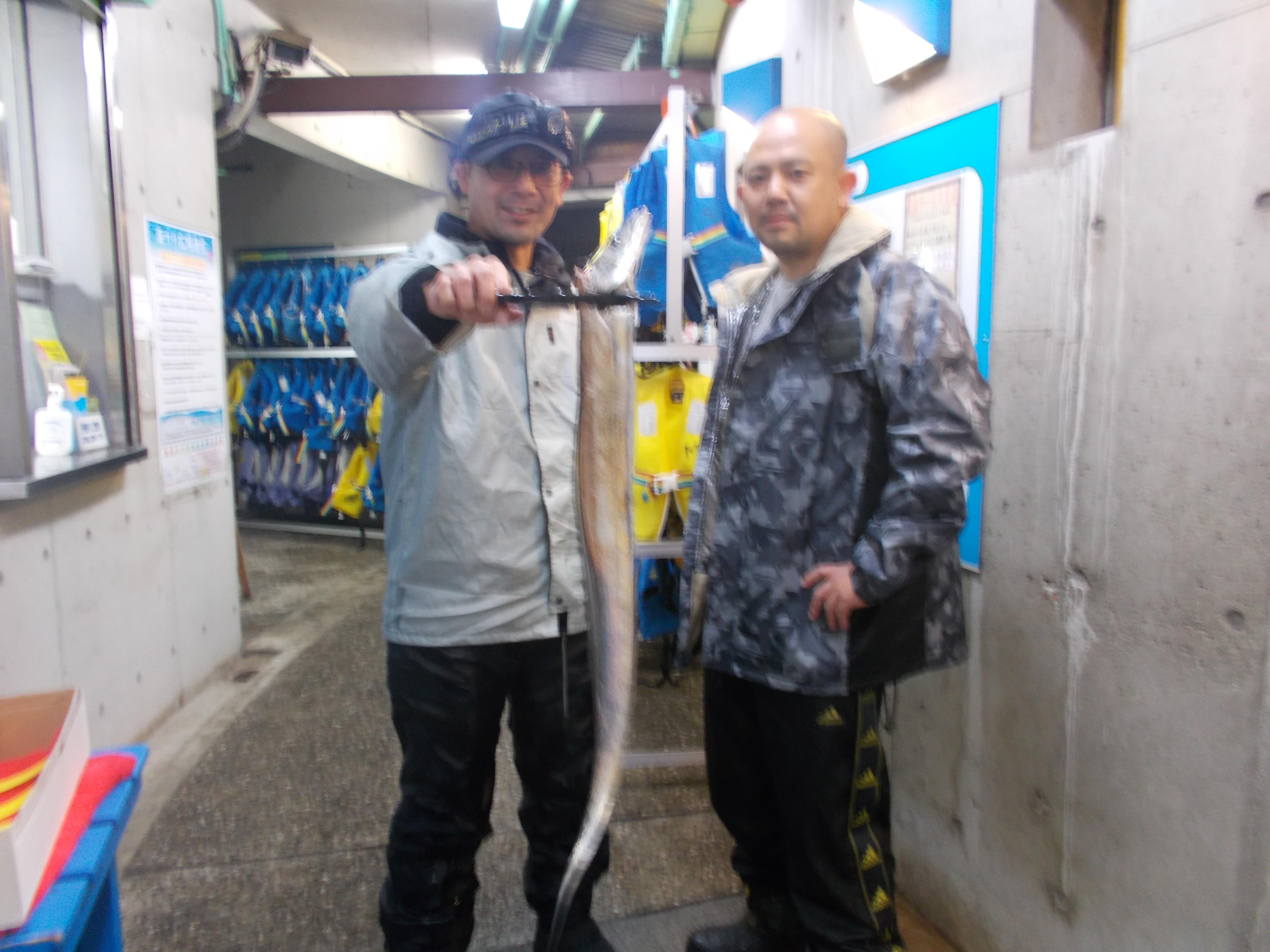 雨の中午後8時過ぎ東でタチウオが1匹上がりました。91cm。餌さんまの切り身。