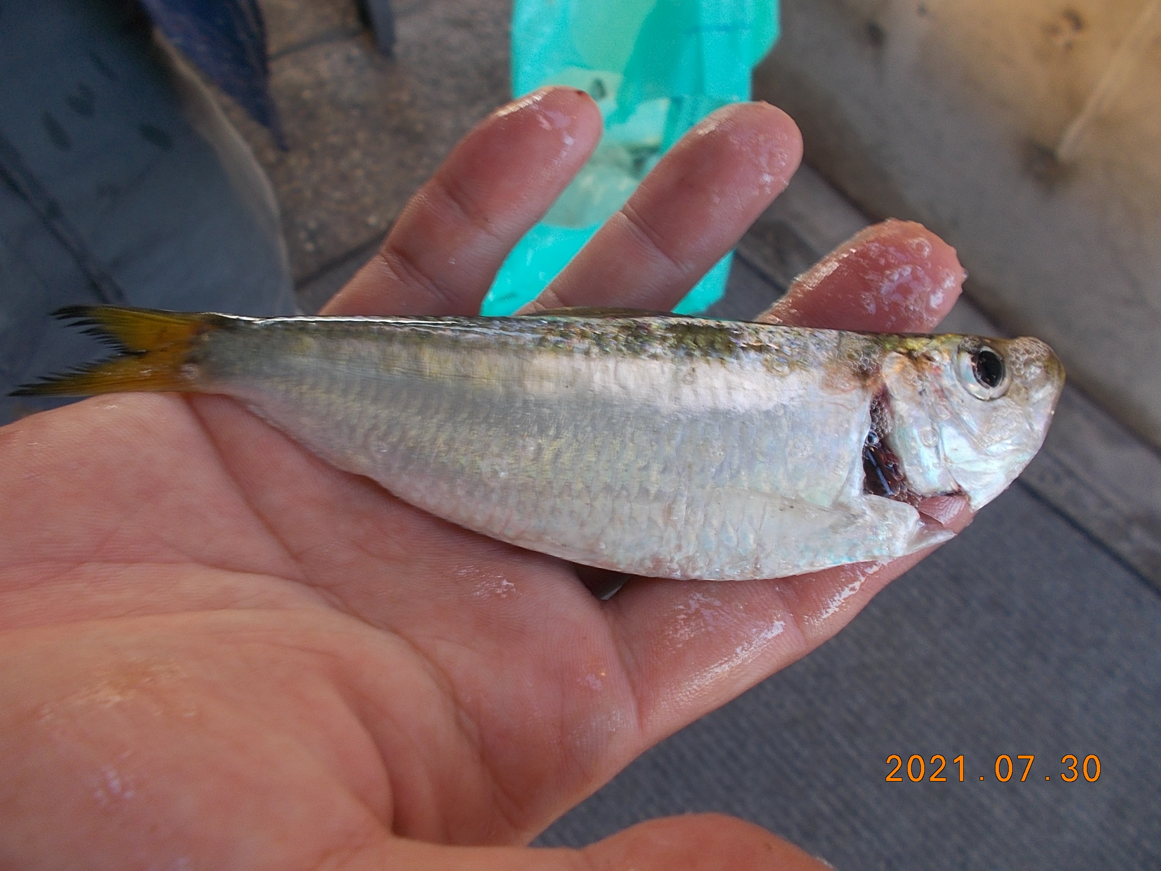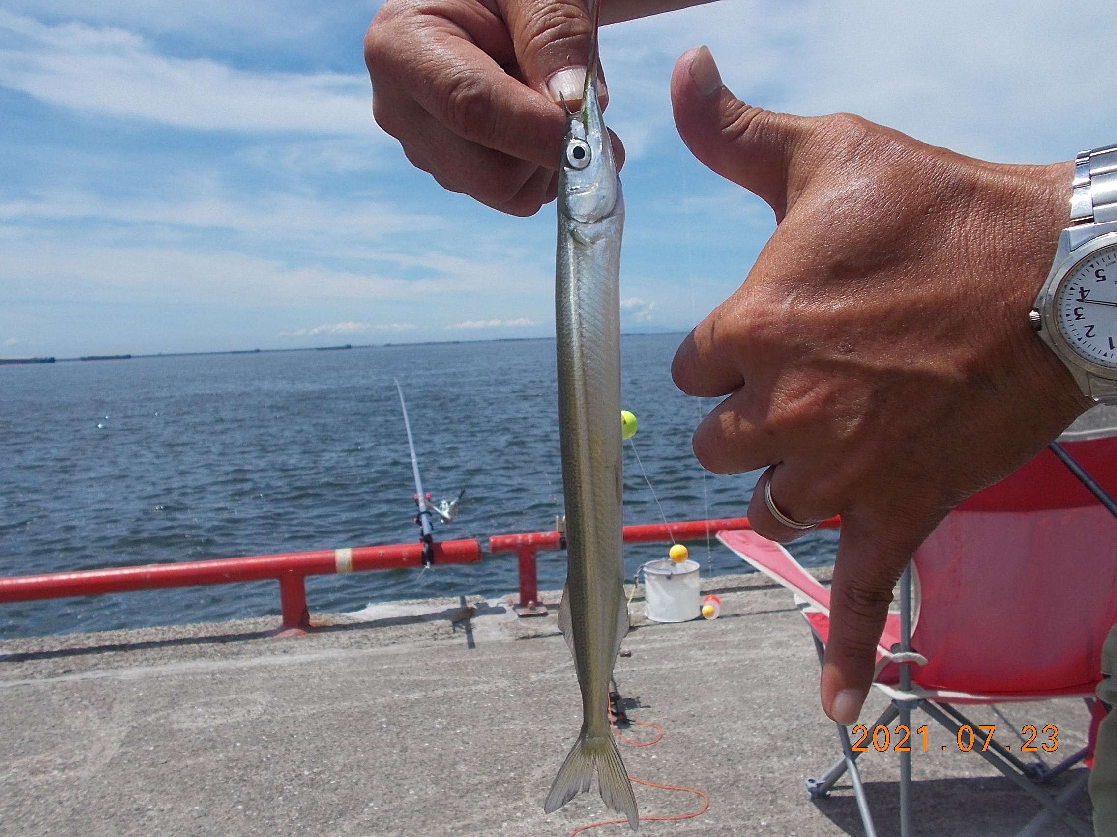 小サバの中にコノシロが混じり、4匹釣った家族さんもおられました。釣れているコノシロは大きいので小骨が気になり、塩焼きや煮付けは小さなお子さんには少々食べにくい魚かもしれません。
