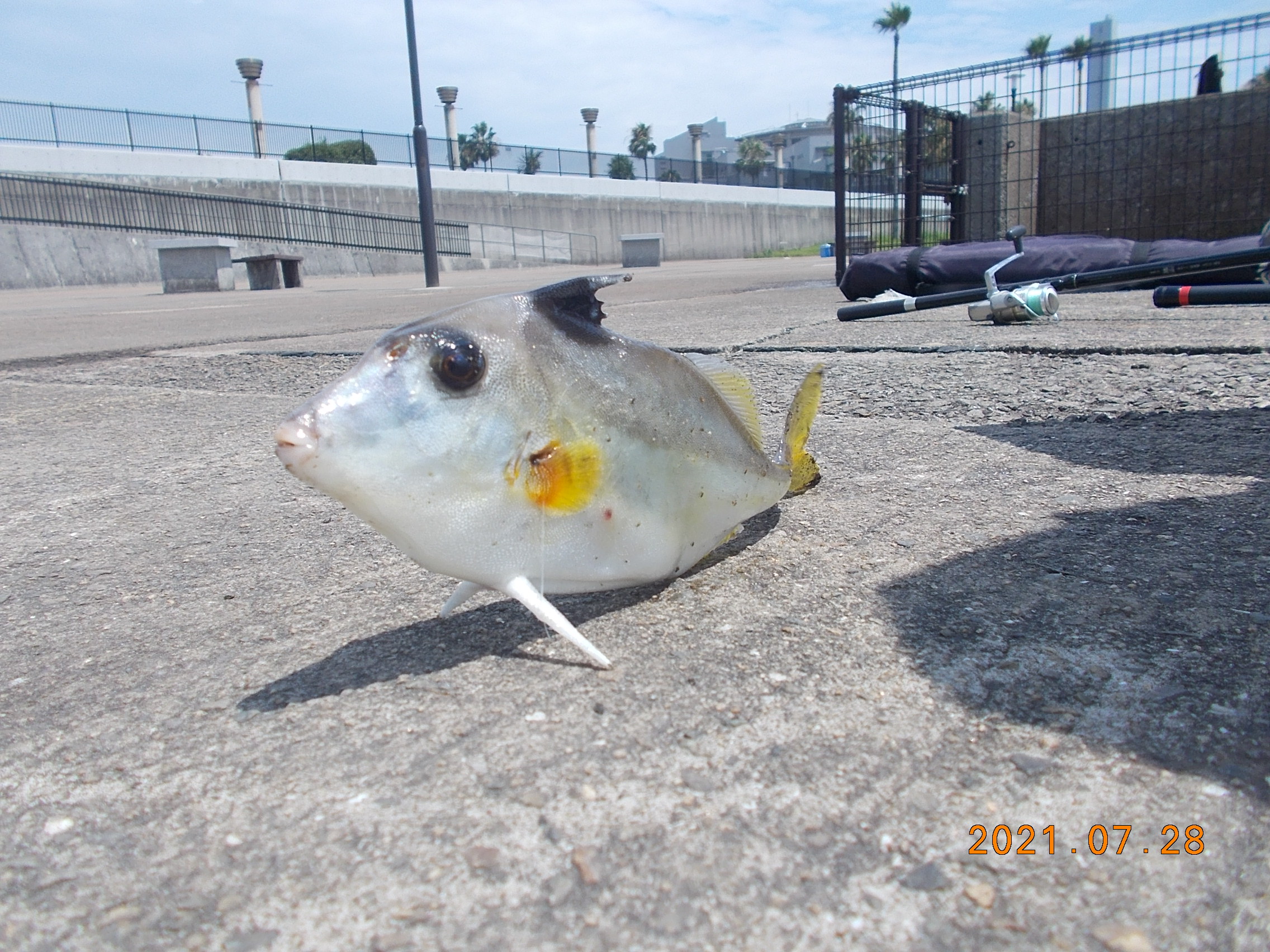 かなり暑くなった鳴尾浜です。あんまり暑いのでサバも休憩タイムなのか?昼から中々釣れません。暑いので休憩をとり水分補給しながらゆっくり頑張って下さい。ギマですが餌は青イソメで、底釣りだそうです。
