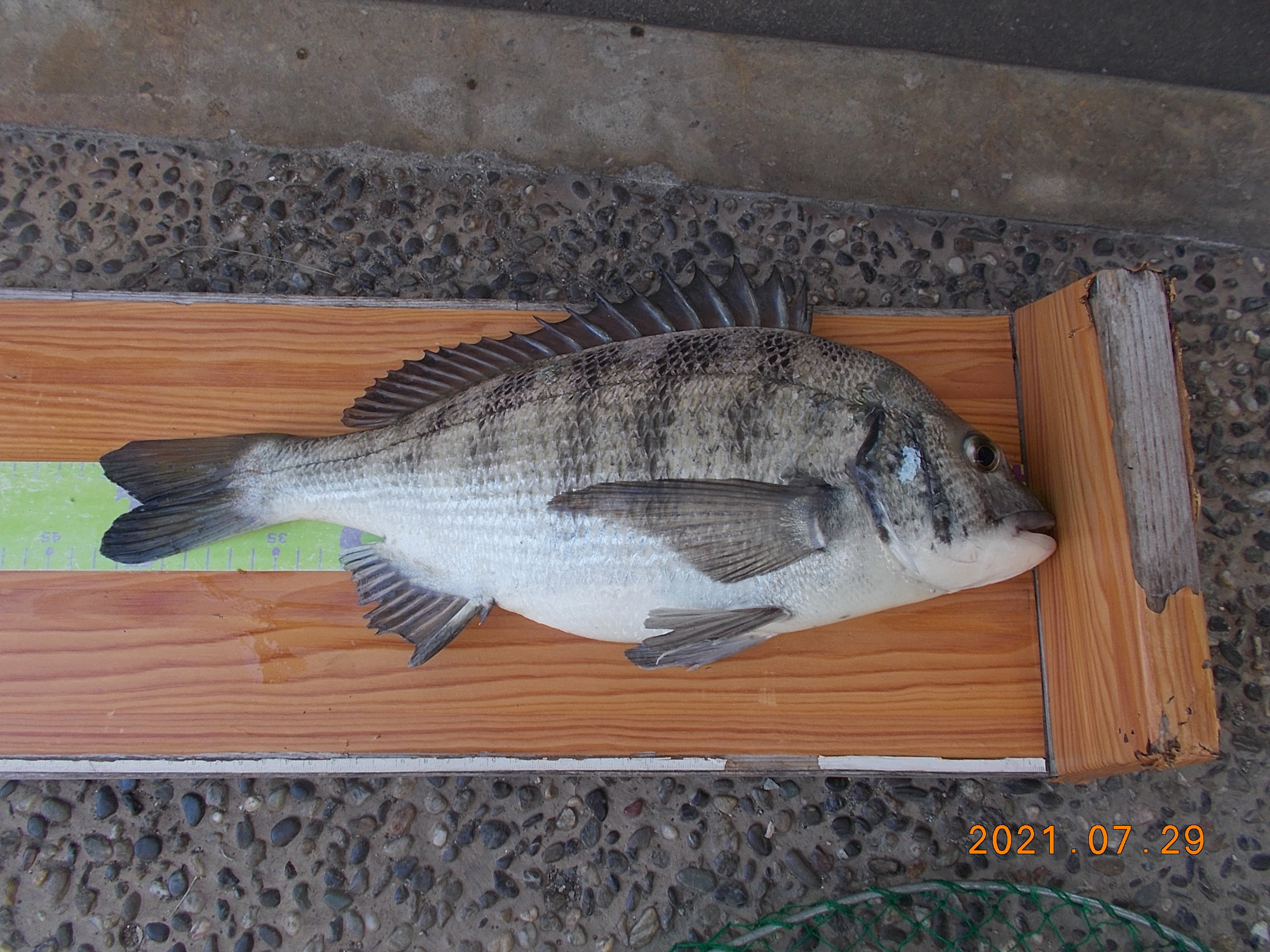 管理棟前でズボ釣り(コーン)をされている常連さんが、46cmのチヌをゲットされました。また、東側ではダンゴ釣りで、40cmのチヌを2匹上げられていました。