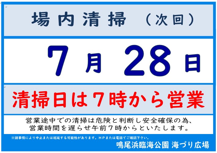 【 21年度 海づり広場 場内清掃 】 次回は明日7月28日(水曜日)