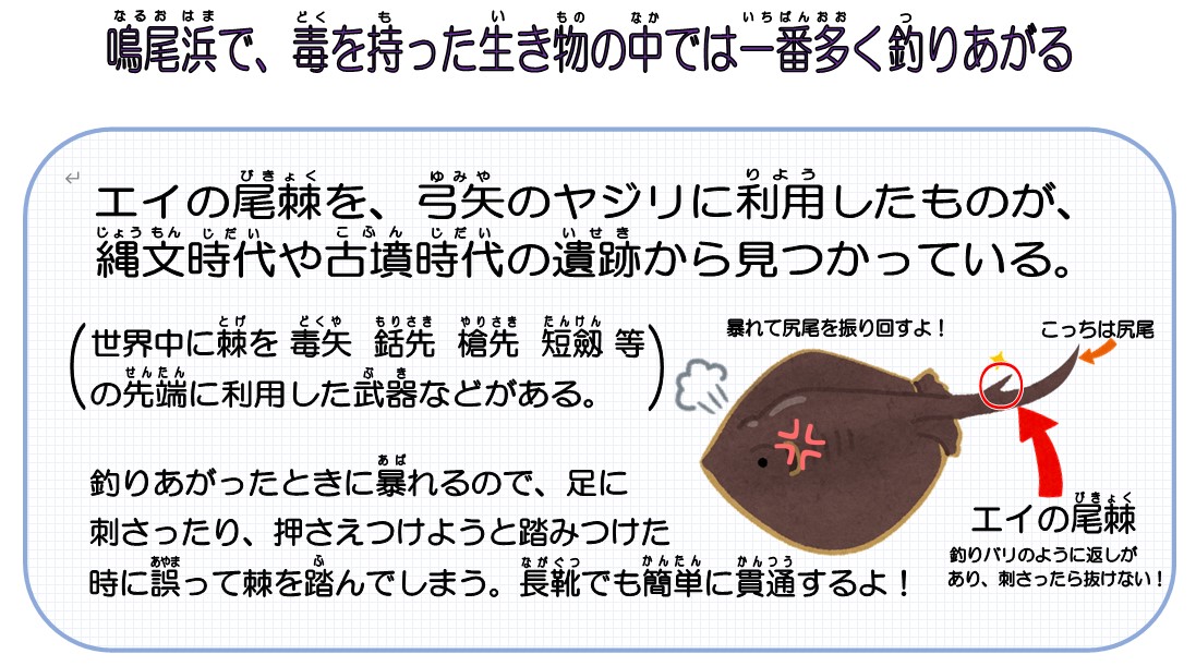 この一ヶ月ノマセで釣果が上がっていません、毎日どなたかがチャレンジをされていますが、残念ながらエイばかり…、この一週間毎日上がっているかと思います。尻尾の付け根に強力な棘があり強い毒を持っていますので、仕掛けを回収する為にタモですくう際は気をつけて下さい。