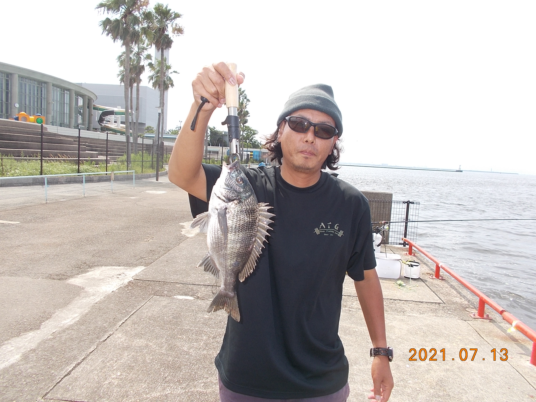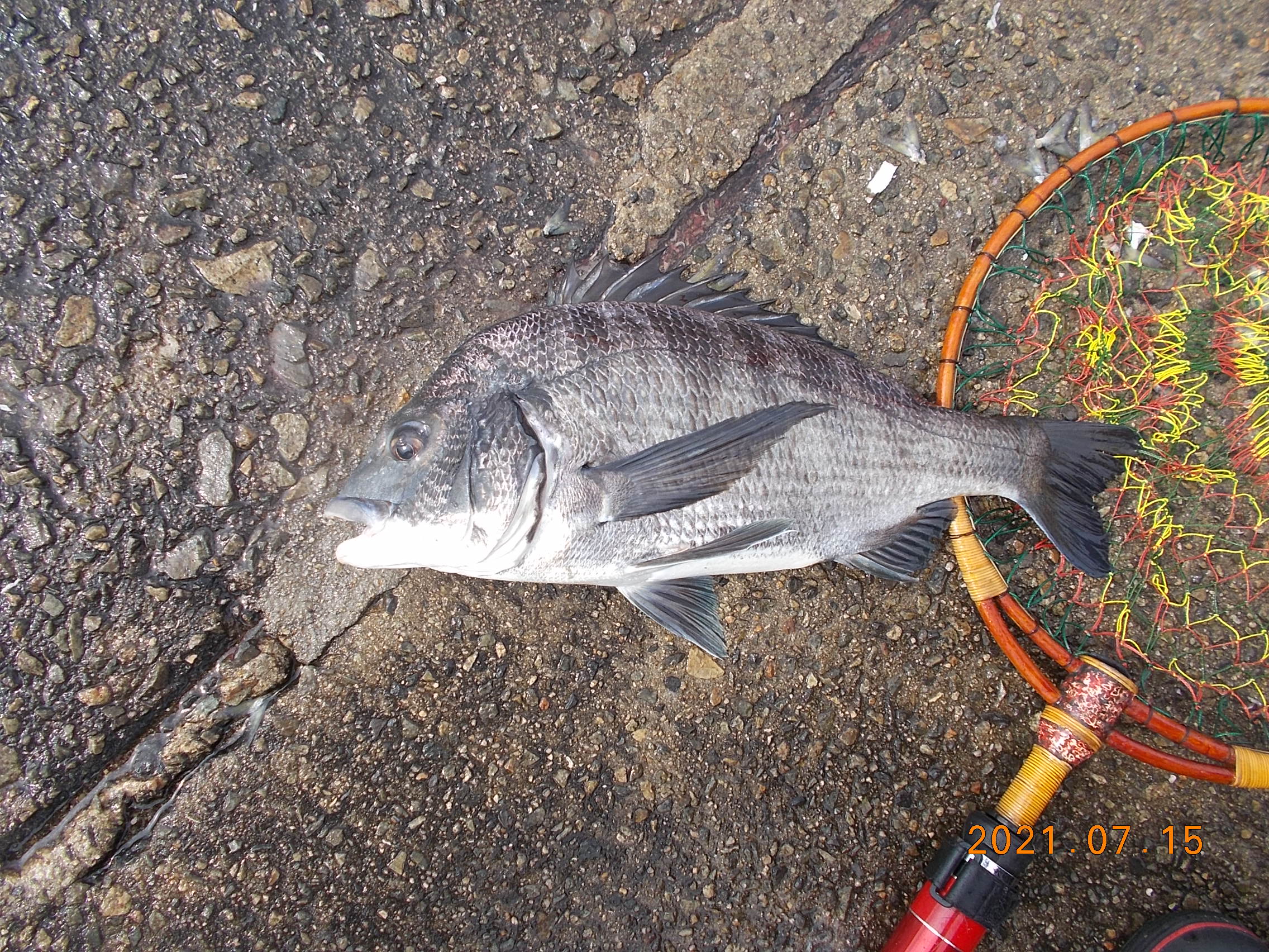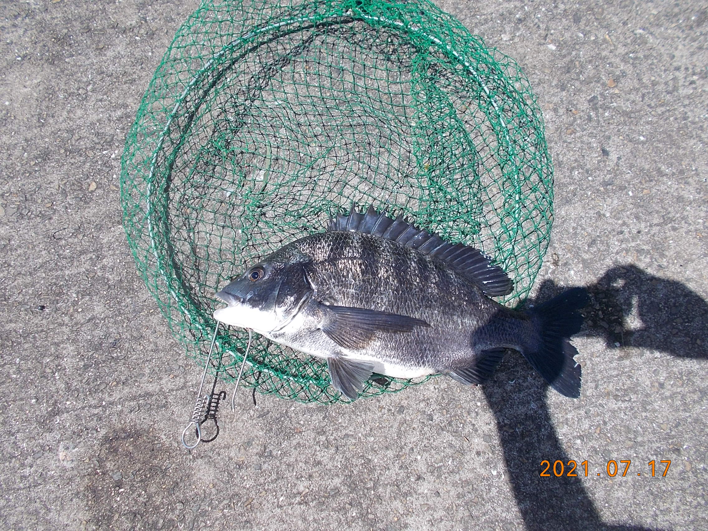 午後4時前中央付近、女性の方が初めての海釣りサビキ仕掛けでなんとチヌ45cmを上げられました。