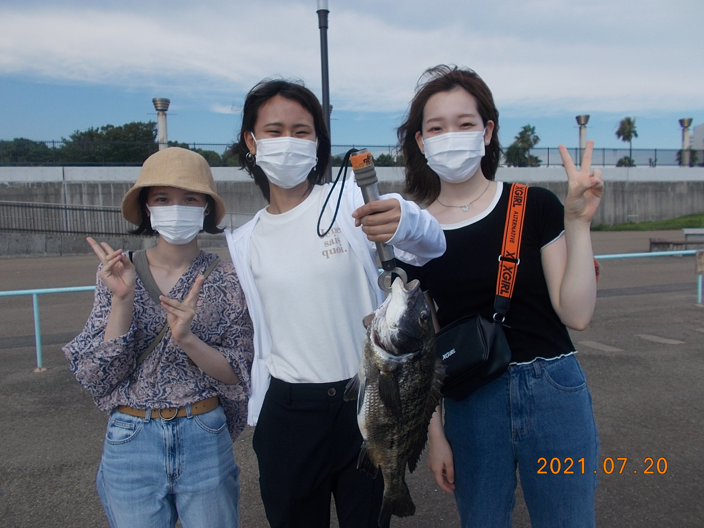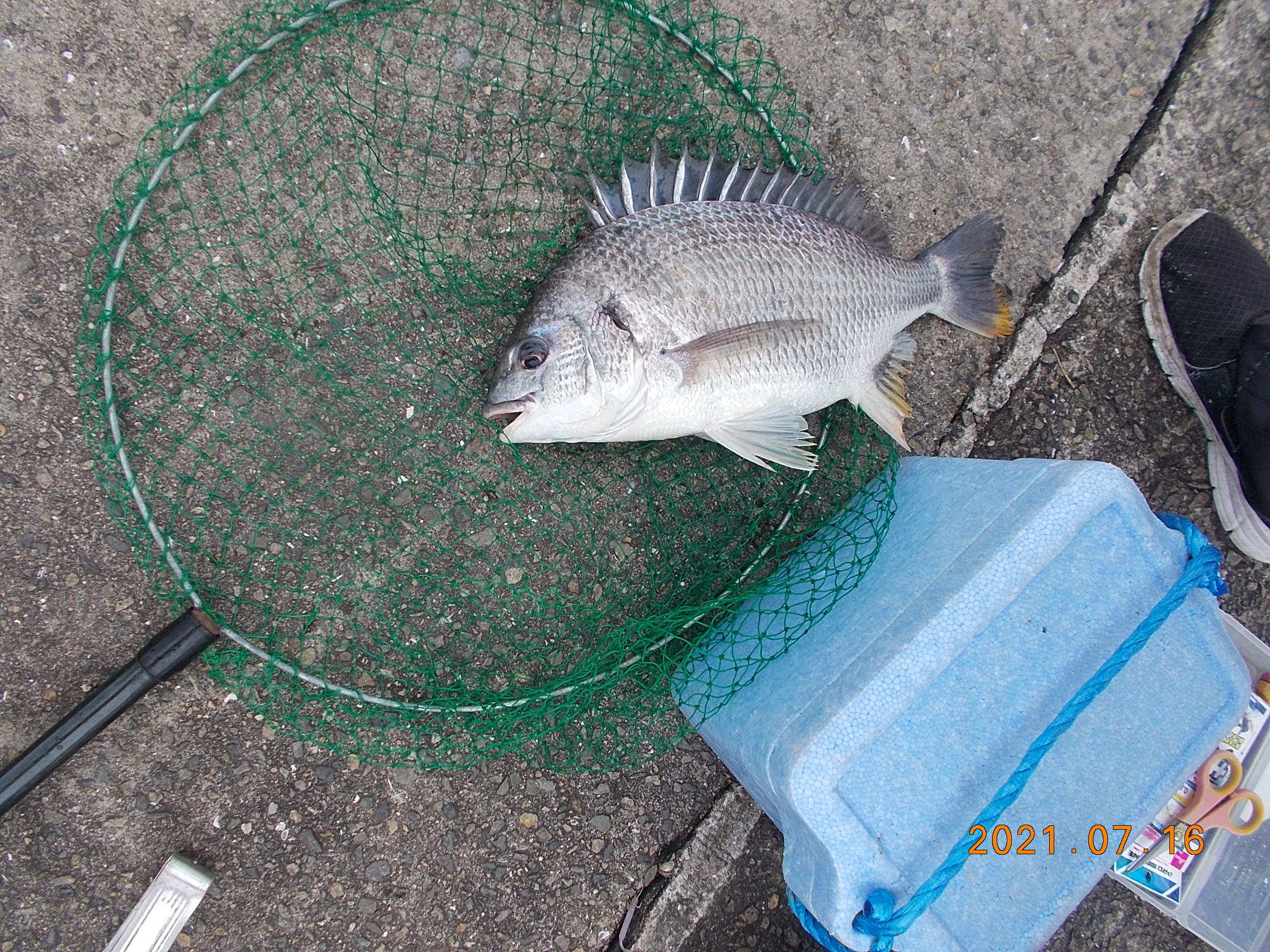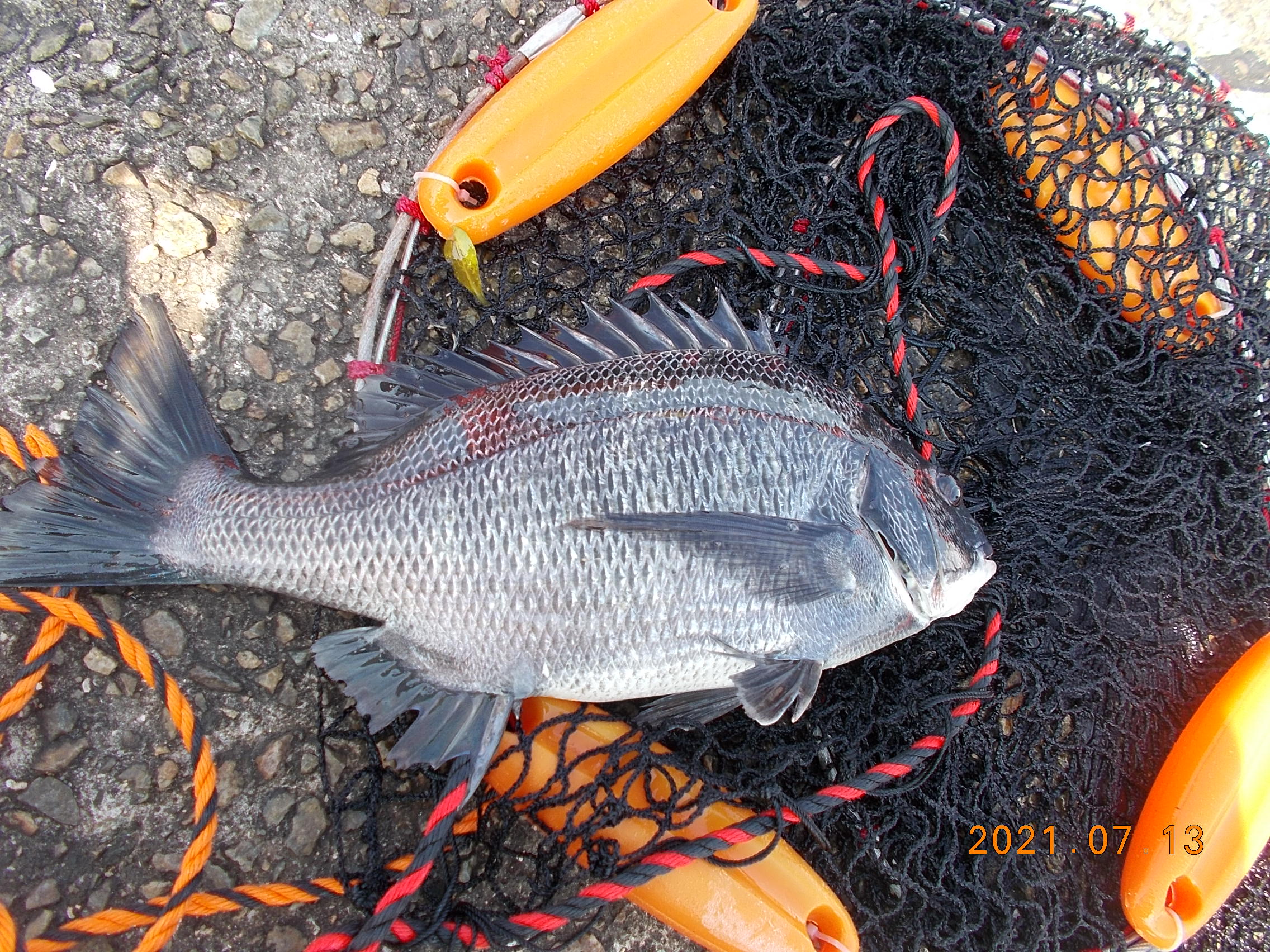 午後4時前中央付近、女性の方が初めての海釣りサビキ仕掛けでなんとチヌ45cmを上げられました。