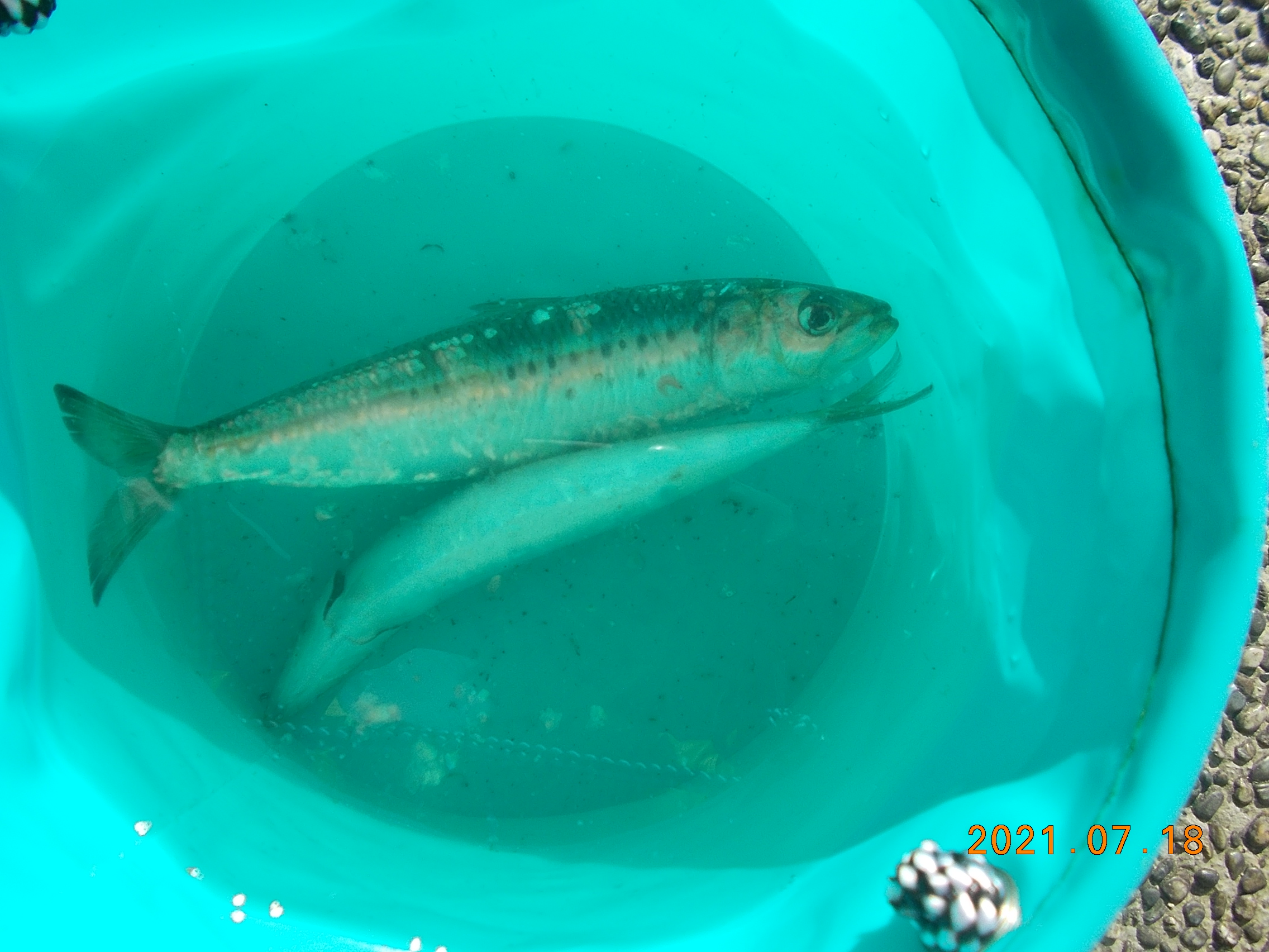 サビキは相変わらずサバが釣れています。2~3週間前は凄く小さかったのに大分大きくなりました。今日はマイワシも釣れています。