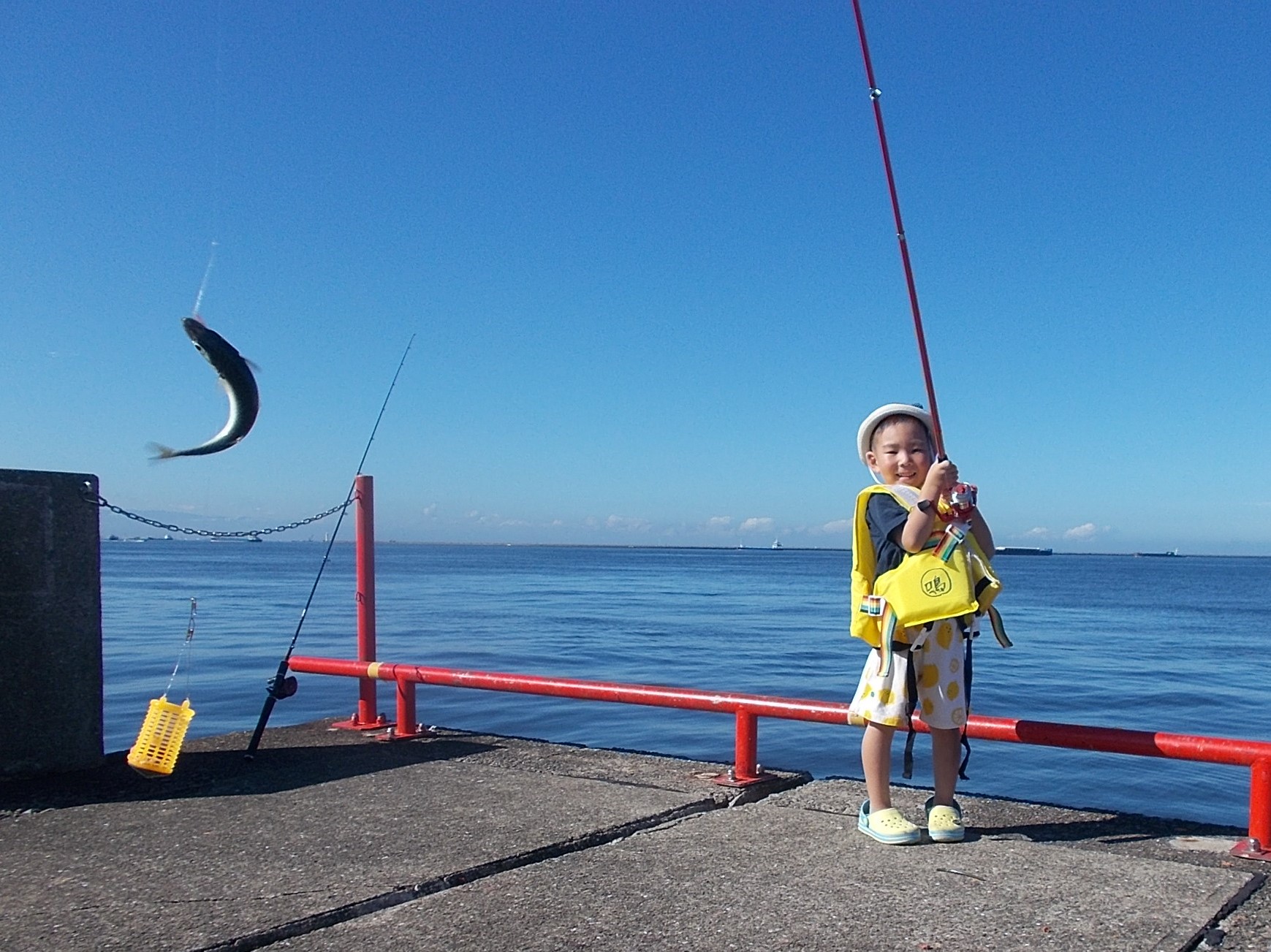 午後からも沢山の家族連れのお客様が楽しく釣りをされています、釣果の方ですが、相変わらず小サバが釣れていますが段々と大きくなっています。ギマ、マイワシ、サヨリ、サッパ、コノシロ、も少ないですが釣れました。