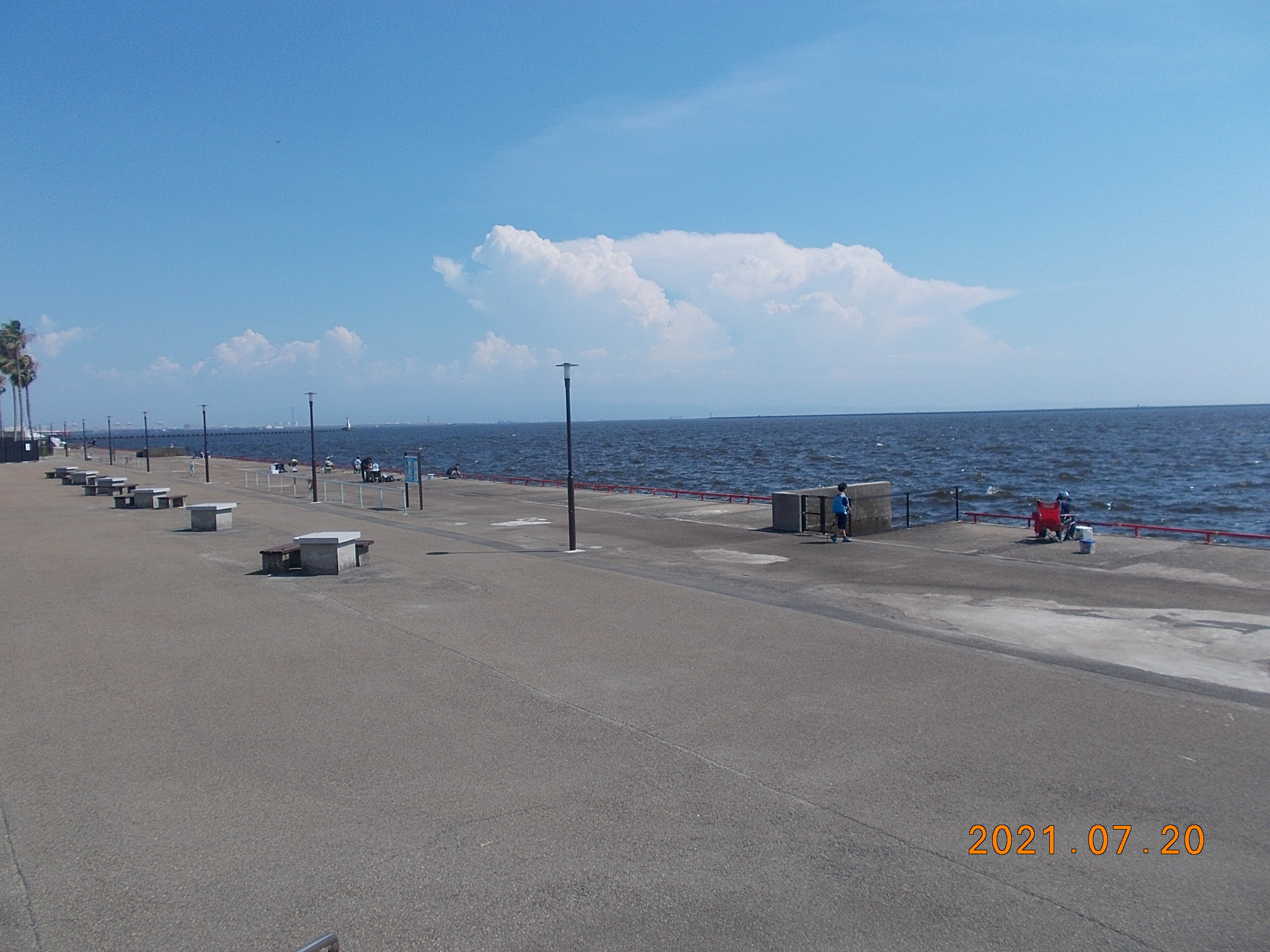鳴尾浜海づり広場には、日陰がまったくありません。ですので、日傘やパラソル、ポップアップテント等の日除け対策があると良いかと思います。