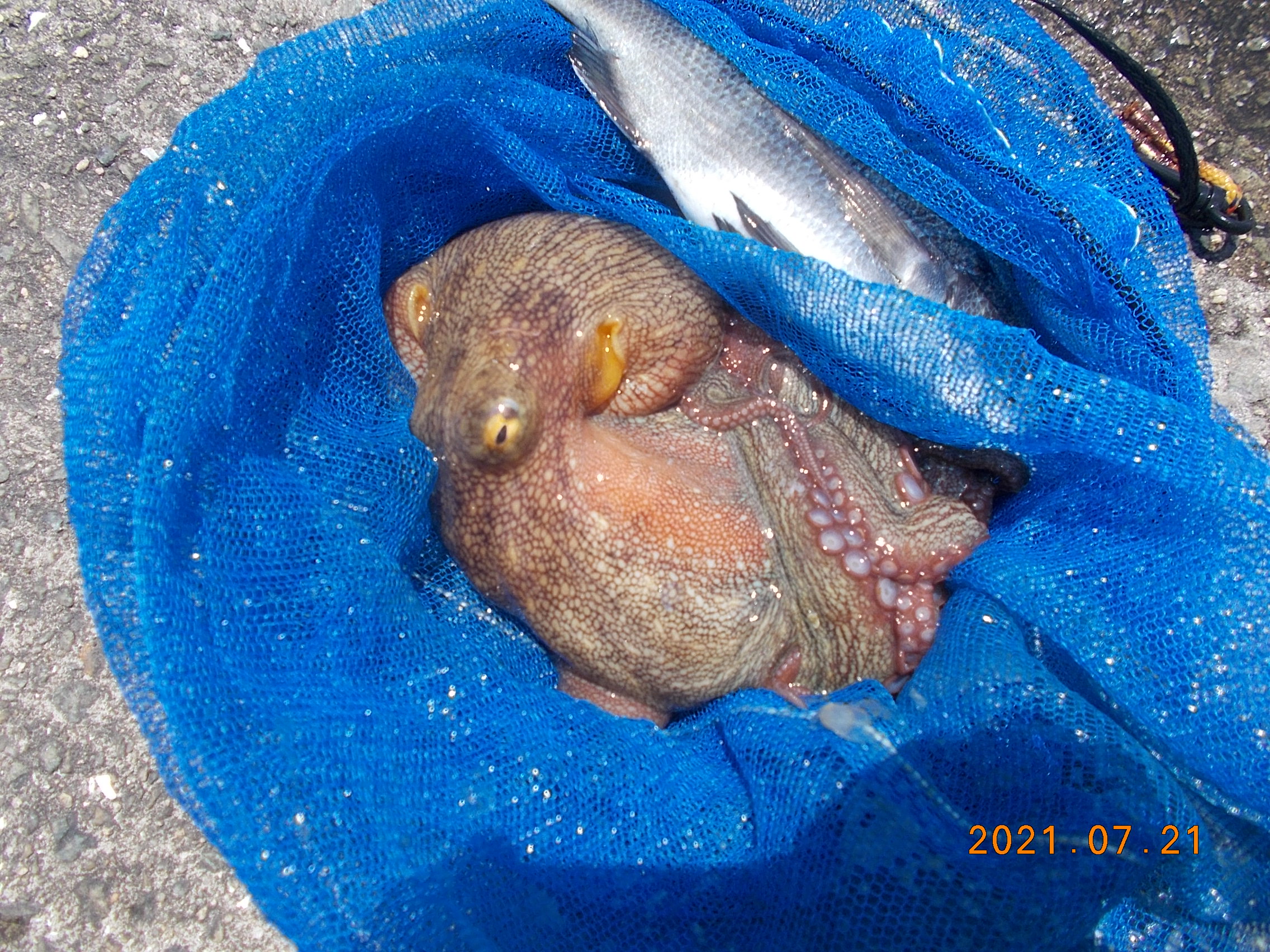 サバ以外の釣果は、サッパやマイワシが少し混ざる事がある、と言った程度です。他にはチヌ狙いのだんご釣りに良型のタコがかかりました。美味しいお土産です。