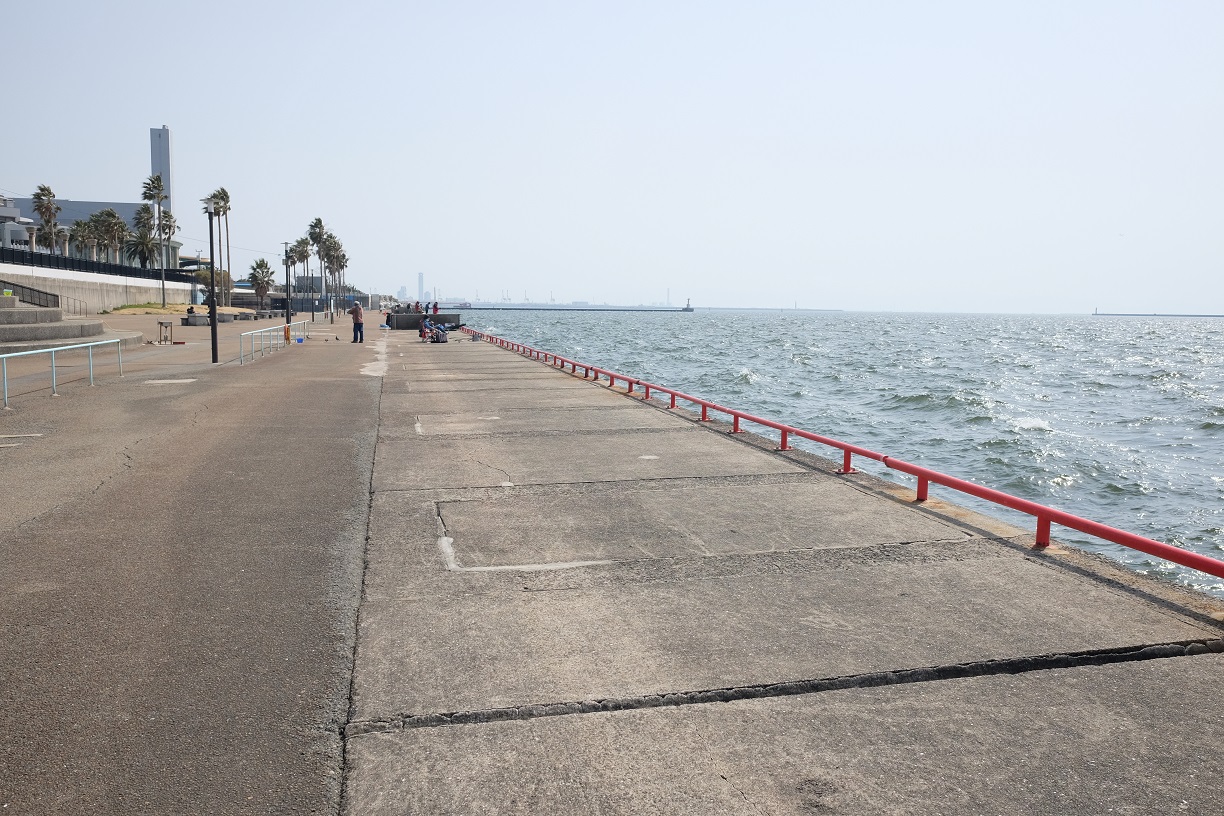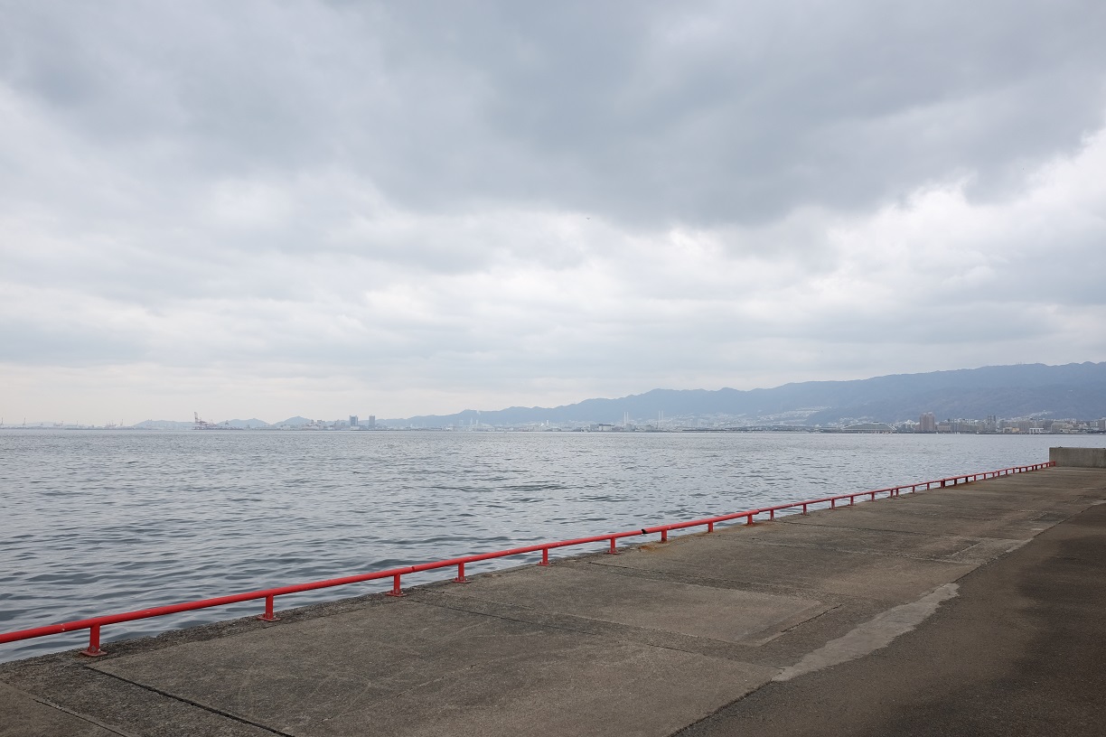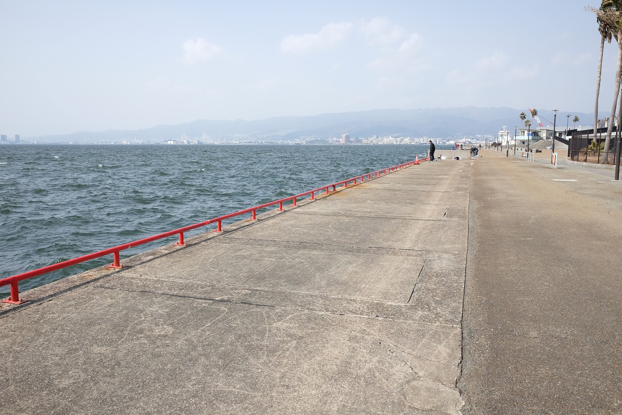 午後4時、日差しが入ってだいぶ暖かくなってきました。鳴尾浜では3人の方が釣をされています。