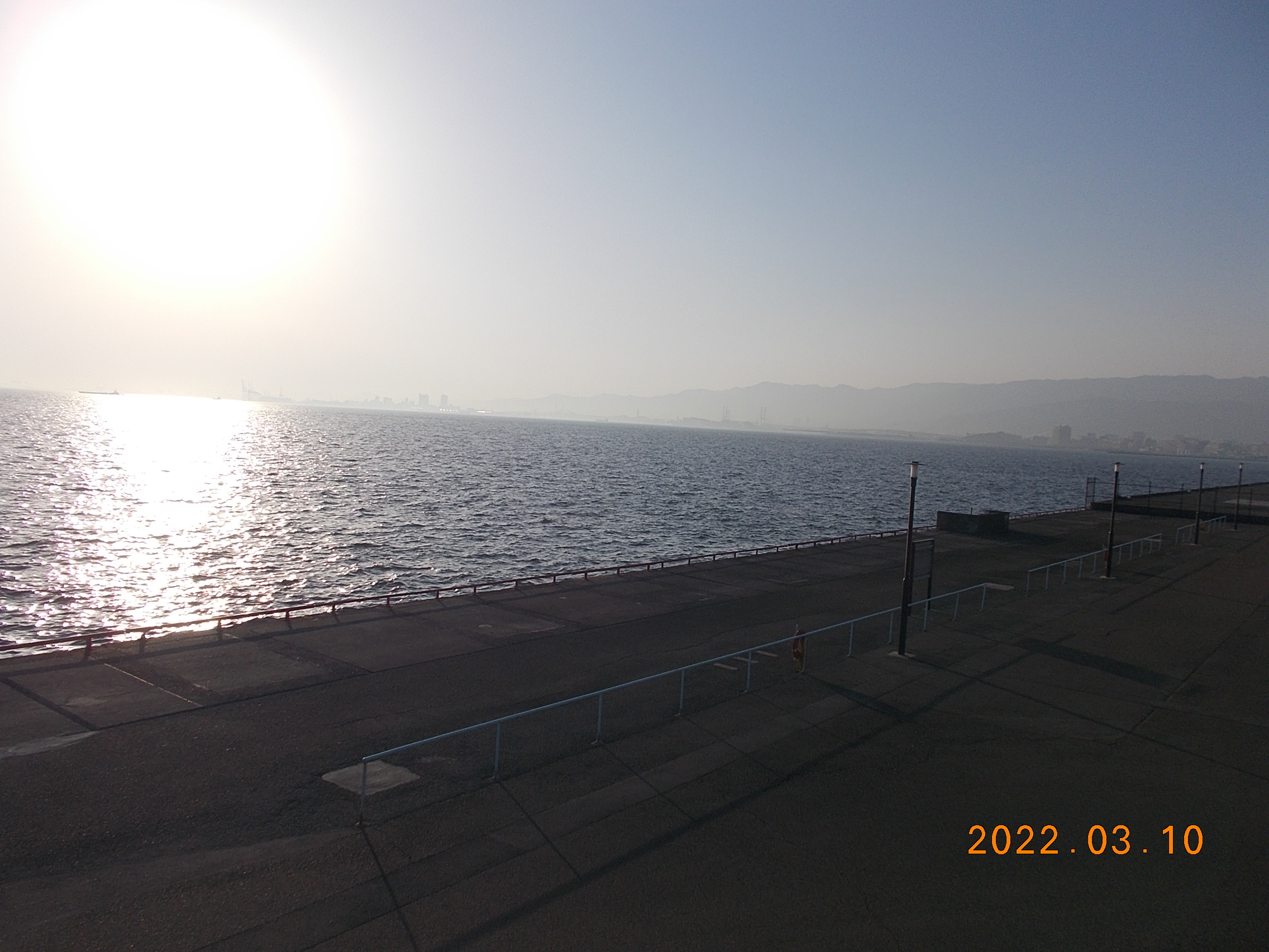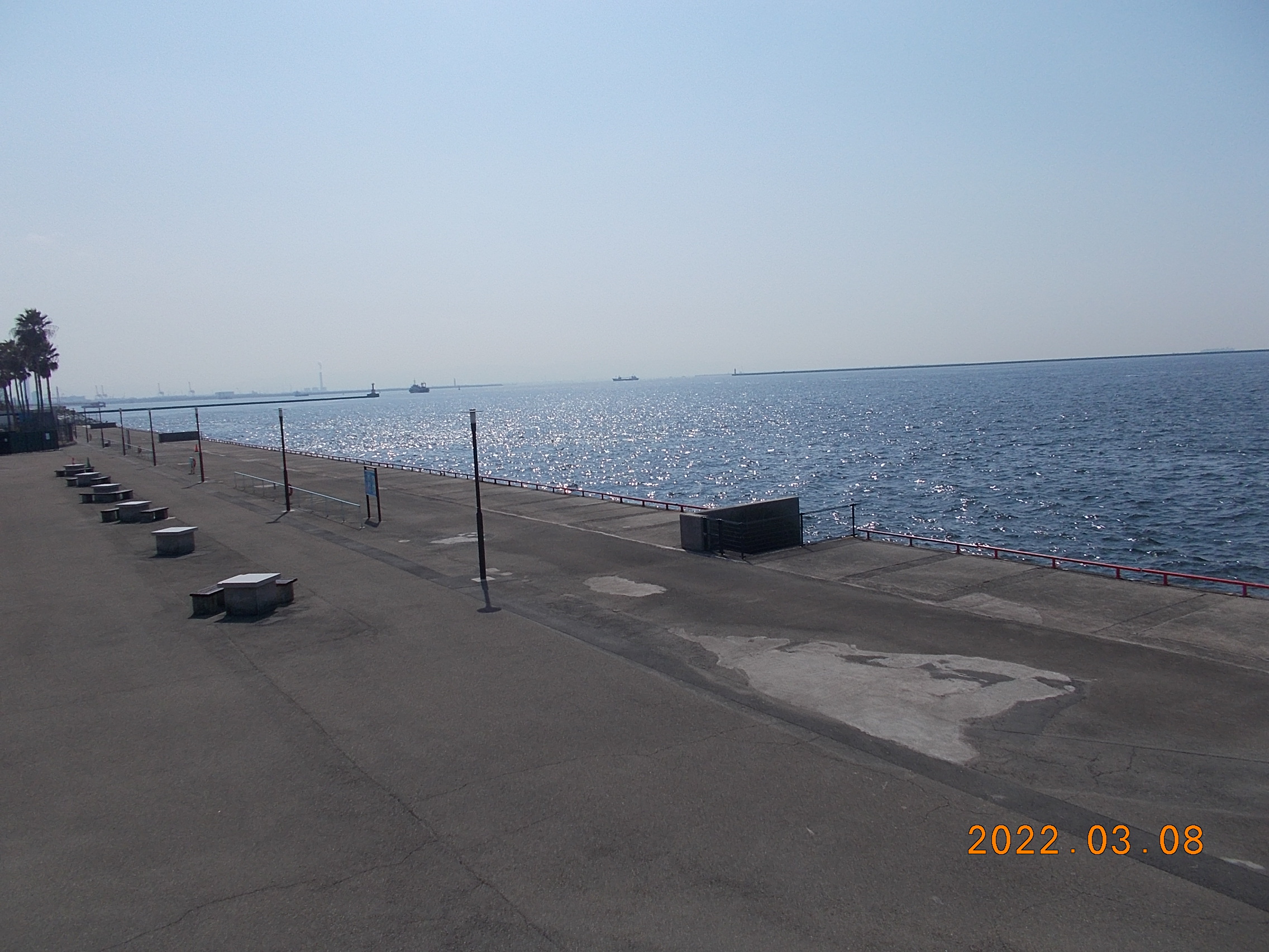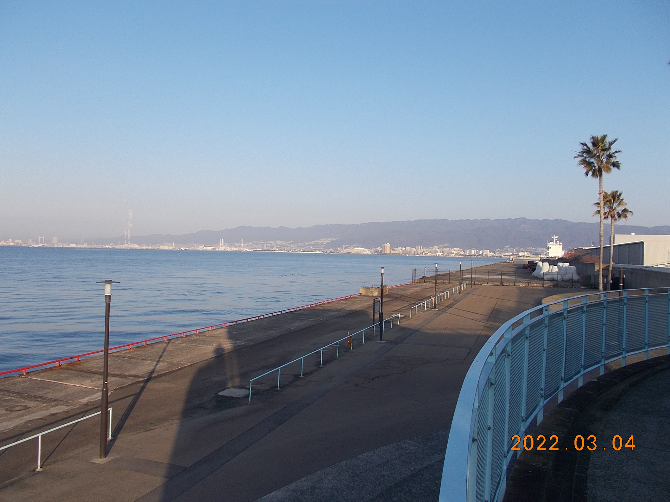 午後4時、日差しが入ってだいぶ暖かくなってきました。鳴尾浜では3人の方が釣をされています。