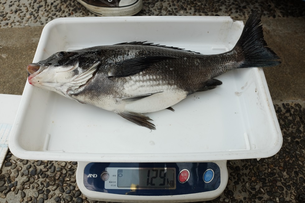 開場後間もなく雨が止んで、時折薄曇りの中陽が射してきました。釣台には、数名のお客様が色々な釣り方で釣りをやられています。フカセ釣り・エビ撒き釣り・ブッコミ釣り・落とし込みでチヌ・ハネをねらっておられます。残念ながら10時現在釣果は無く、今日はなかなか渋いようです。13時前に、朝からエビ撒き釣りをされているお客様がチヌの47cm(1680g)を追加登録されました。おめでとうございます!!