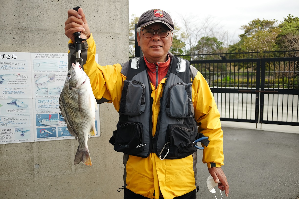 フカセ釣りでは、8時前後にアタリがありましたが、以降が無くなってしまったそうです。午前中は37㎝のチヌが1匹、刺し餌はオキアミ。前回釣果が良かった方も「今日は渋い」との事。
