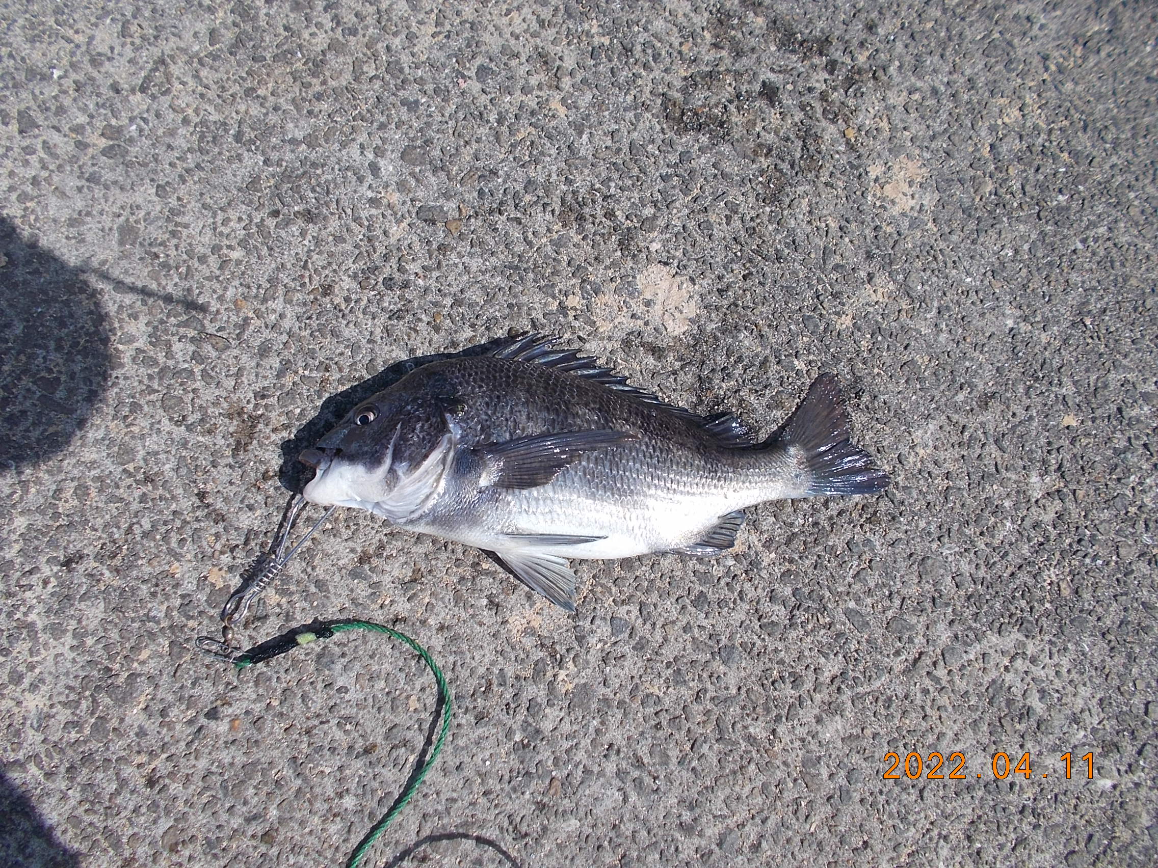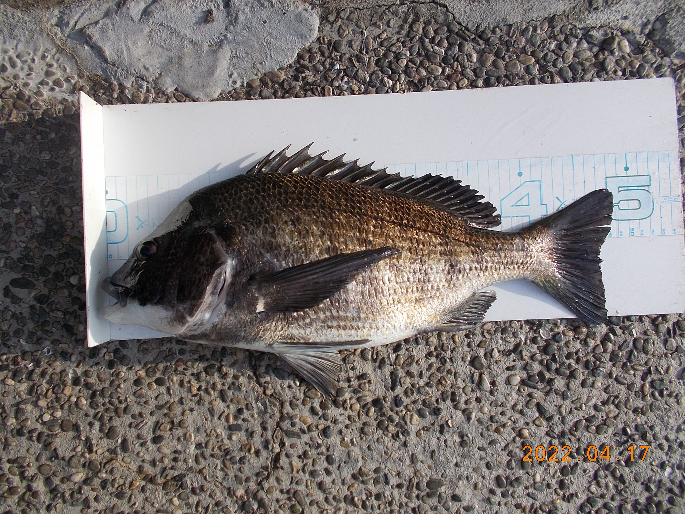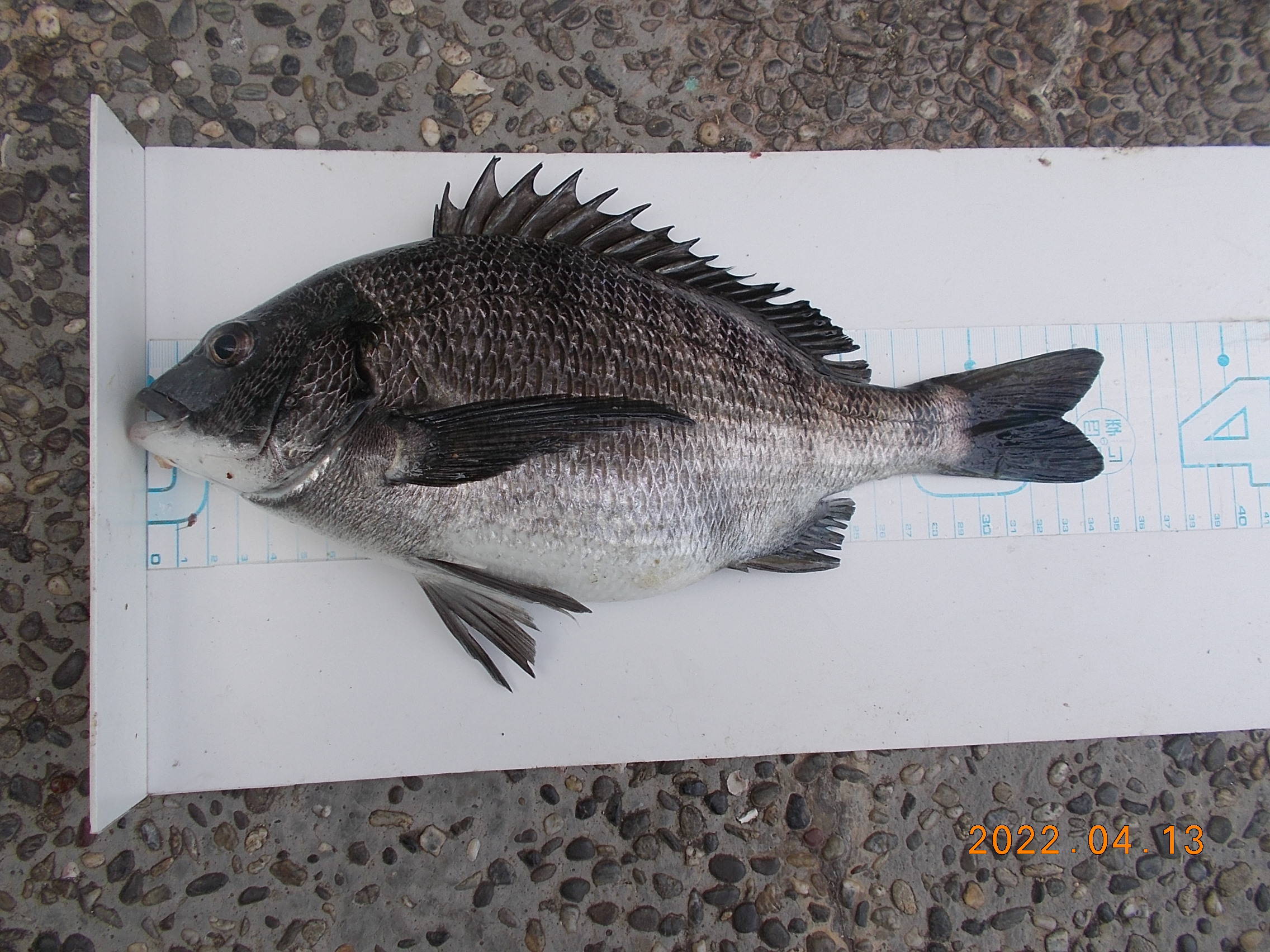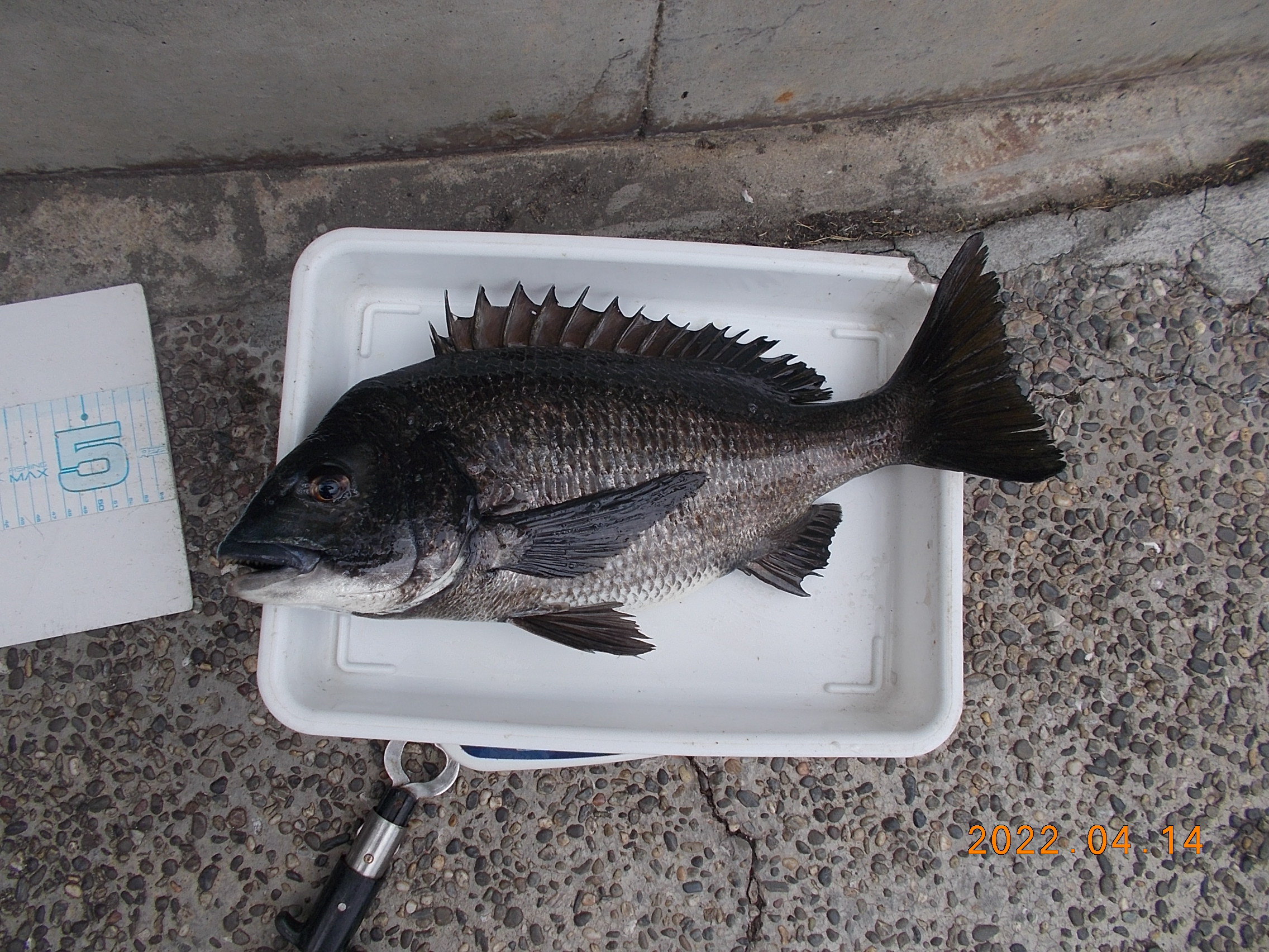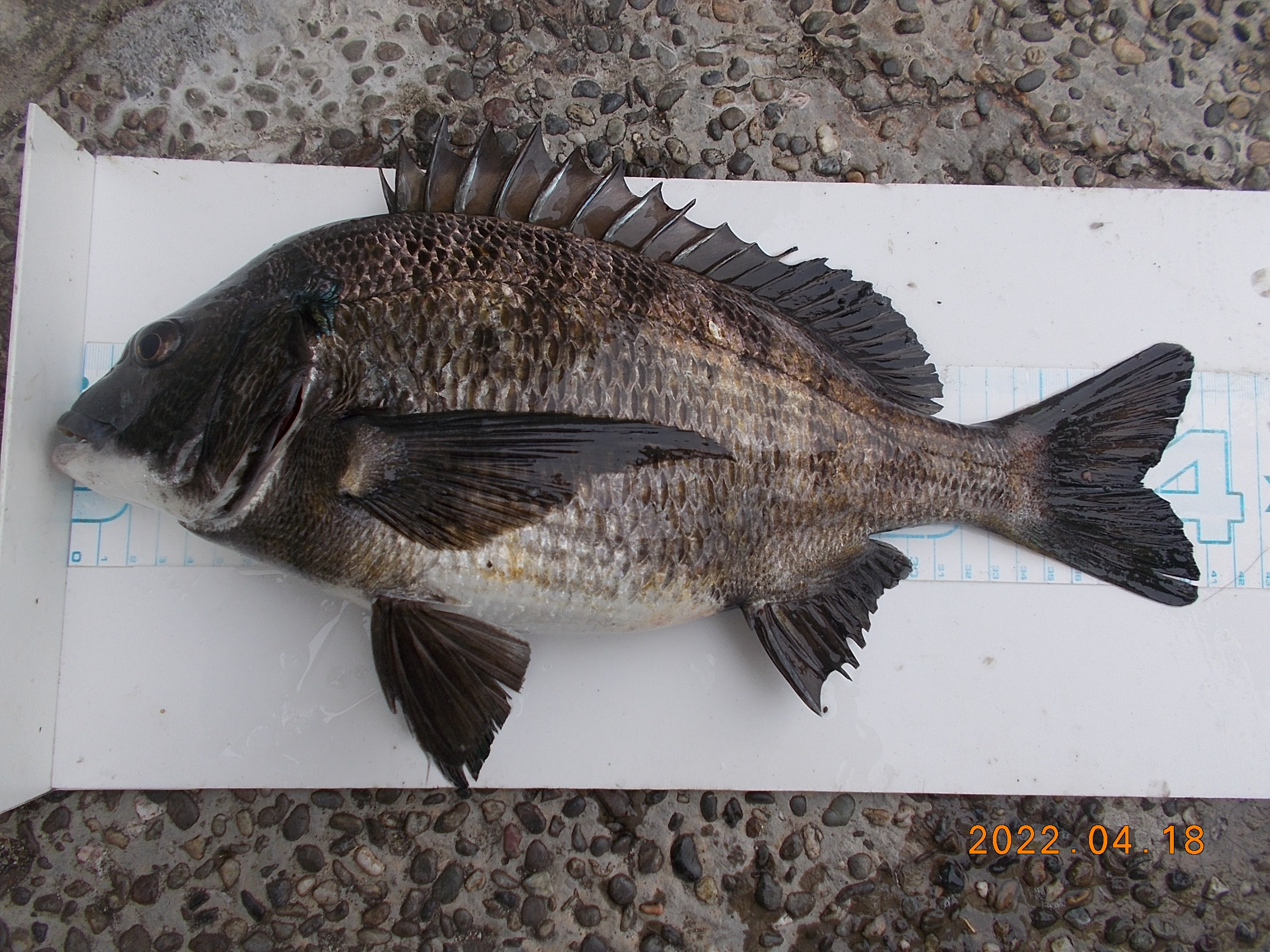 15時、フカセ釣りの方が今日三匹目のチヌを釣り上げられました。41㎝で餌はオキアミでした。
