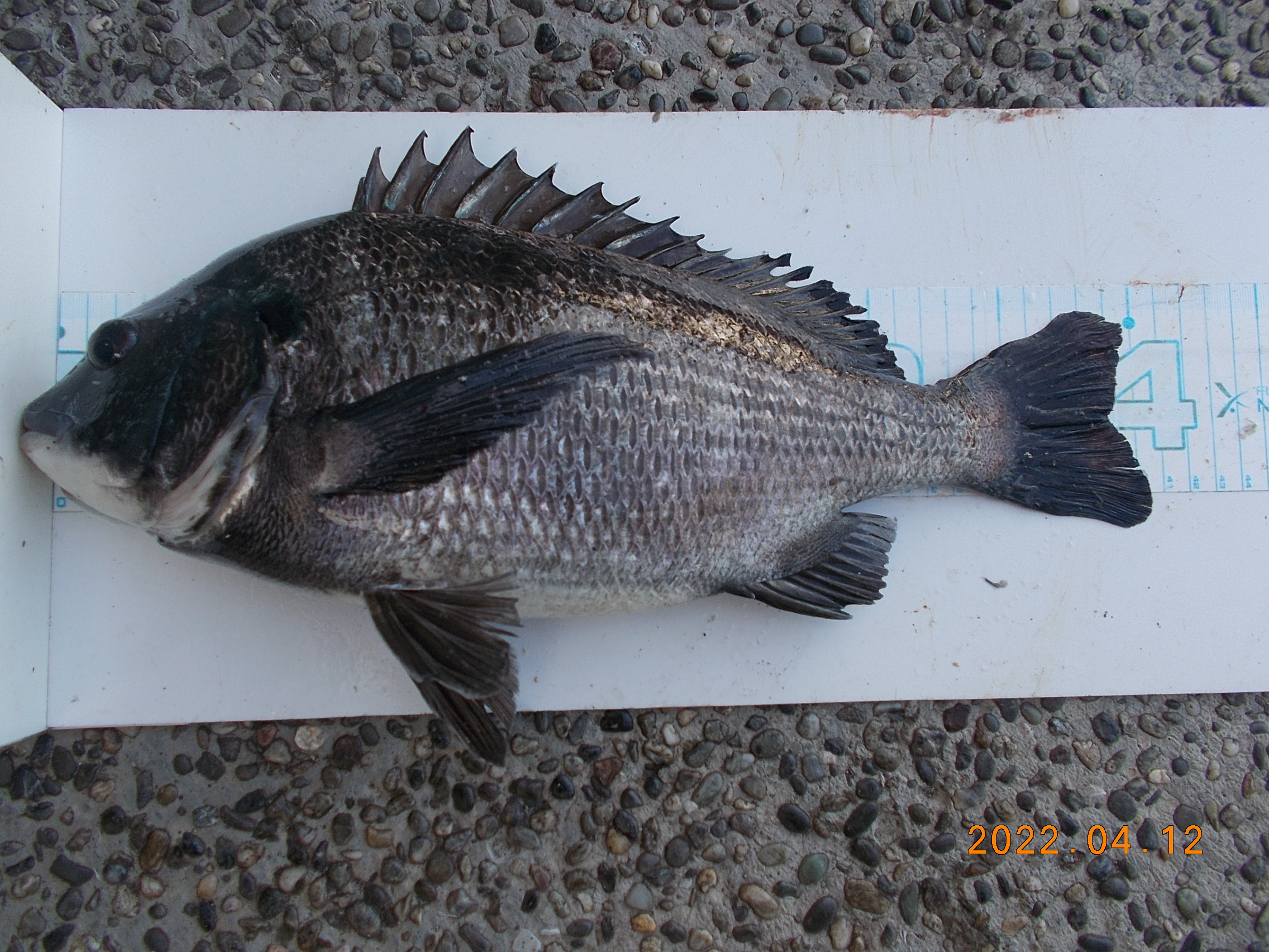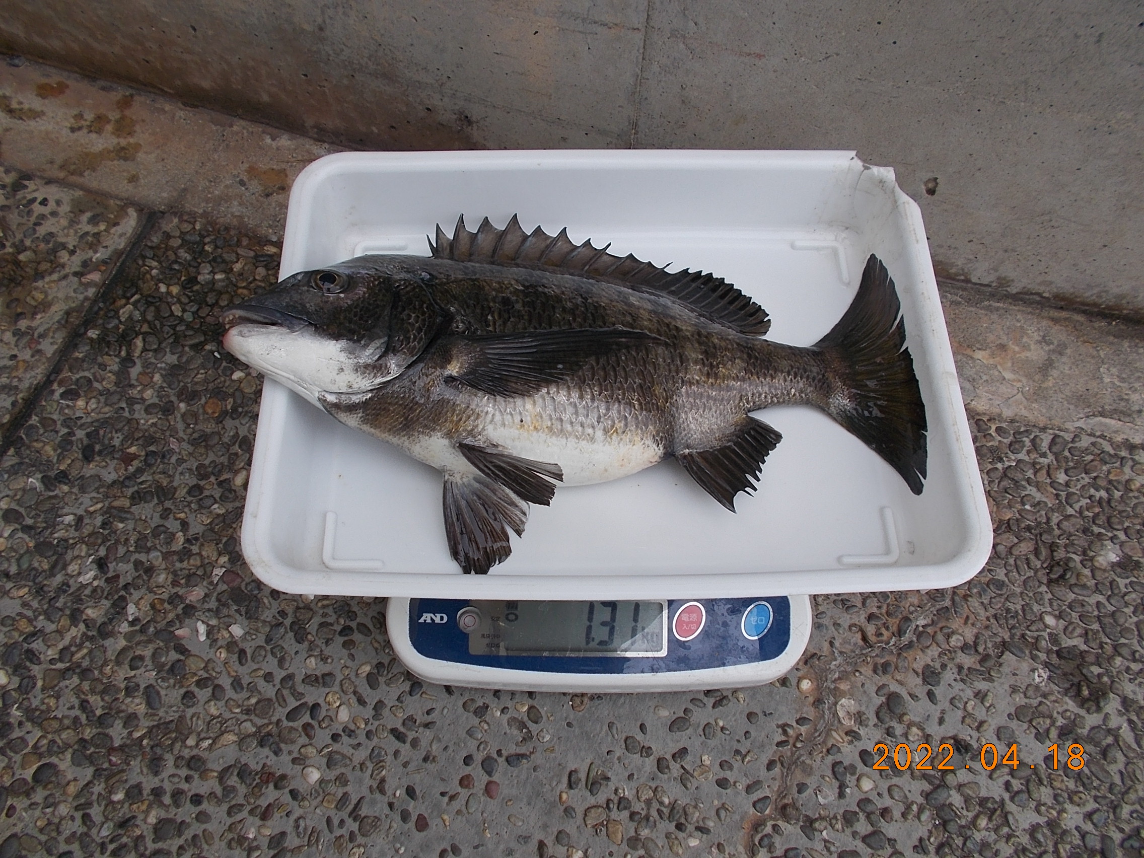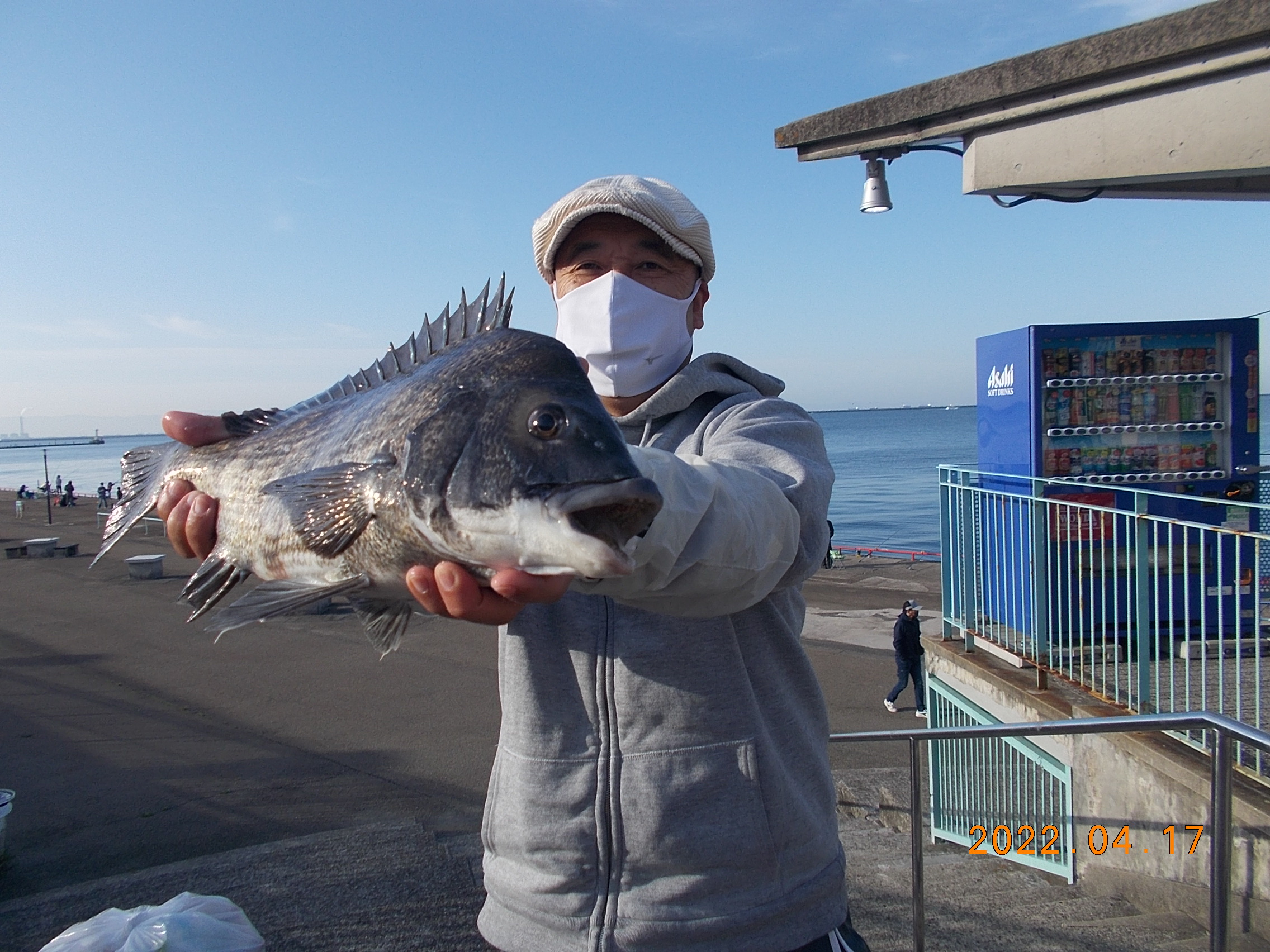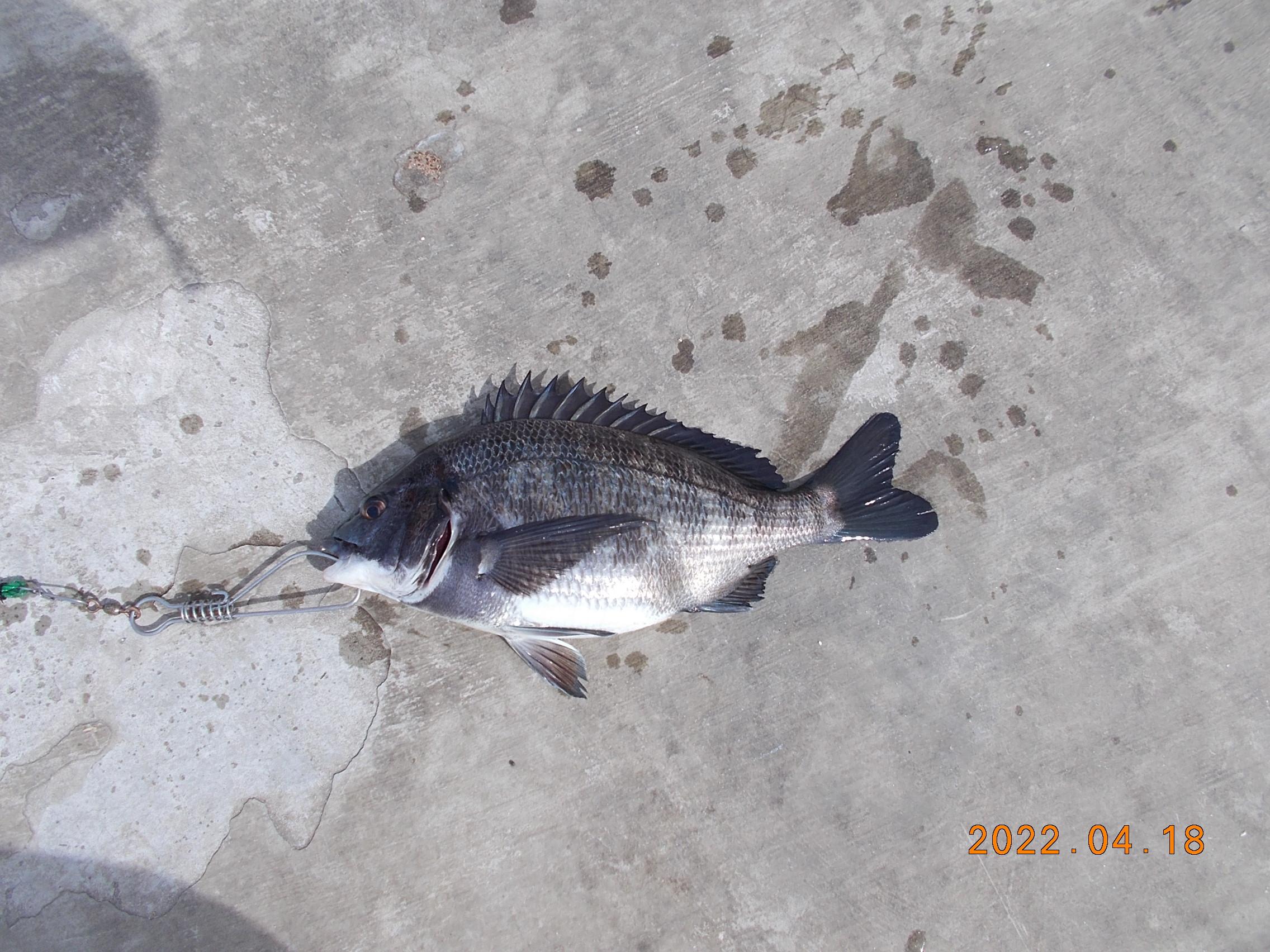 15時、フカセ釣りの方が今日三匹目のチヌを釣り上げられました。41㎝で餌はオキアミでした。