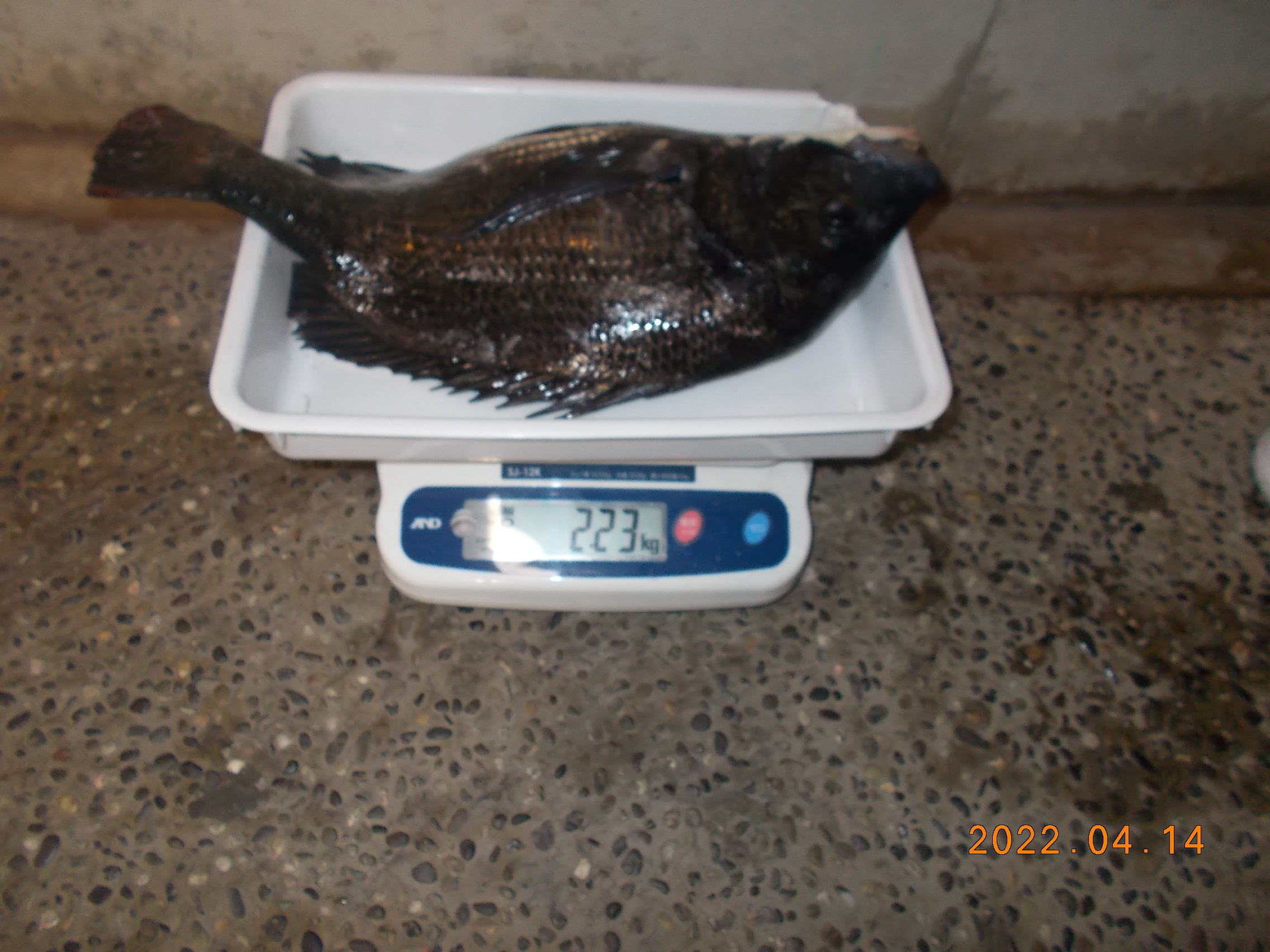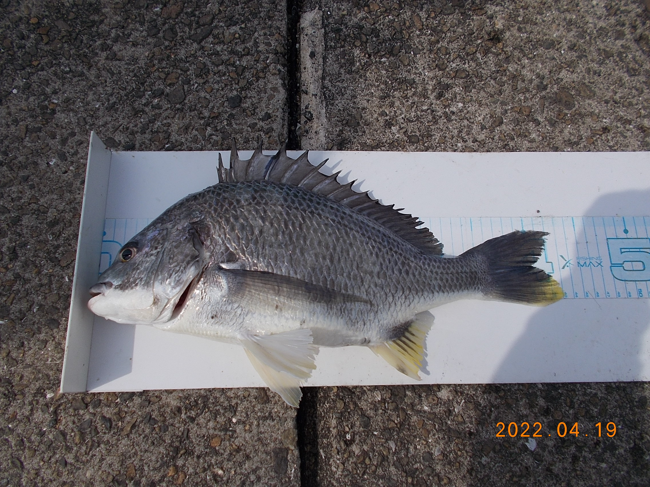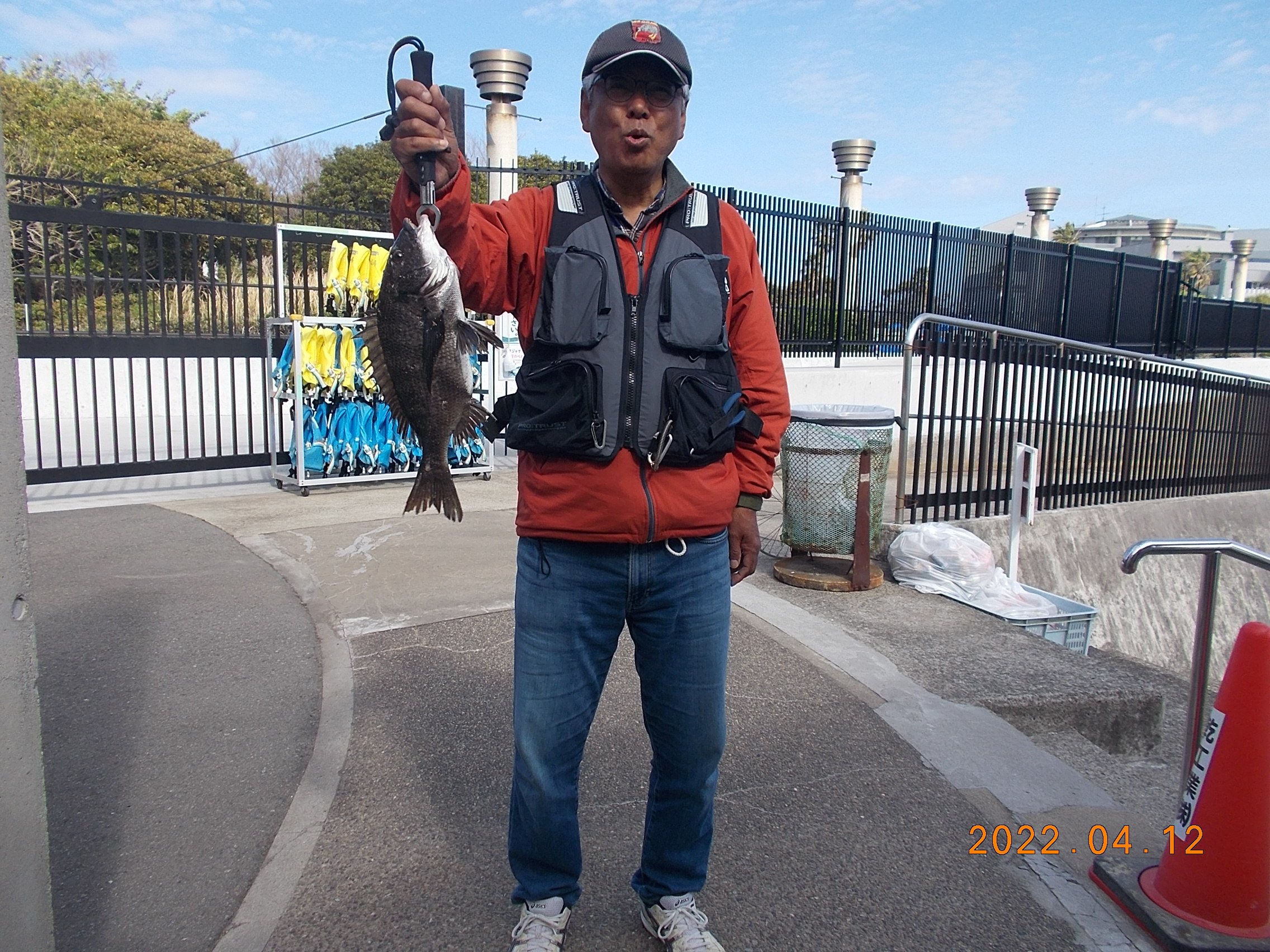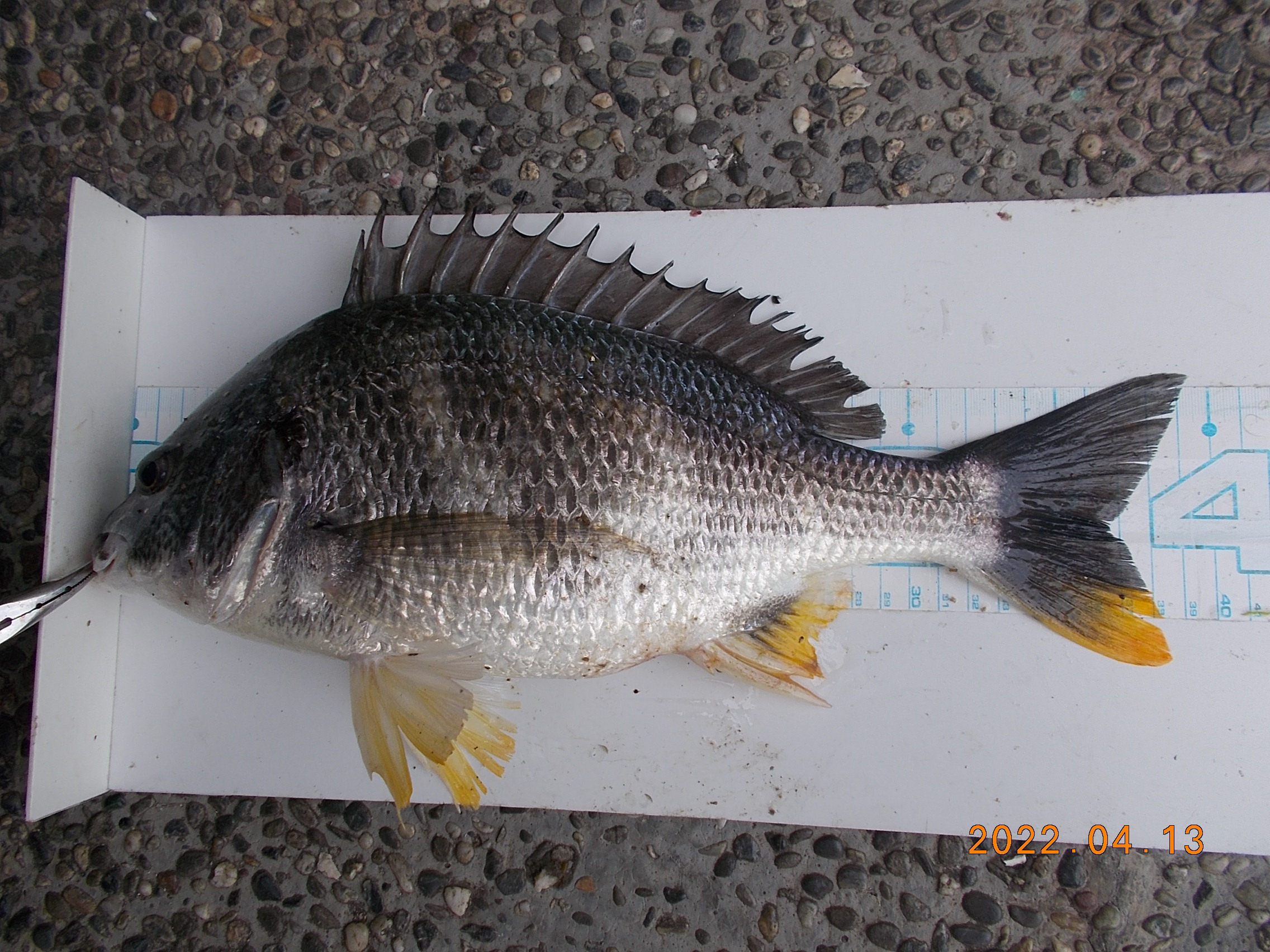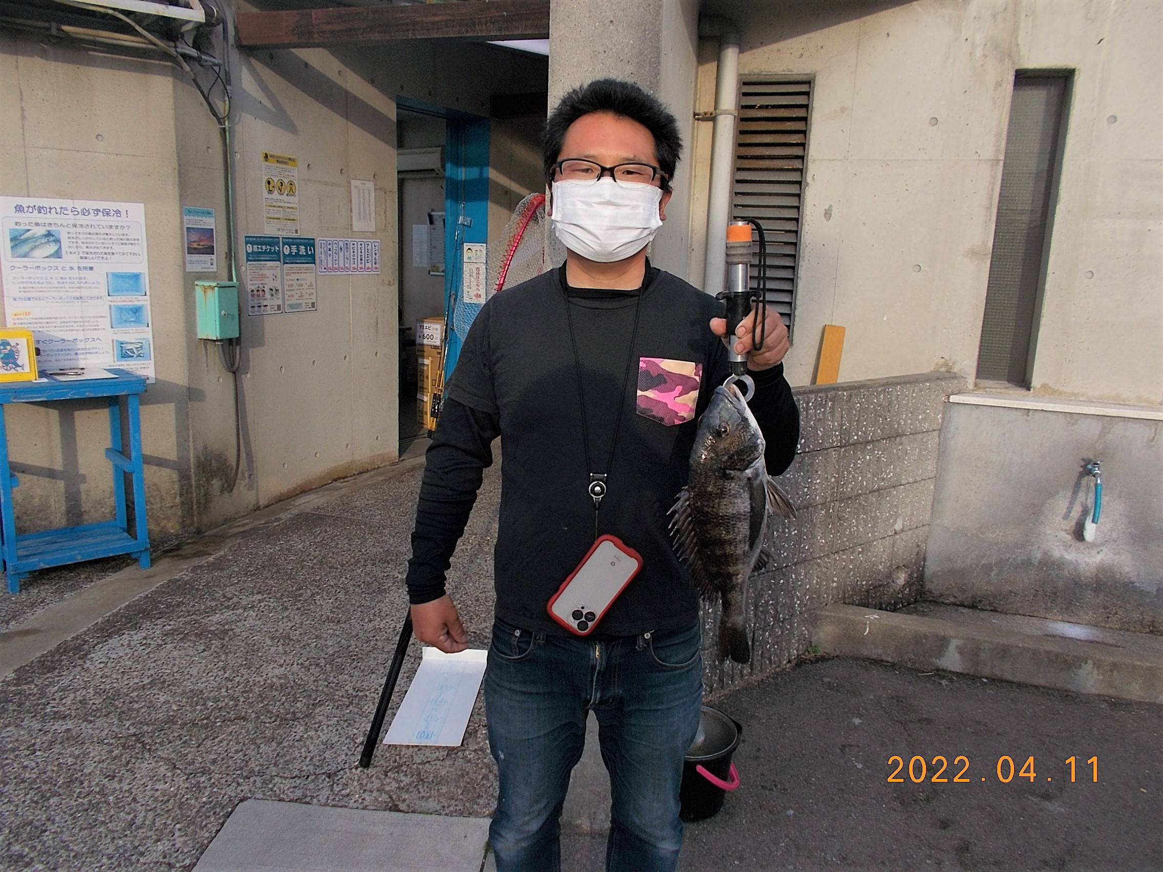 15時、フカセ釣りの方が今日三匹目のチヌを釣り上げられました。41㎝で餌はオキアミでした。