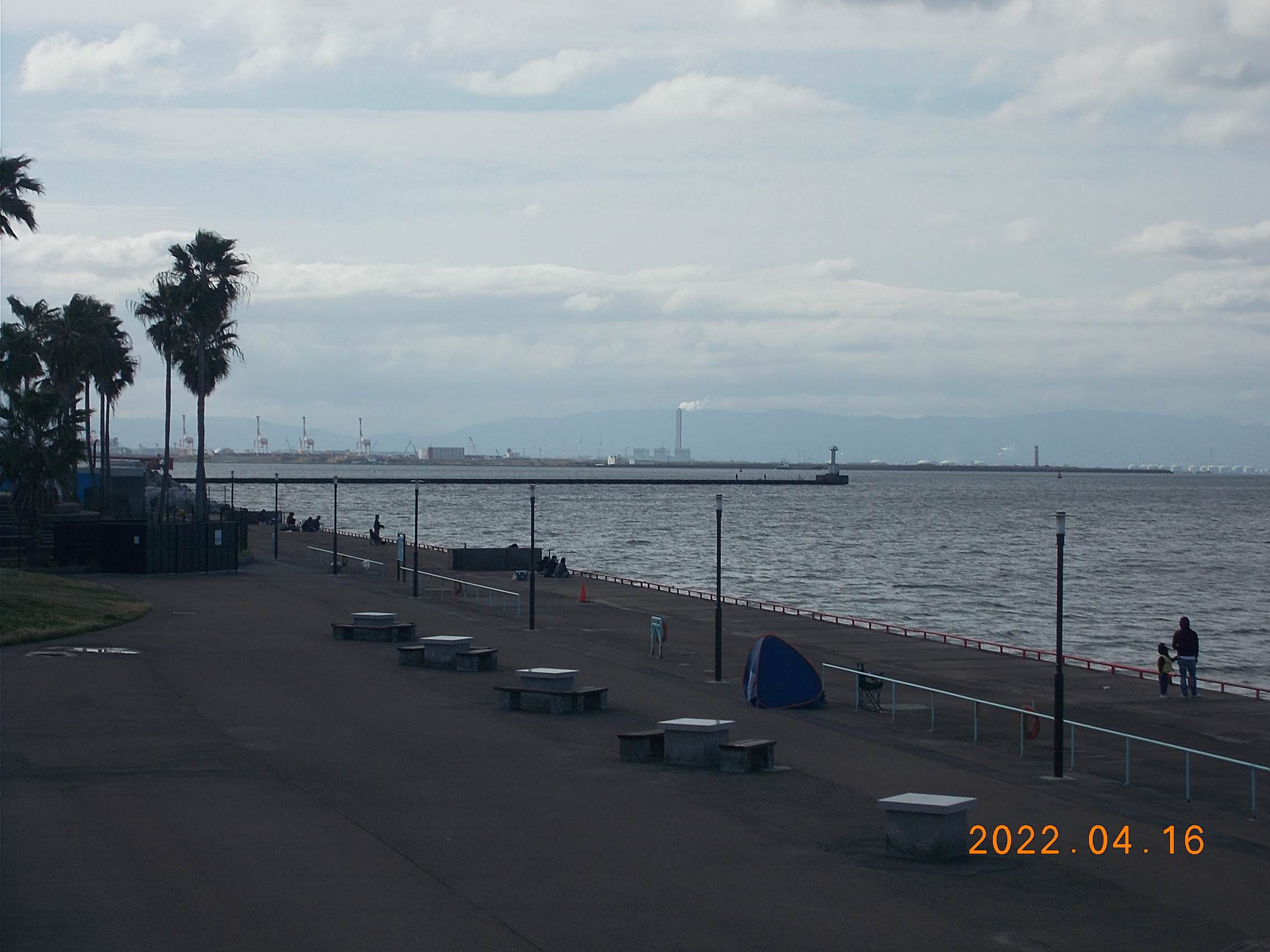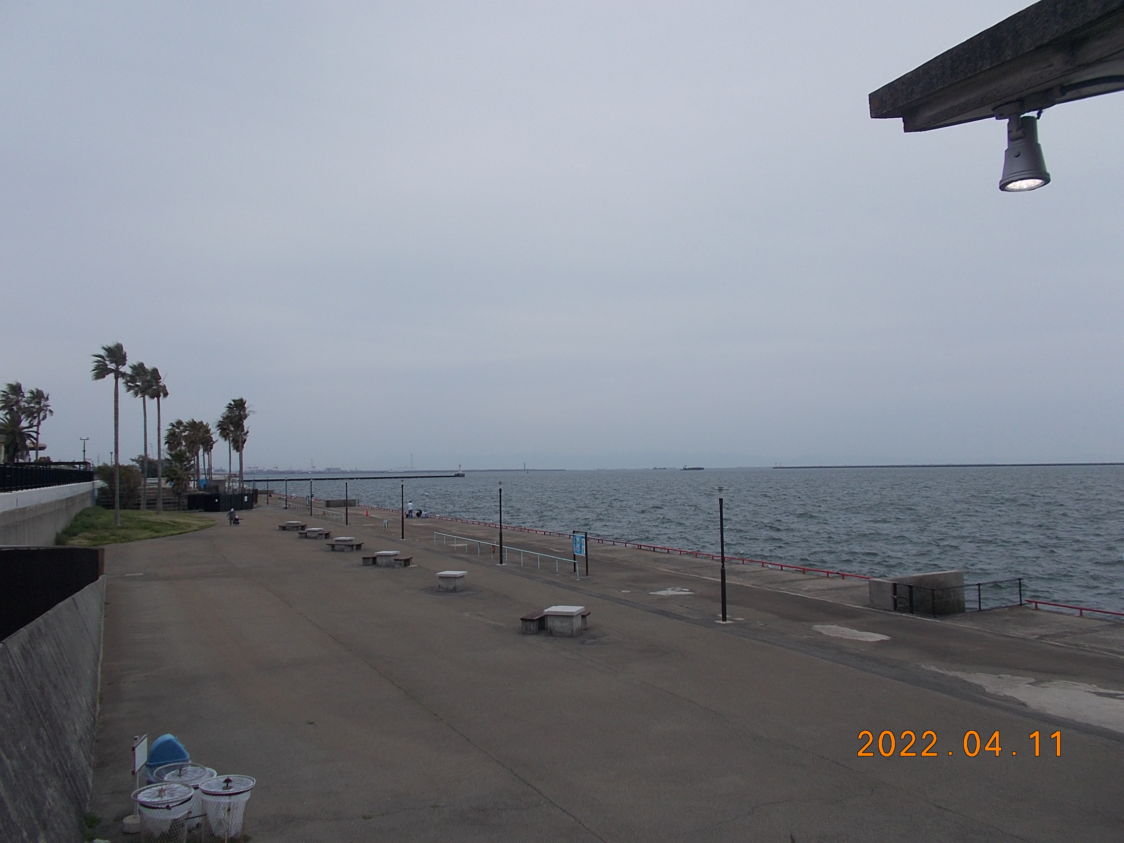 4月15日土曜日、12時15分現在、鳴尾浜臨海公園海づり広場は北西からの強い風(6~8m/s)が吹いています。※突風有。