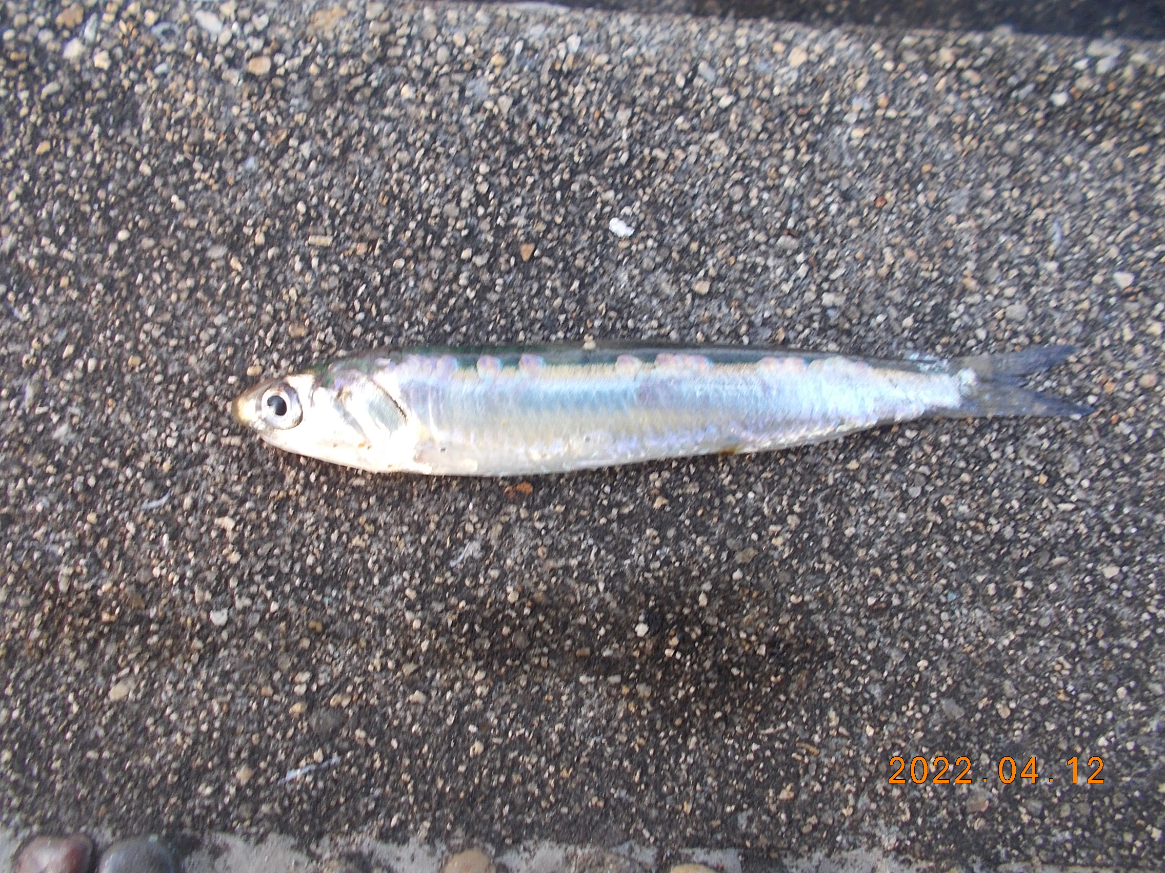 夕方近くカタクチイワシが少し回ってきた模様。10匹ほど釣れました。