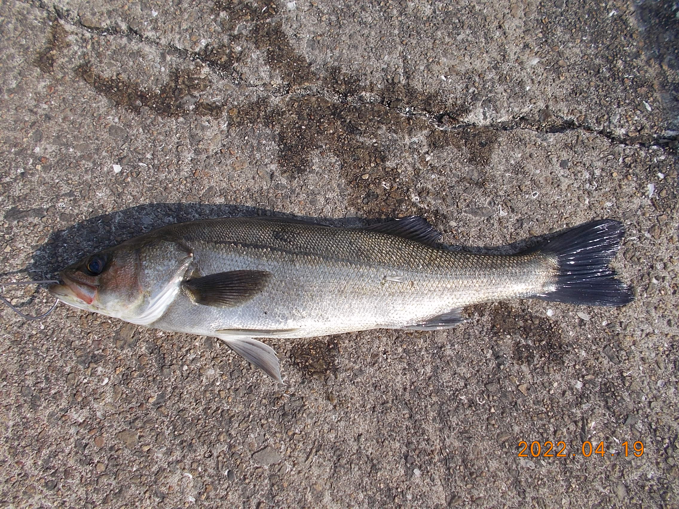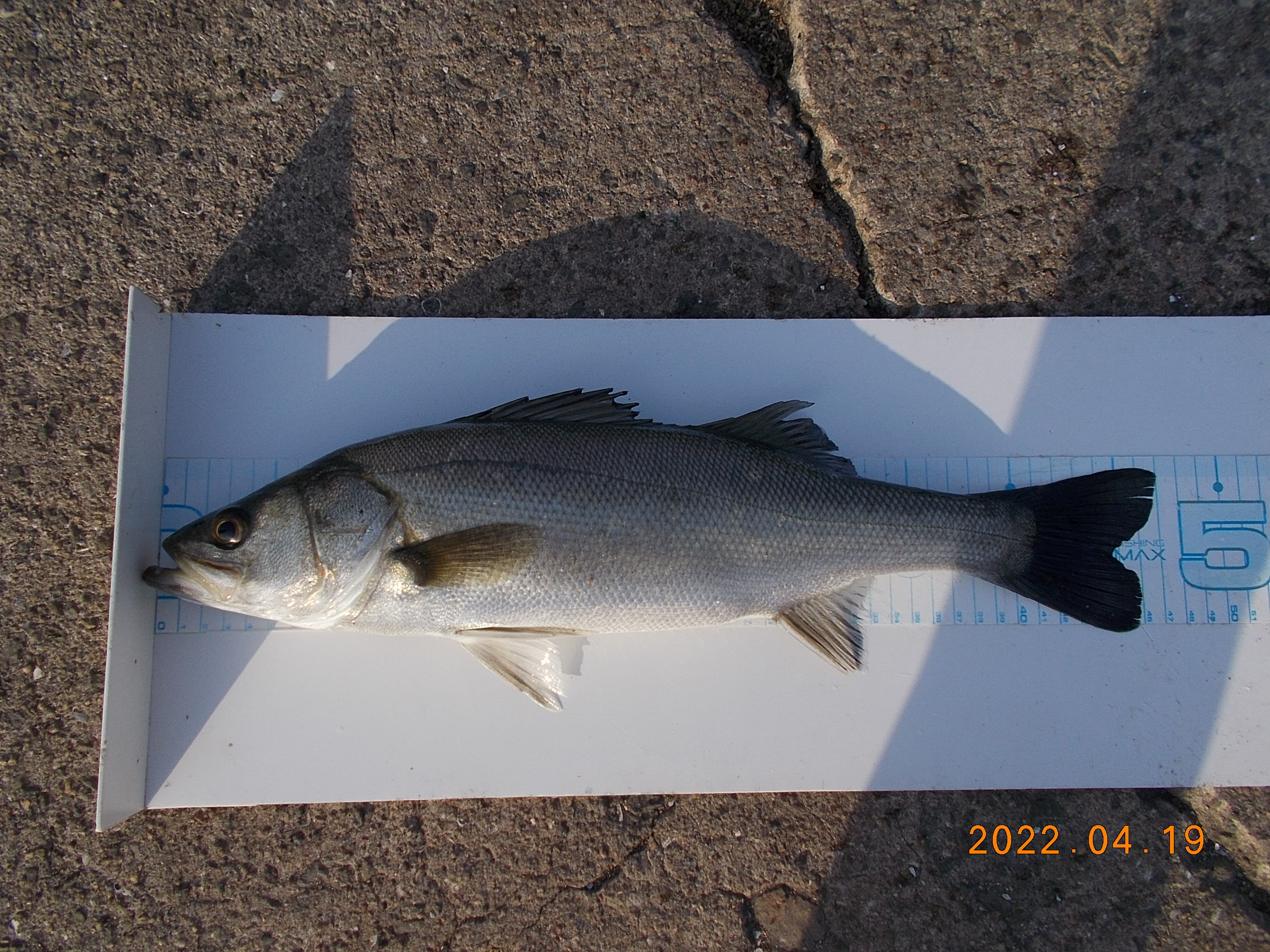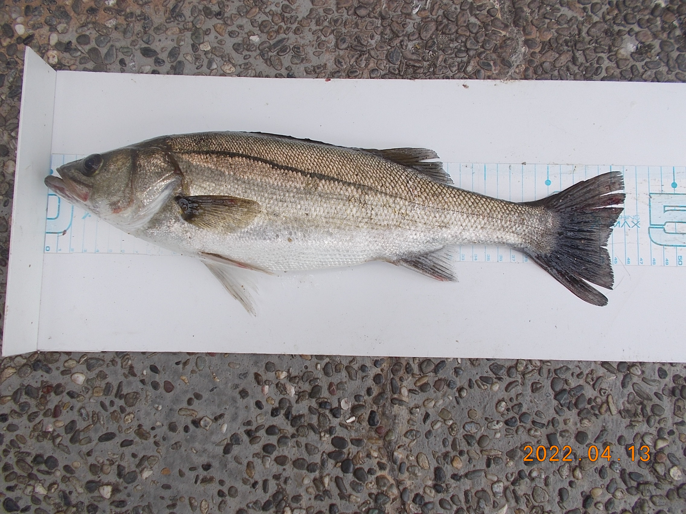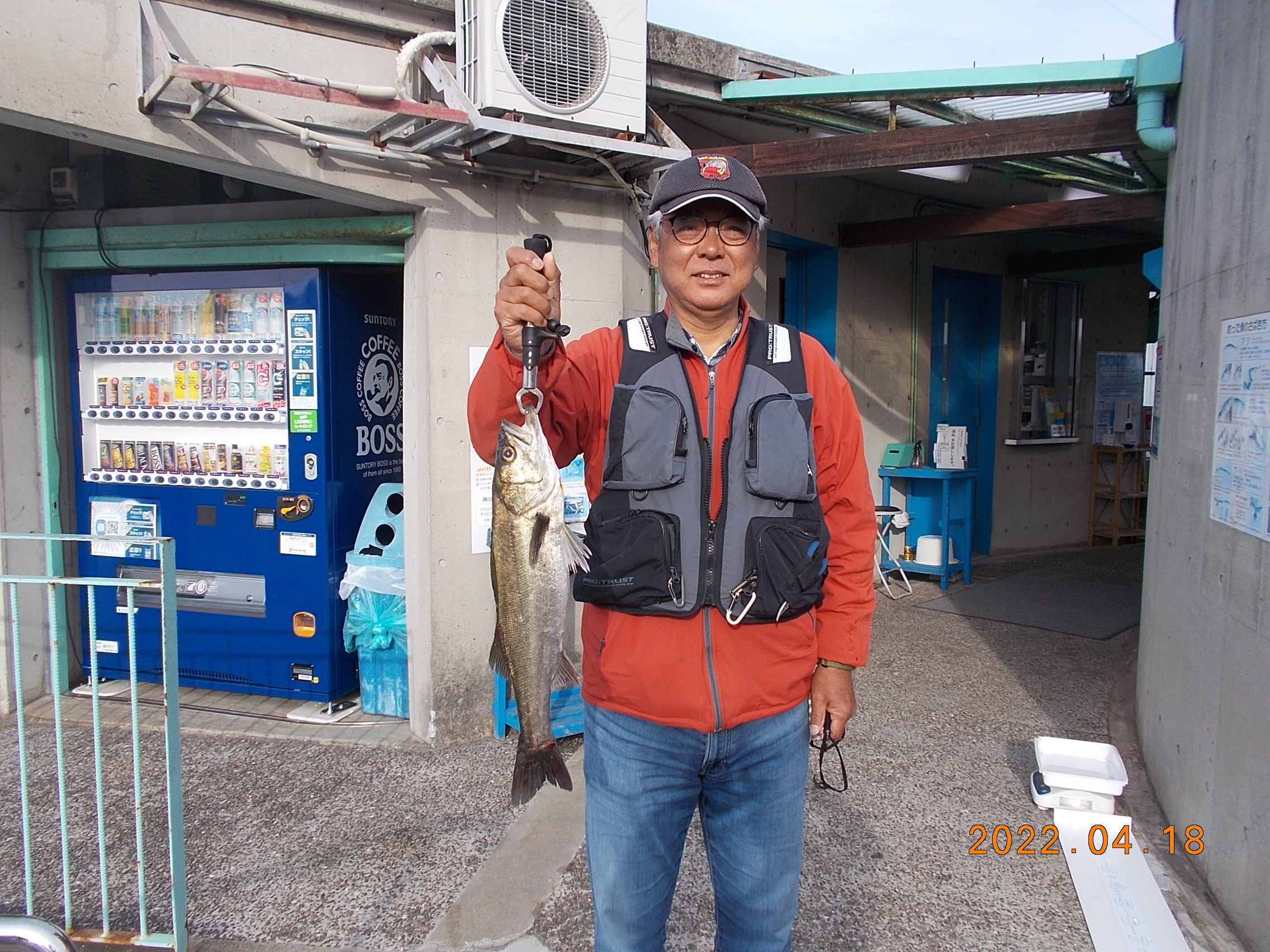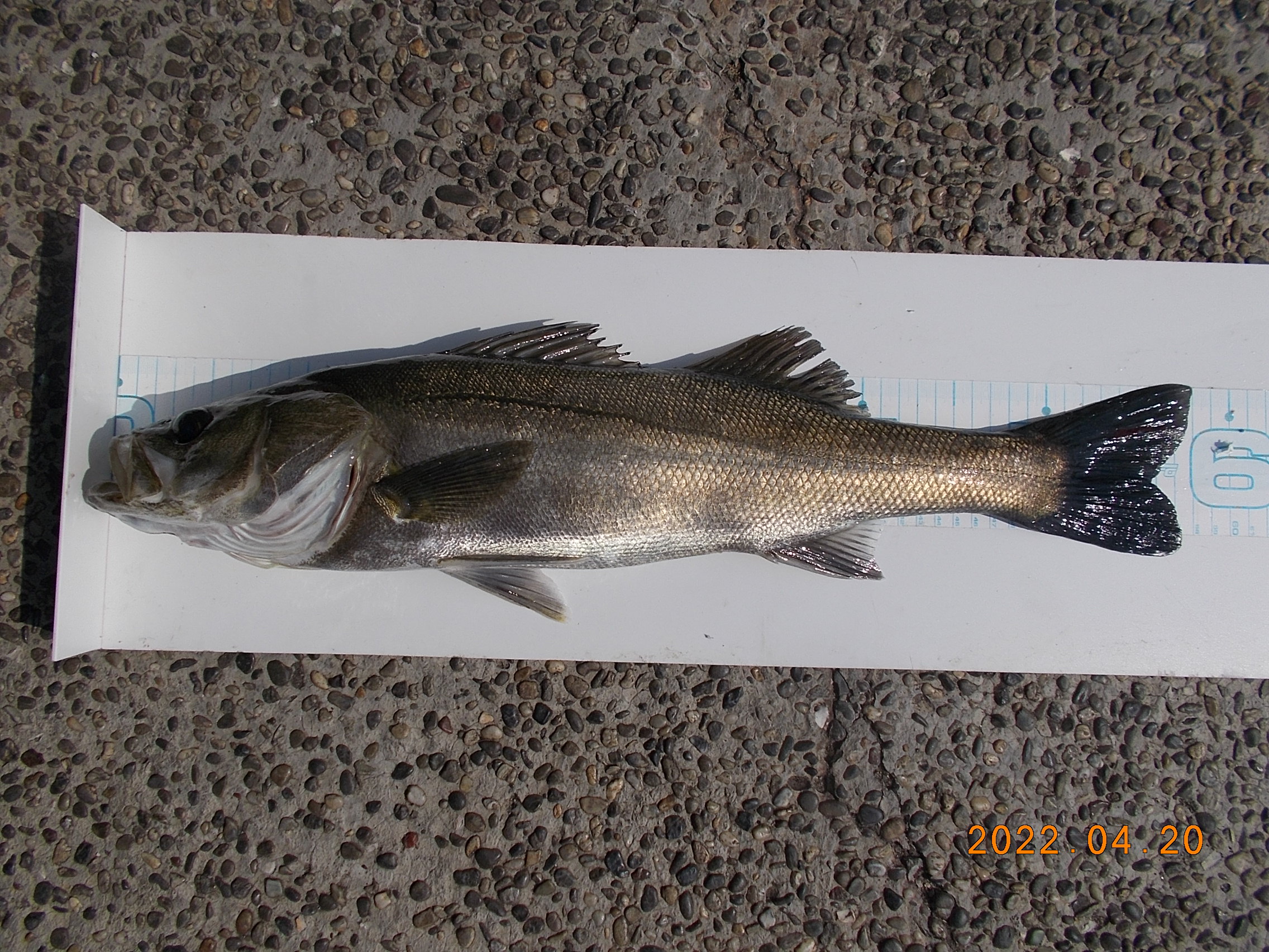 14時過ぎ、常連さんの方がスズキを釣り上げられました。月間大物賞更新されました。
