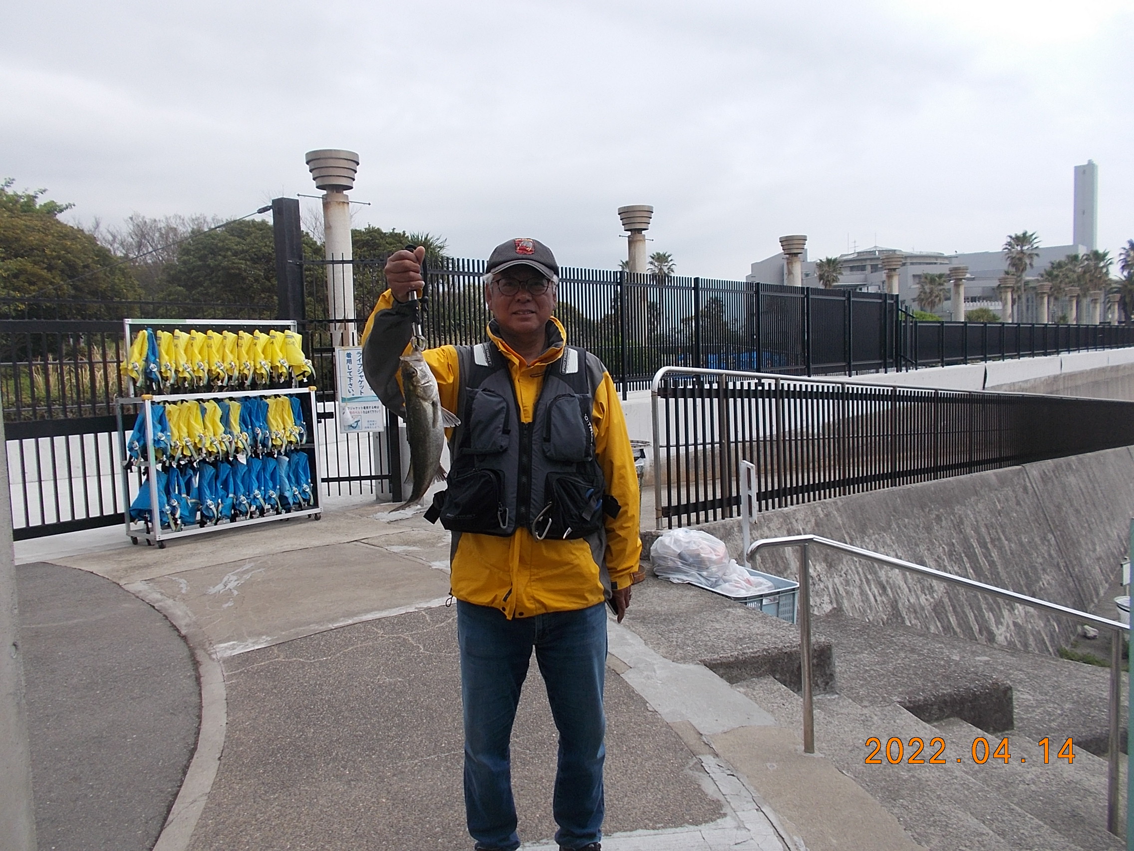 午後からも来園者は2人しかいません、冬に逆戻りしたみたいな鳴尾浜です。水温も下がりそのせいか釣果もありません、午前中のキビレ1匹のみとなりいました。 -