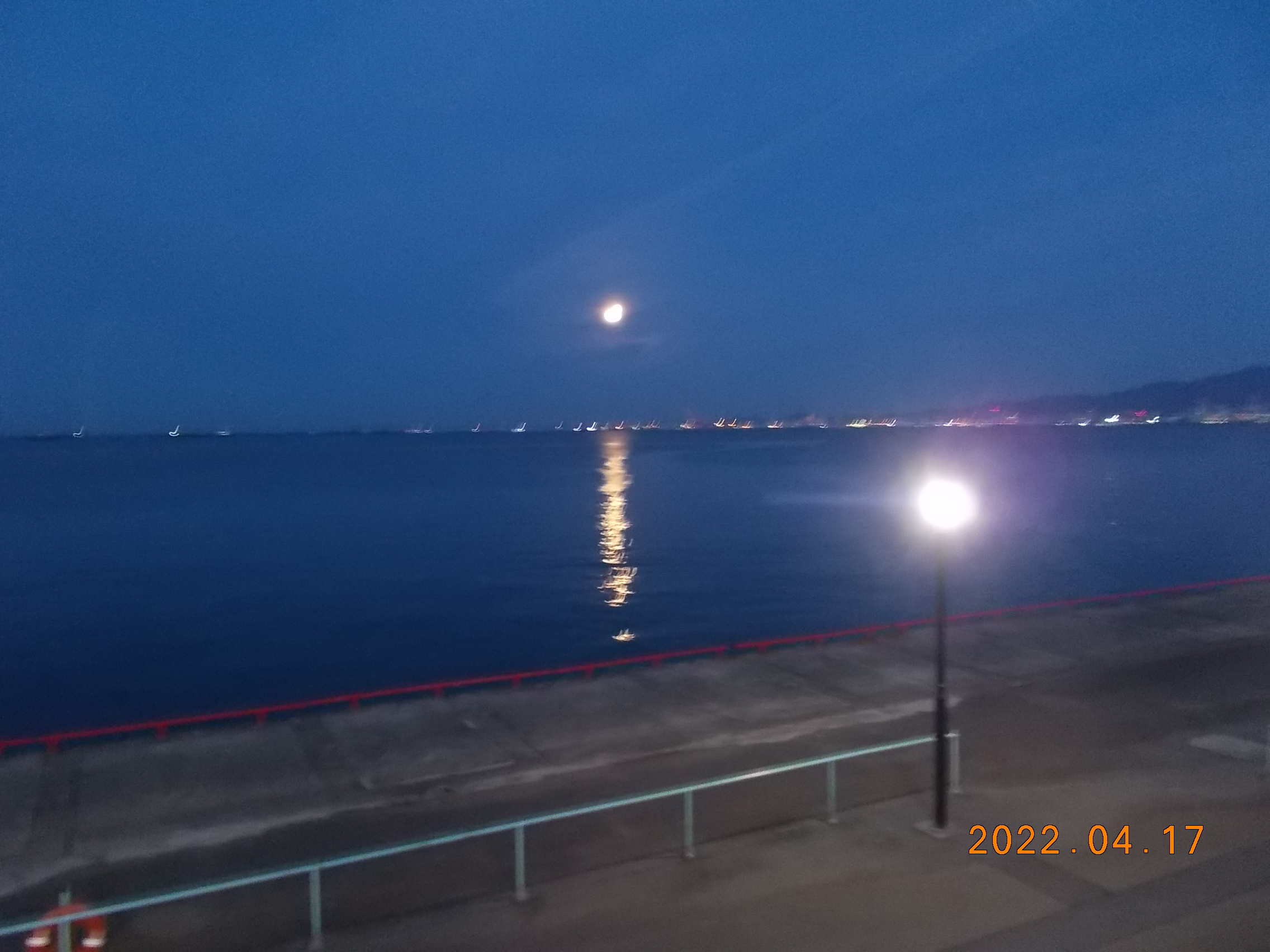 18時、3人のお客様が頑張っておられます。主にチヌ狙いのフカセ釣りをされています。鳴尾浜は今気温18℃風北西3ⅿ/sとなっています。