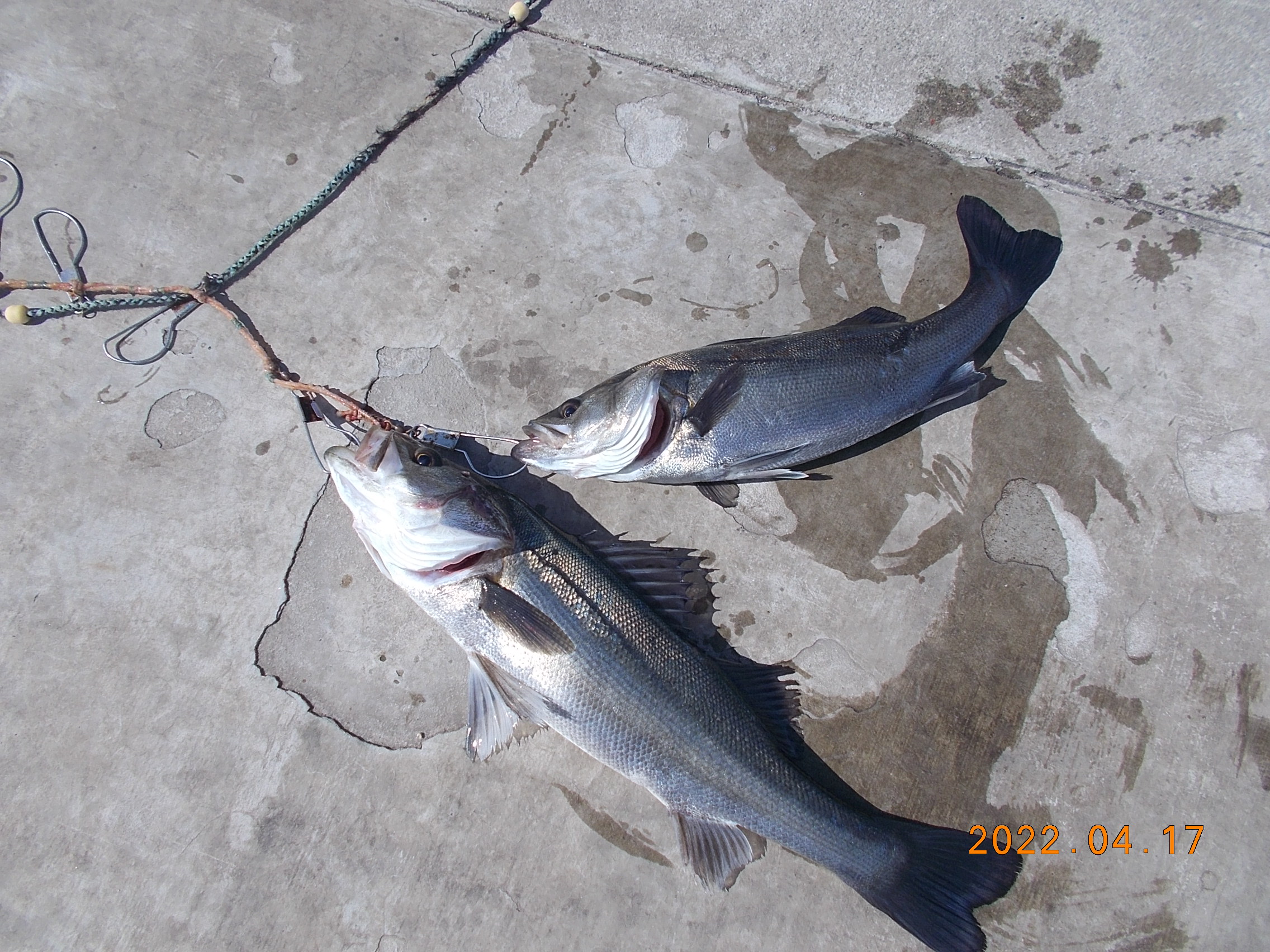シラサのウキ釣りの方はチヌ42cm、ハネ49㎝の釣果。朝はアタリがありませんでしたが11時からアタリが出だし、2匹の釣果に繋がりました。棚は2ヒロ半。。