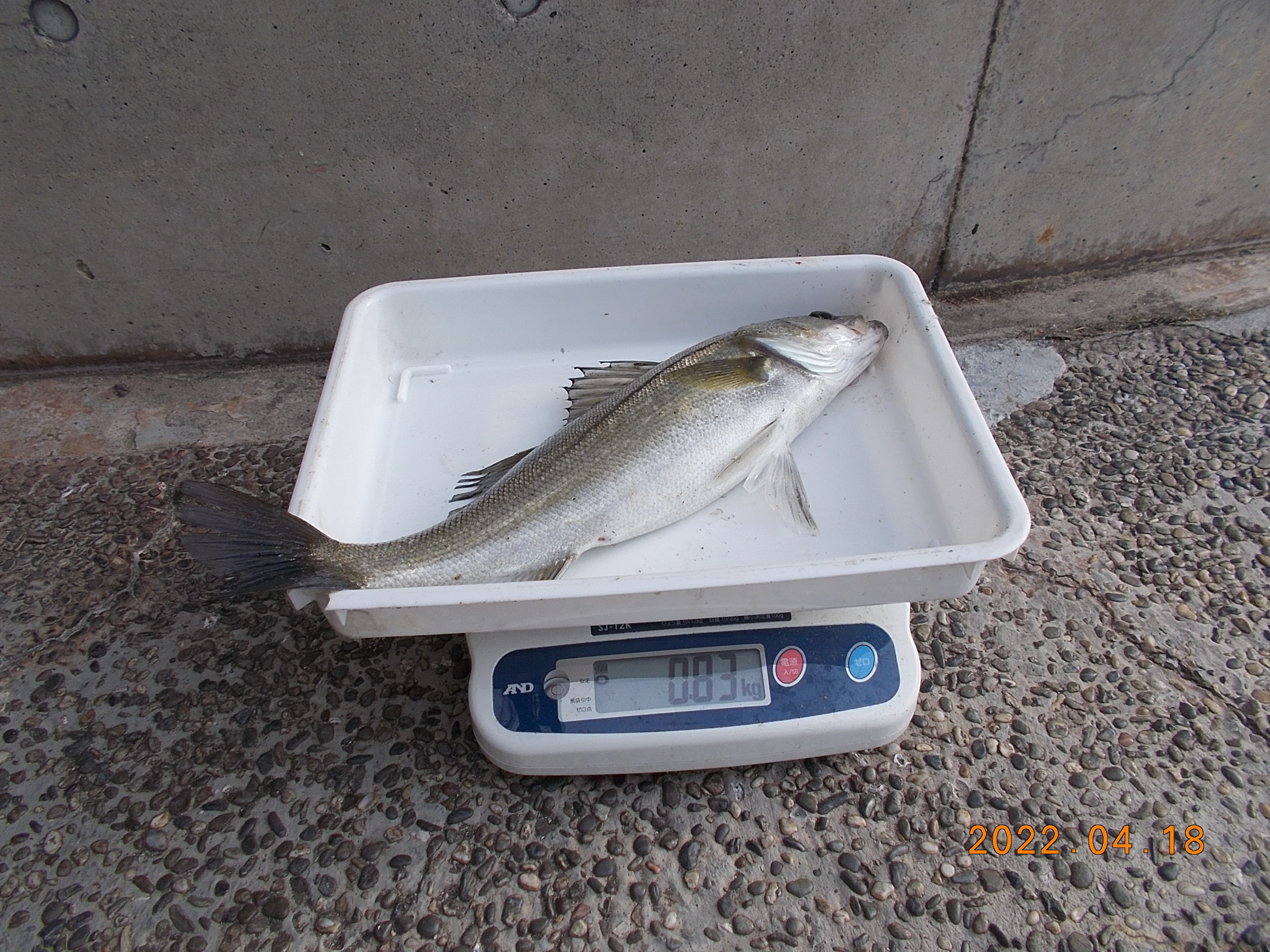 16時頃、今日はハネやチヌがよく釣れています。先程は、スズキが釣れ、今度は、ハネがつれました。皆様もご存じだと思いますがスズキは出世魚で40㎝までがセイゴ60㎝までがハネそれ以上になるとスズキに名前が変わります。名前が変わっても同じ料理で食べても良く、塩焼き特にレモンをかけて食べるのがお勧めです。